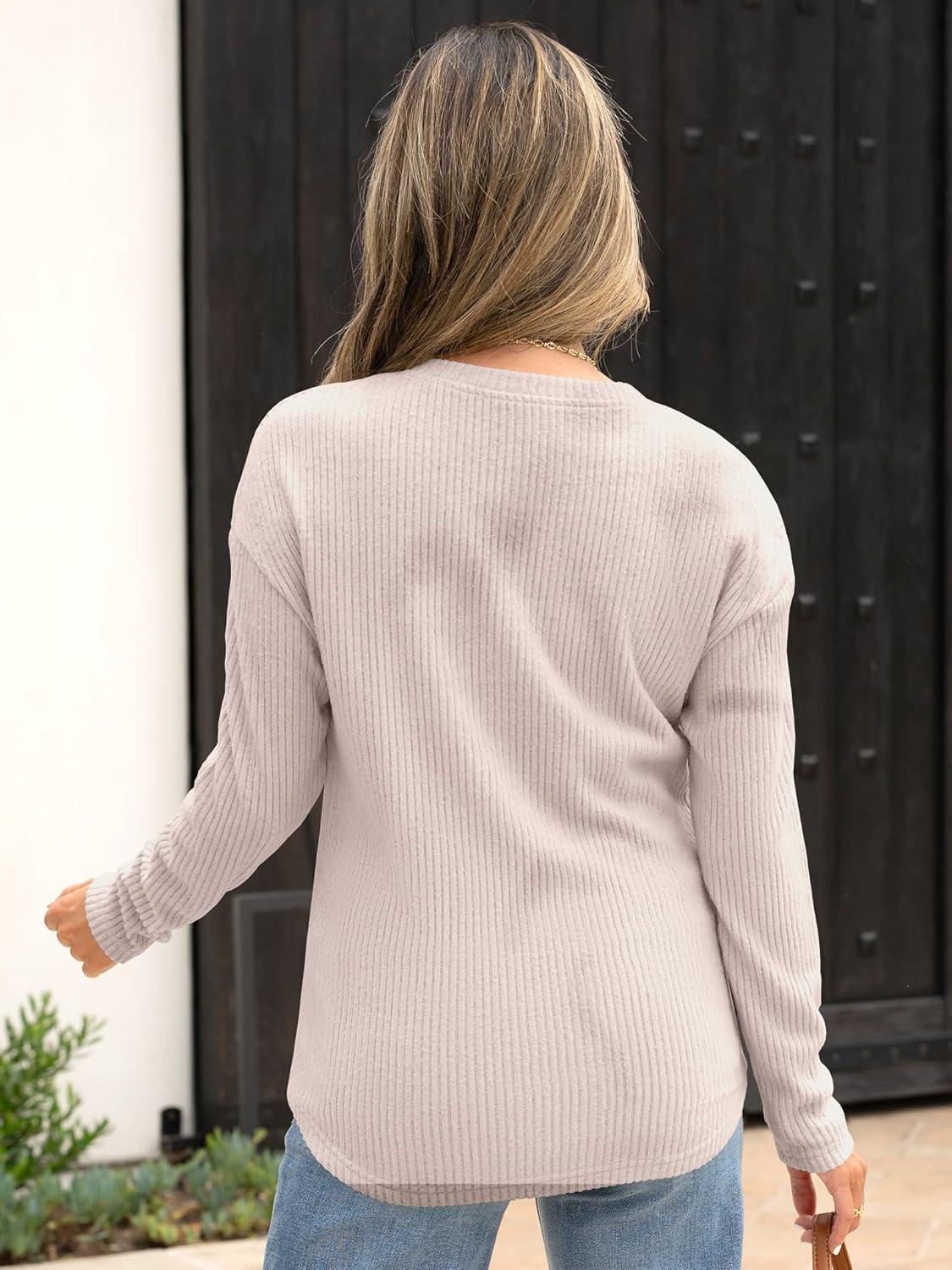 ANRABESS Long Sleeve Shirts for Women Henley Tops Dressy Casual T-Shirts Blouses 2025 Fall Lightweight Sweaters(Begie)