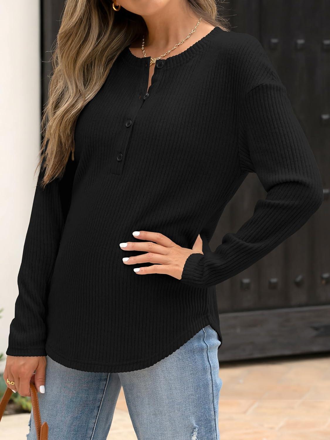 ANRABESS Long Sleeve Shirts for Women Henley Tops Dressy Casual T-Shirts Blouses 2025 Fall Lightweight Sweaters(Black)