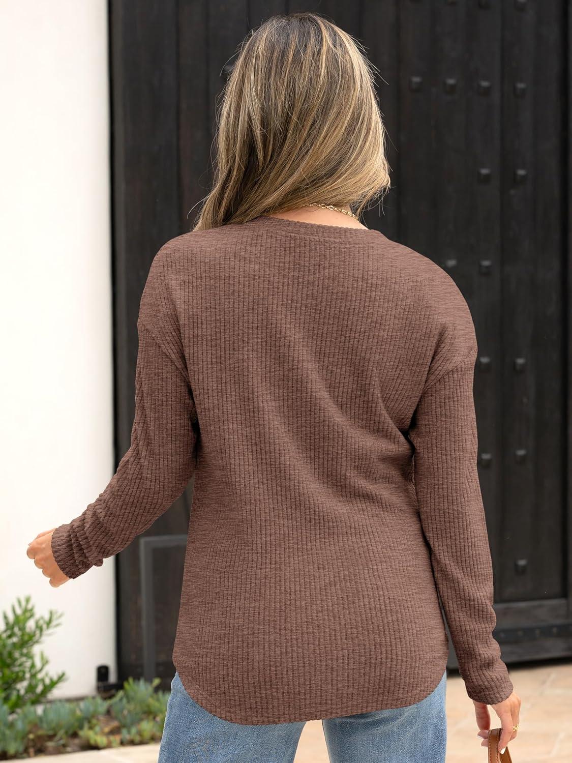 ANRABESS Long Sleeve Shirts for Women Henley Tops Dressy Casual T-Shirts Blouses 2025 Fall Lightweight Sweaters(Coffee)