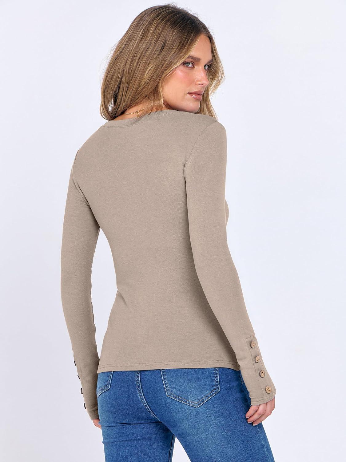 imageANRABESS Long Sleeve Shirts for Women Thermal Crewneck Basic Fleece Top Casual TShirts 2025 Fall Winter Warm UndershirtsTan