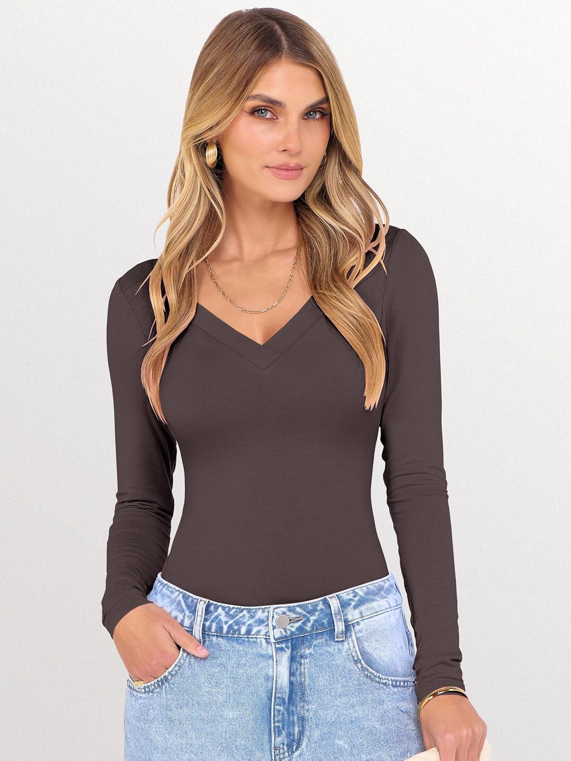 imageANRABESS Long Sleeve Shirts for Women V Neck Basic Tees Top Casual Going Out Tshirt Workout Outfits 2025 Fall Fashion ClothesDark Brown