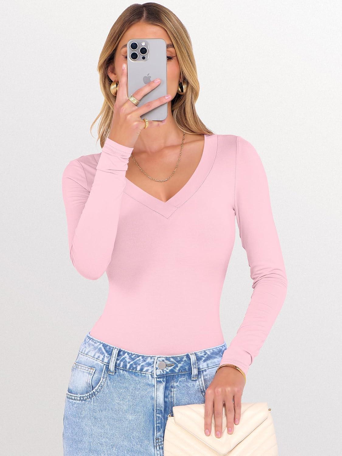 imageANRABESS Long Sleeve Shirts for Women V Neck Basic Tees Top Casual Going Out Tshirt Workout Outfits 2025 Fall Fashion ClothesLight Pink