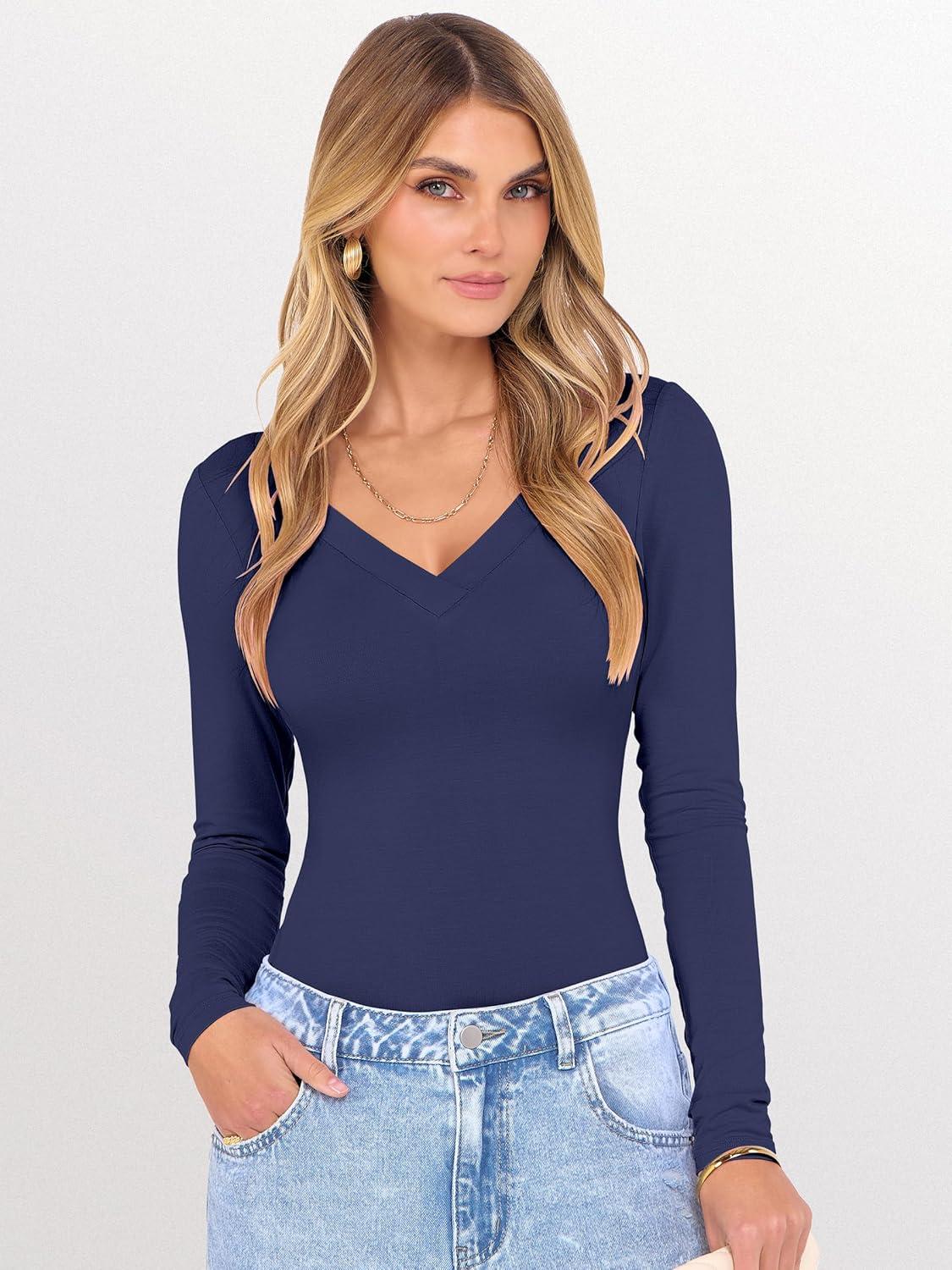 ANRABESS Long Sleeve Shirts for Women V Neck Basic Tees Top Casual Going Out Tshirt Workout Outfits 2025 Fall Fashion Clothes(Navy Blue)