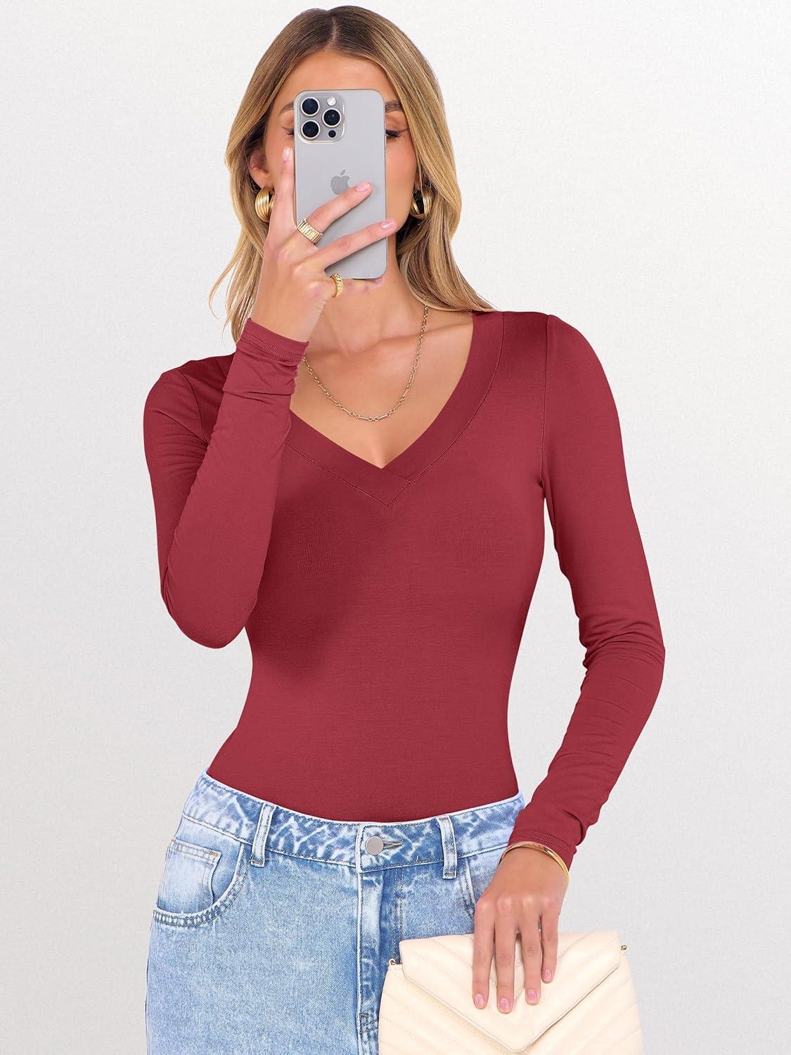 imageANRABESS Long Sleeve Shirts for Women V Neck Basic Tees Top Casual Going Out Tshirt Workout Outfits 2025 Fall Fashion ClothesRed