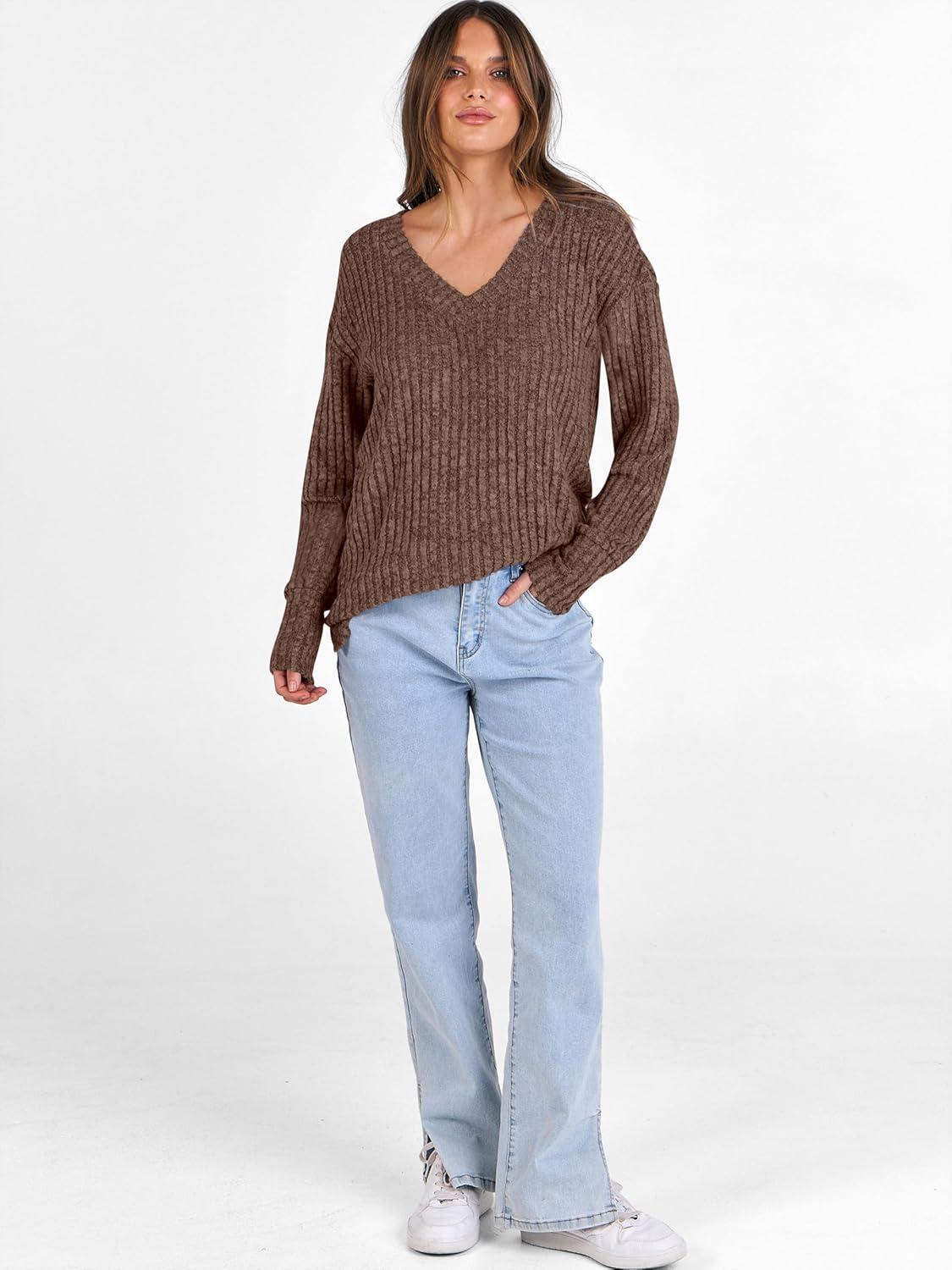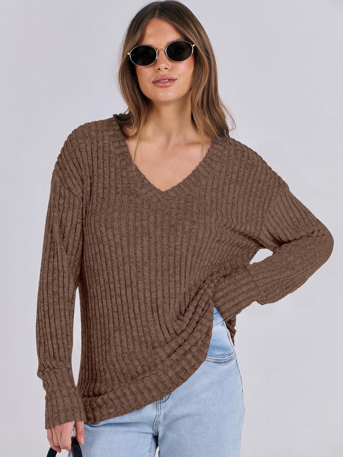 imageANRABESS Long Sleeve Shirts for Women V Neck Casual Fall Tops Loose Fit Lightweight Sweaters Tunic Fashion 2025 ClothesDark Brown
