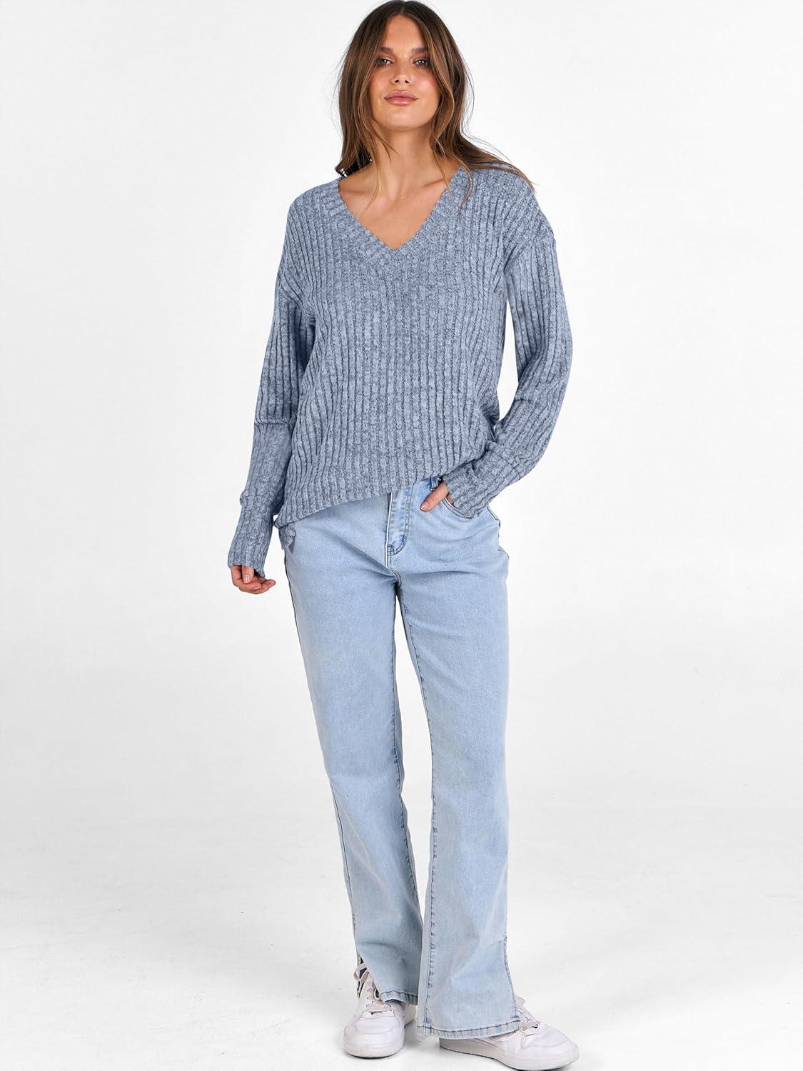 imageANRABESS Long Sleeve Shirts for Women V Neck Casual Fall Tops Loose Fit Lightweight Sweaters Tunic Fashion 2025 ClothesLake Blue