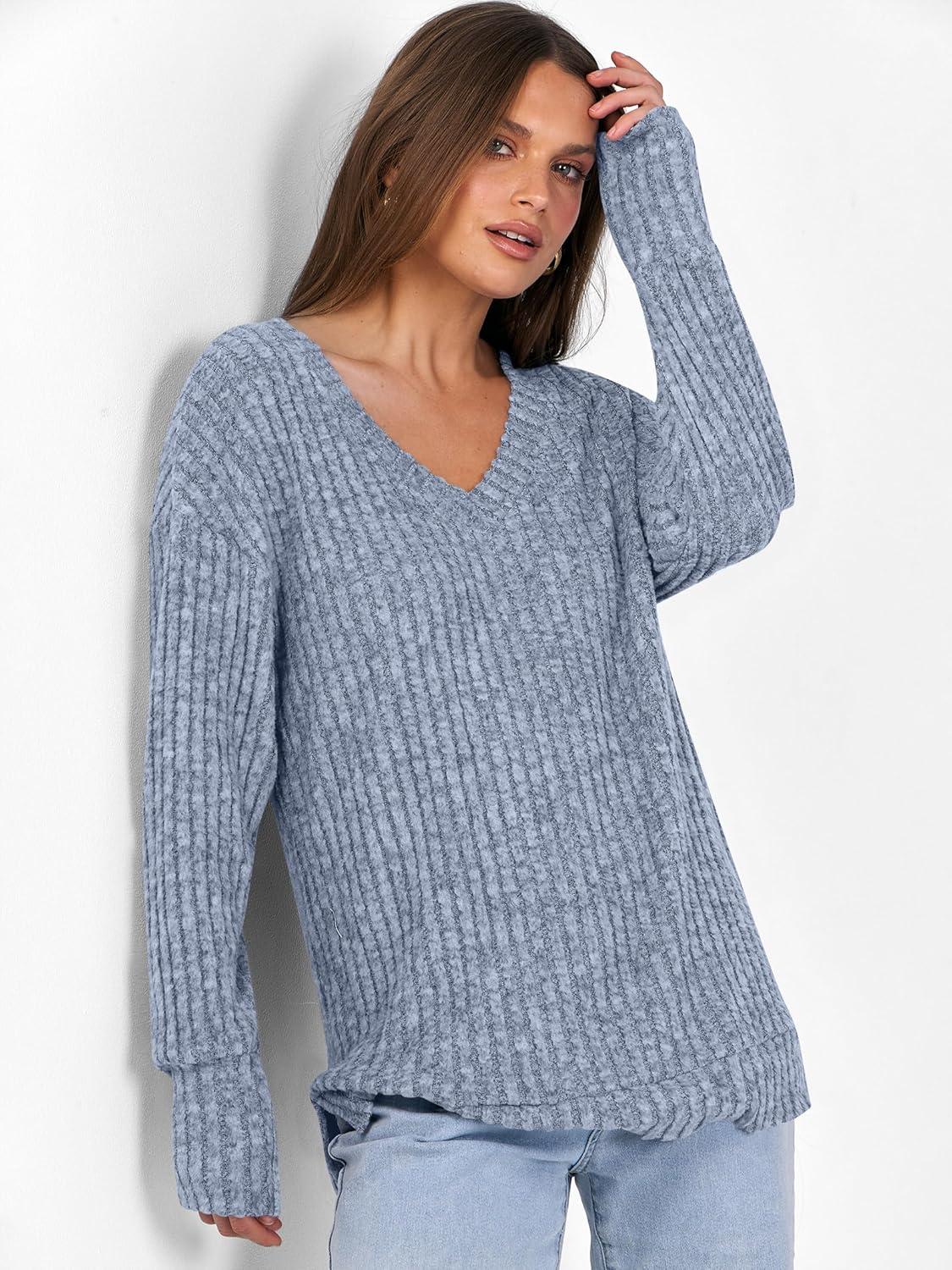 imageANRABESS Long Sleeve Shirts for Women V Neck Casual Fall Tops Loose Fit Lightweight Sweaters Tunic Fashion 2025 ClothesLight Blue