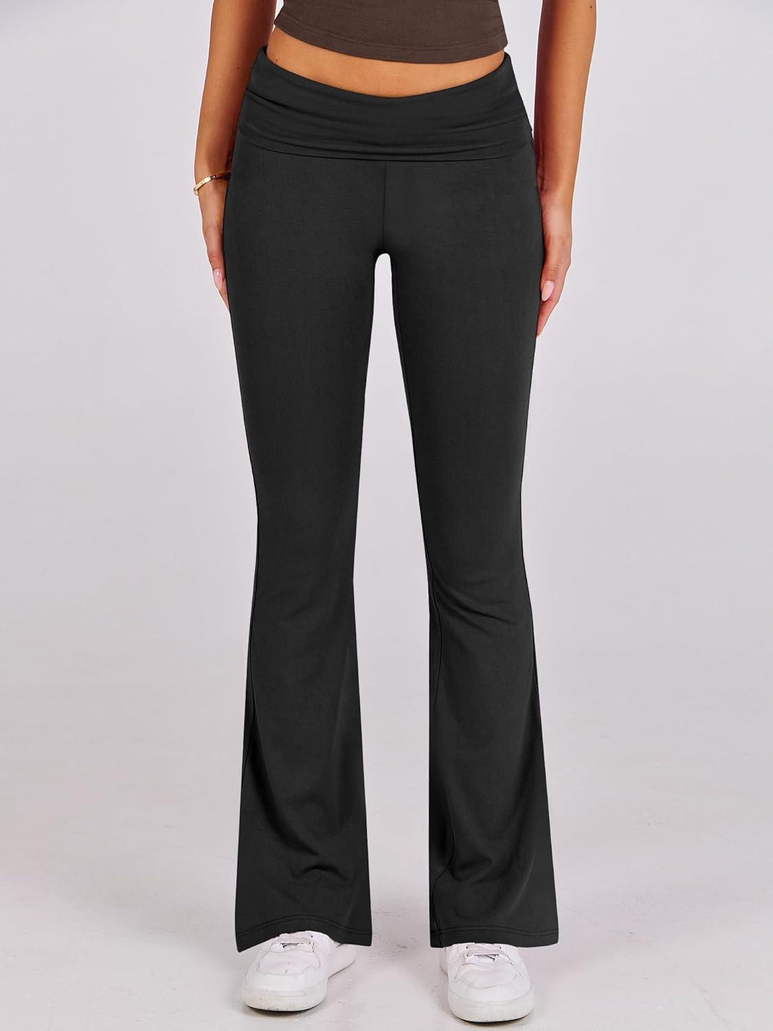 ANRABESS Lounge Sets for Women 2 Piece Foldover Yoga Flare Leggings Pants Crop Tops Casual Y2K Outfits Matching Tracksuit Set(Grey Black)