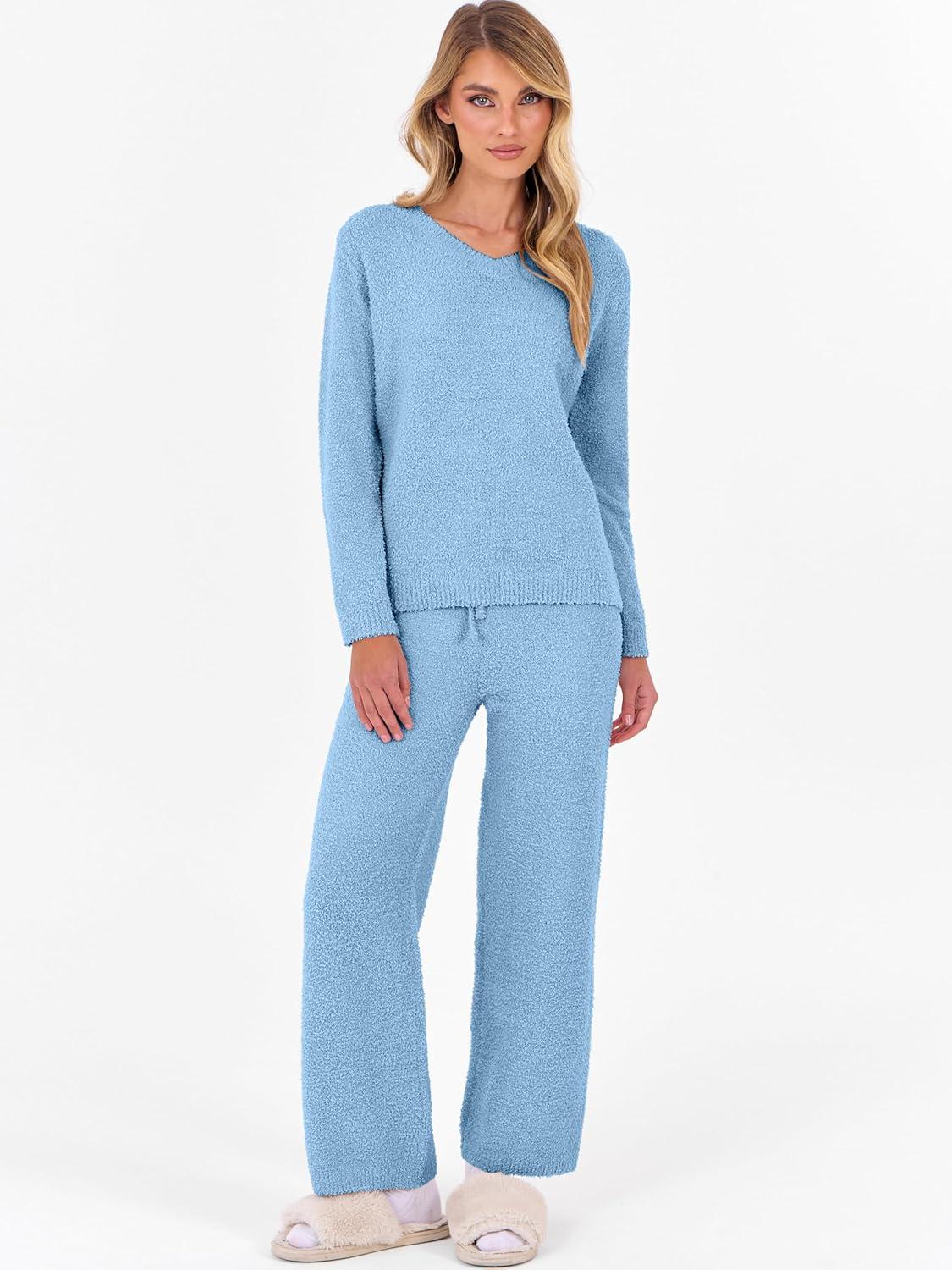 ANRABESS Lounge Sets for Women Fuzzy Fleece Pajama Sets 2 Piece Outfits Cozy Sweater Matching Set 2025 Fall Winter Loungewear(Blue)