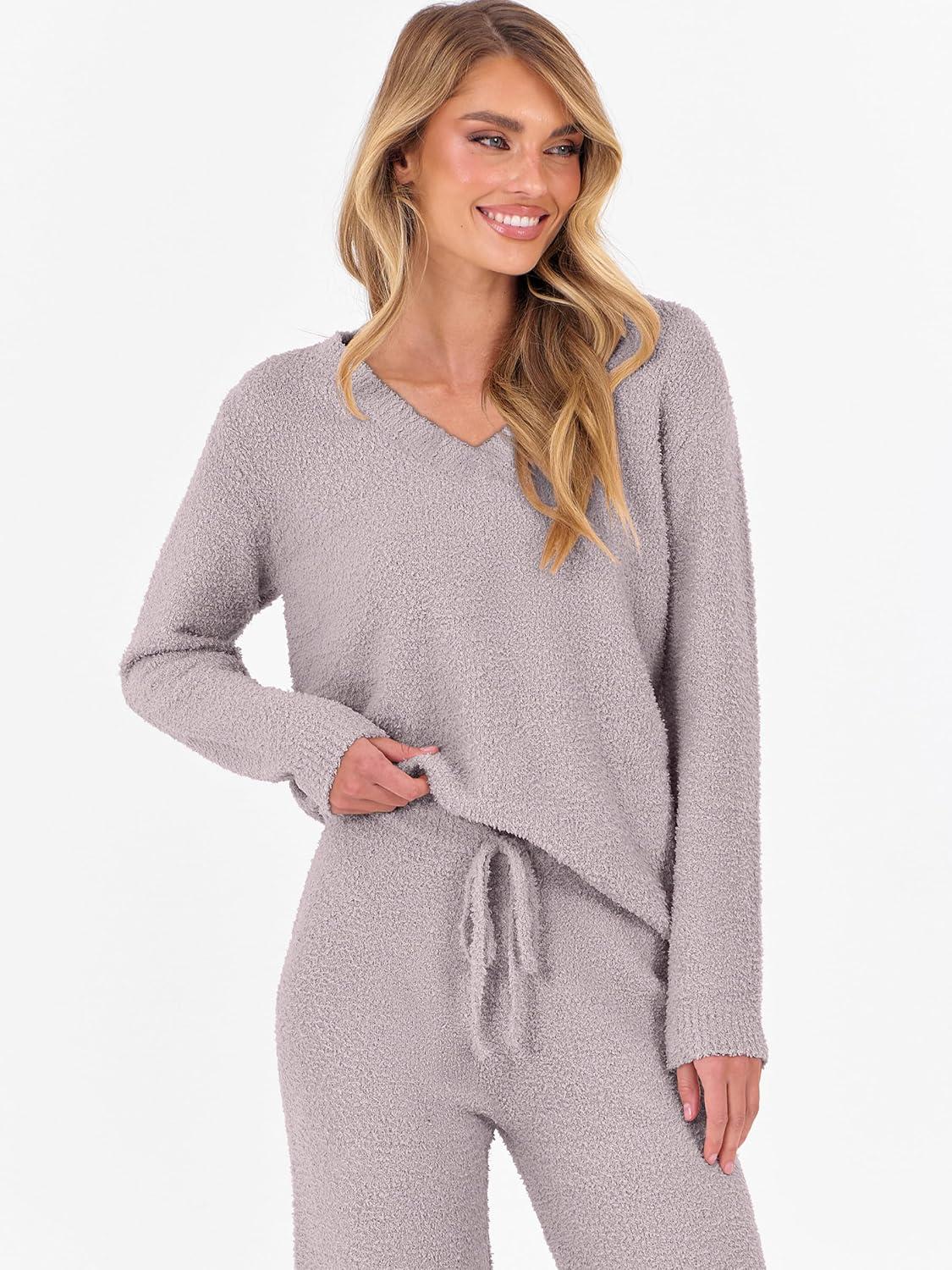 imageANRABESS Lounge Sets for Women Fuzzy Fleece Pajama Sets 2 Piece Outfits Cozy Sweater Matching Set 2025 Fall Winter LoungewearSilver Grey