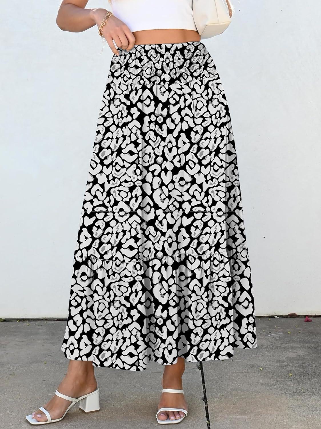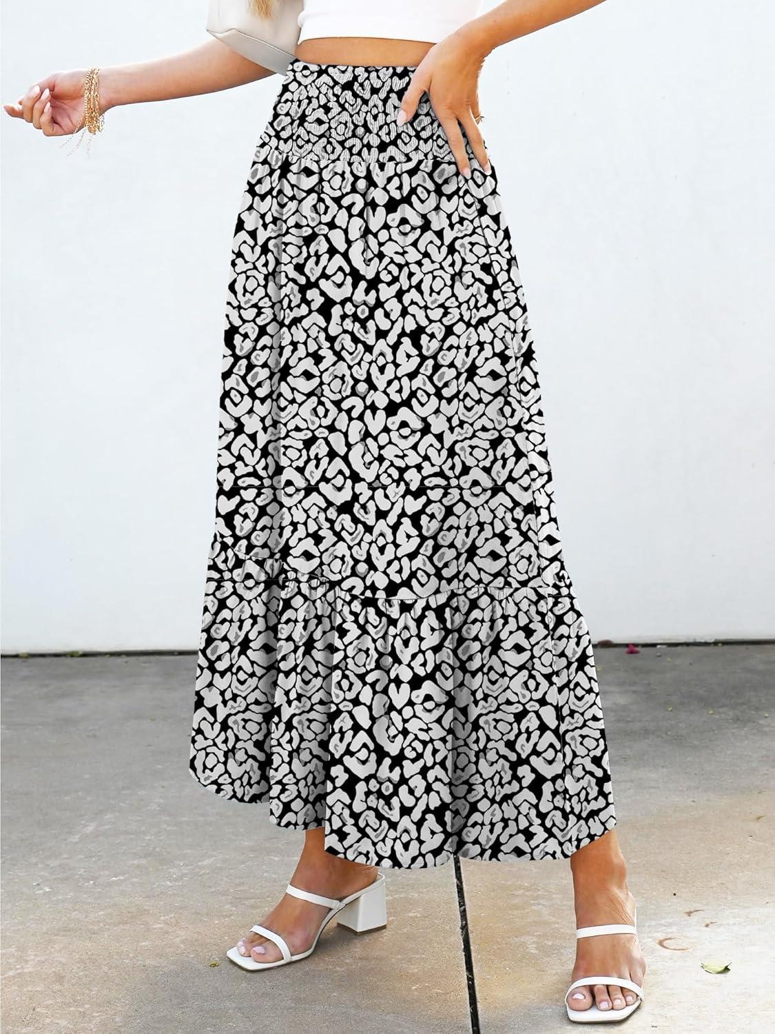 ANRABESS Maxi Skirts for Women 2025 Summer Boho Long Flowy Floral Elastic High Waist Skirt Casual Travel Skirt with Pockets(Leopard Print)