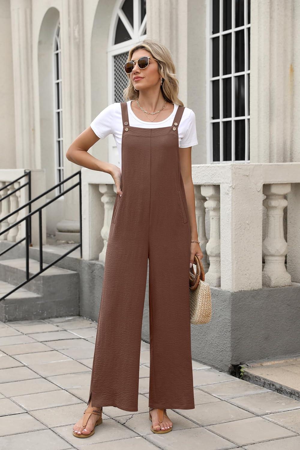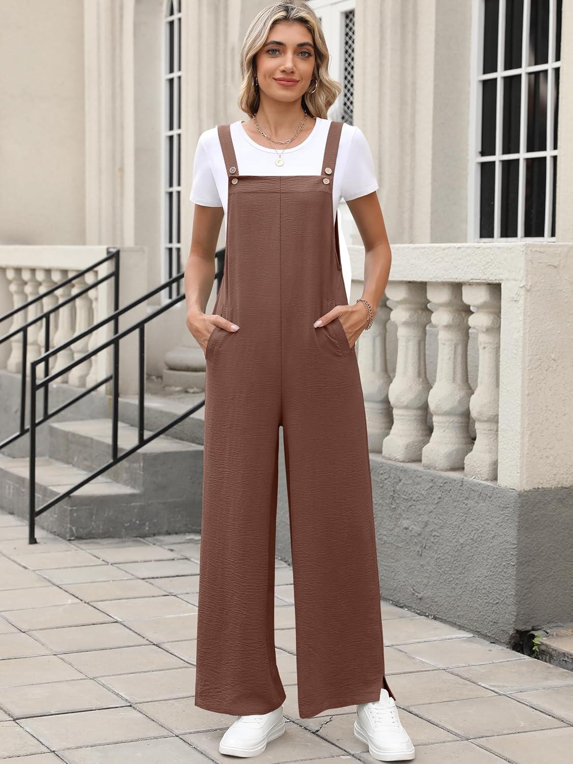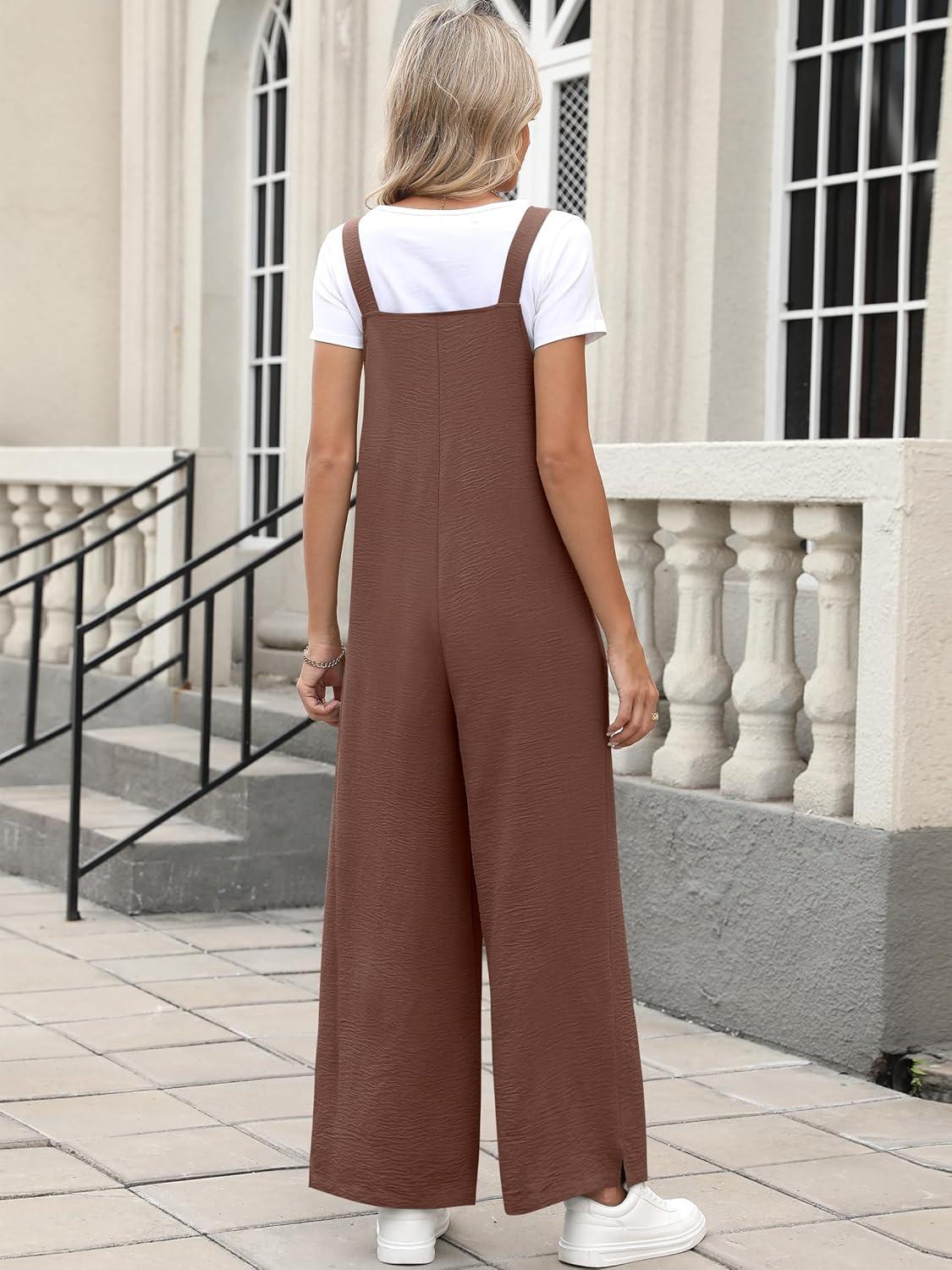 ANRABESS Overalls for Women 2025 Summer Casual Loose One Piece Outfits Baggy Wide Leg Jumpers Lightweight Comfy Rompers(Brown)