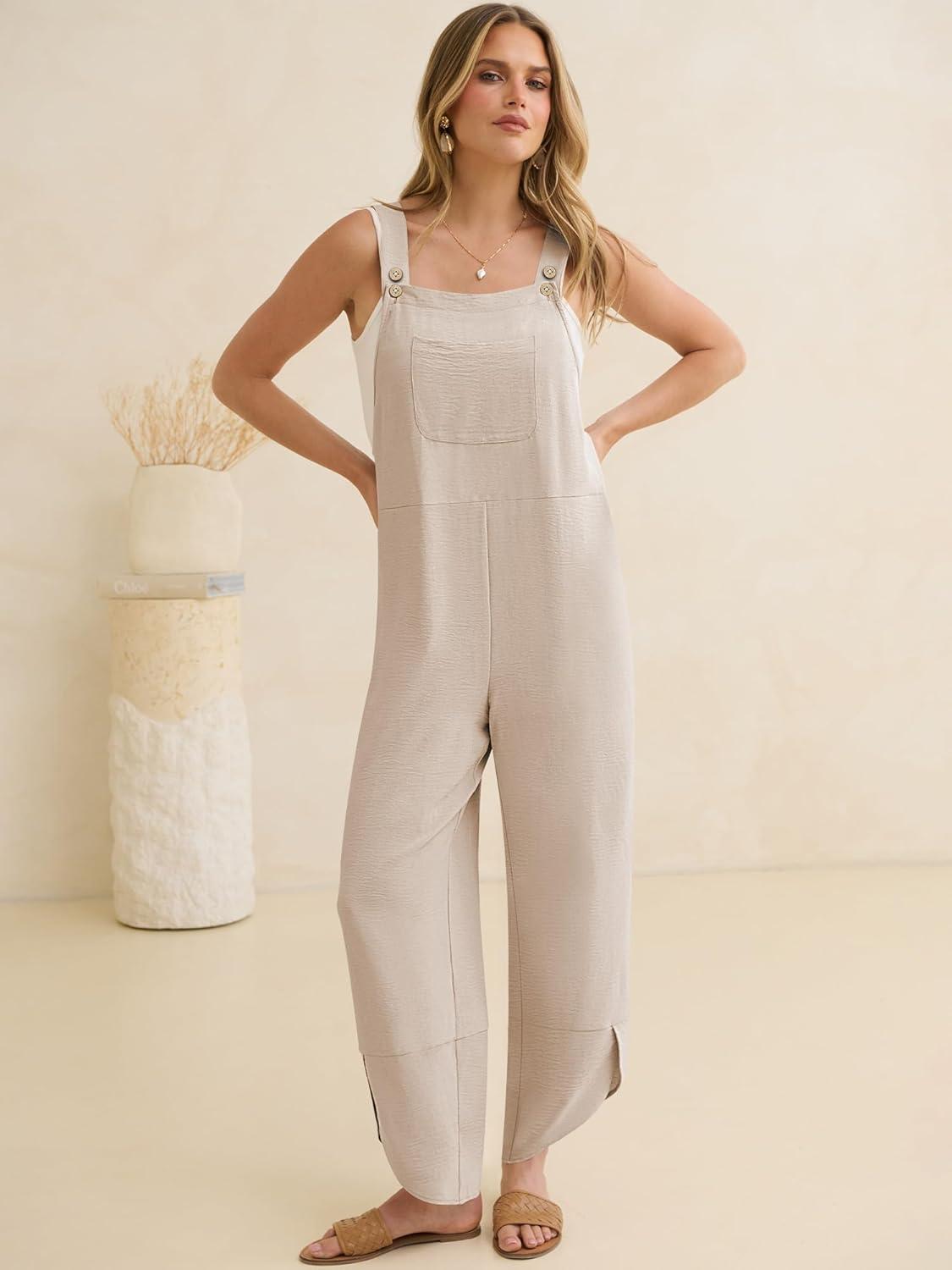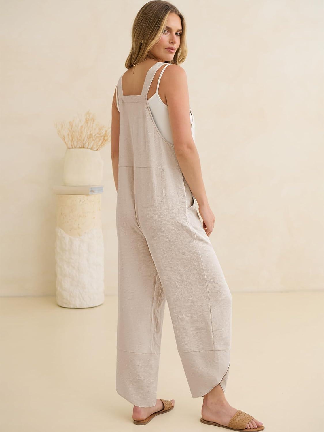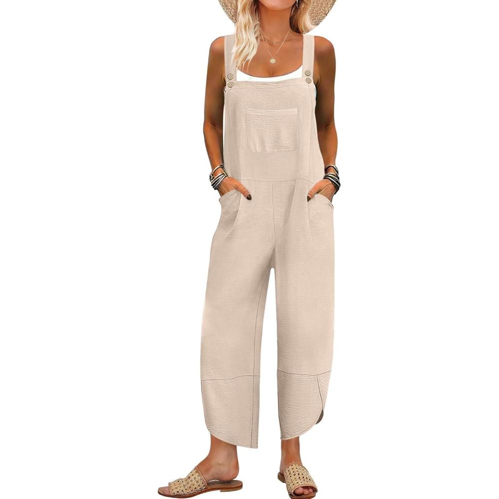 ANRABESS Overalls for Women Casual Summer Jumpsuits Adjustable Straps Loose Fit Bib Overalls Pockets Spring Vacation Clothes(Almond)