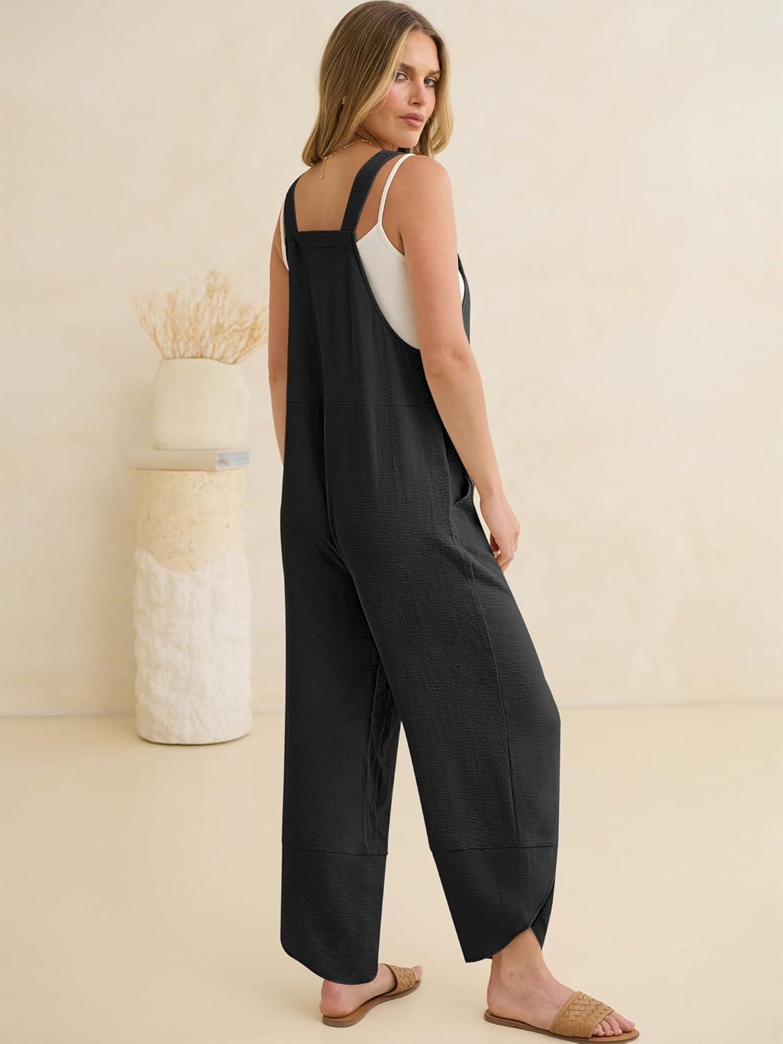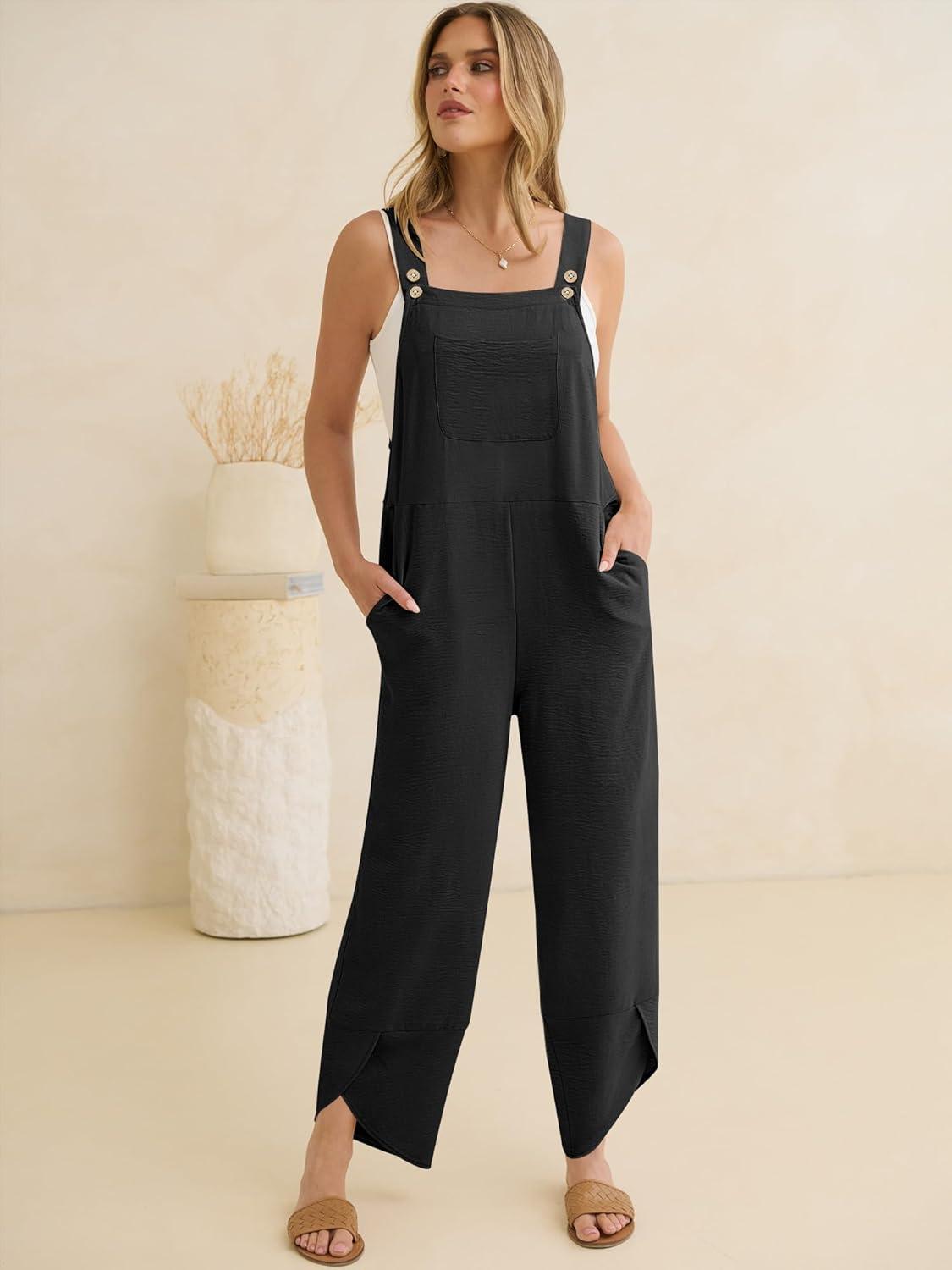 ANRABESS Overalls for Women Casual Summer Jumpsuits Adjustable Straps Loose Fit Bib Overalls Pockets Spring Vacation Clothes(Black)