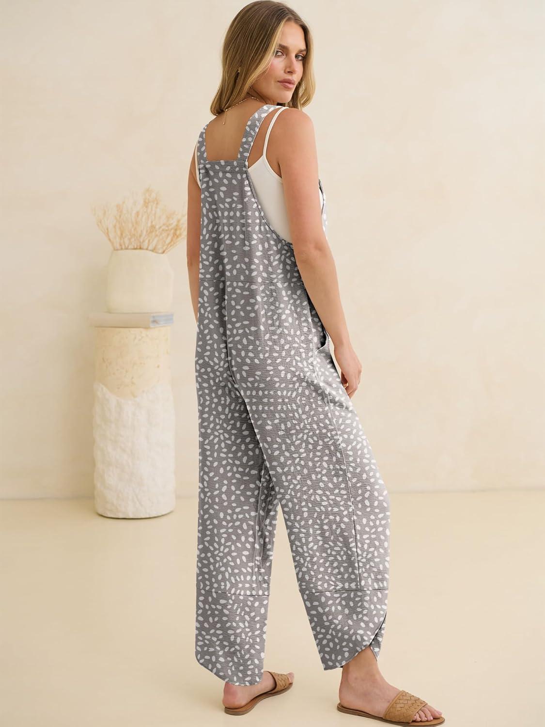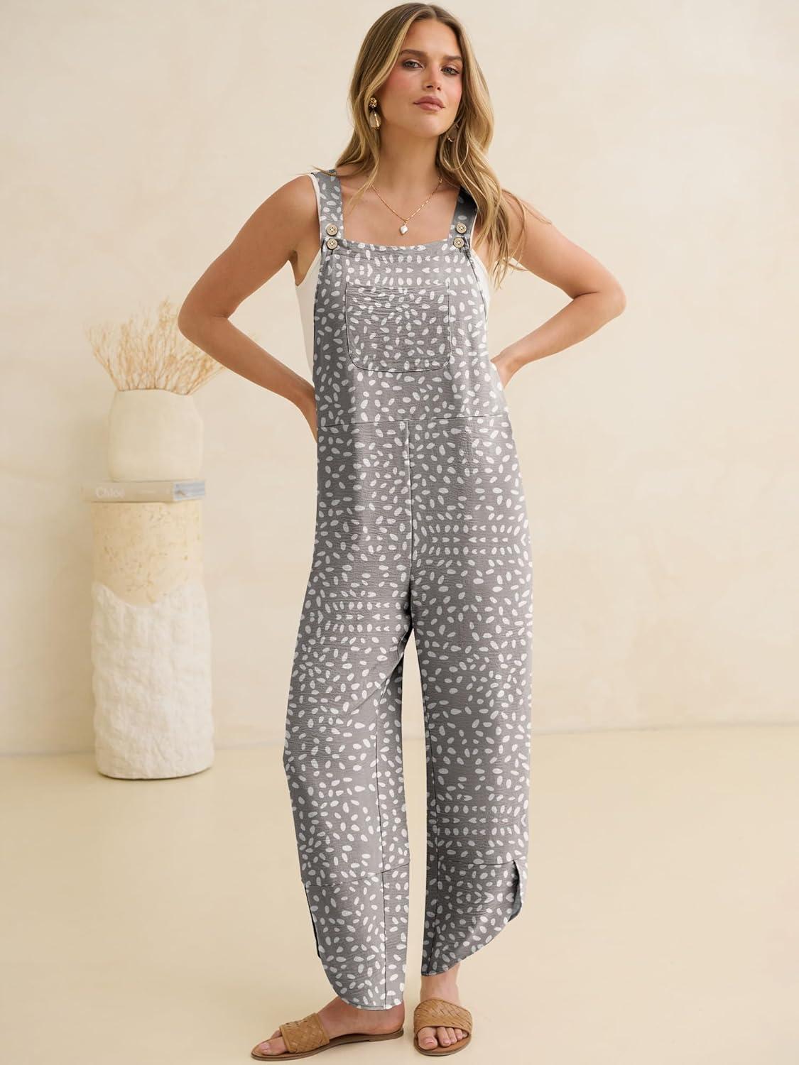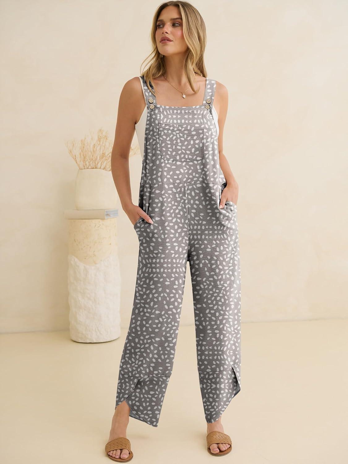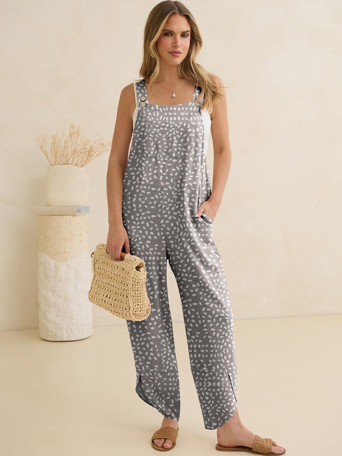 ANRABESS Overalls for Women Casual Summer Jumpsuits Adjustable Straps Loose Fit Bib Overalls Pockets Spring Vacation Clothes(Khaki Polka Dot)
