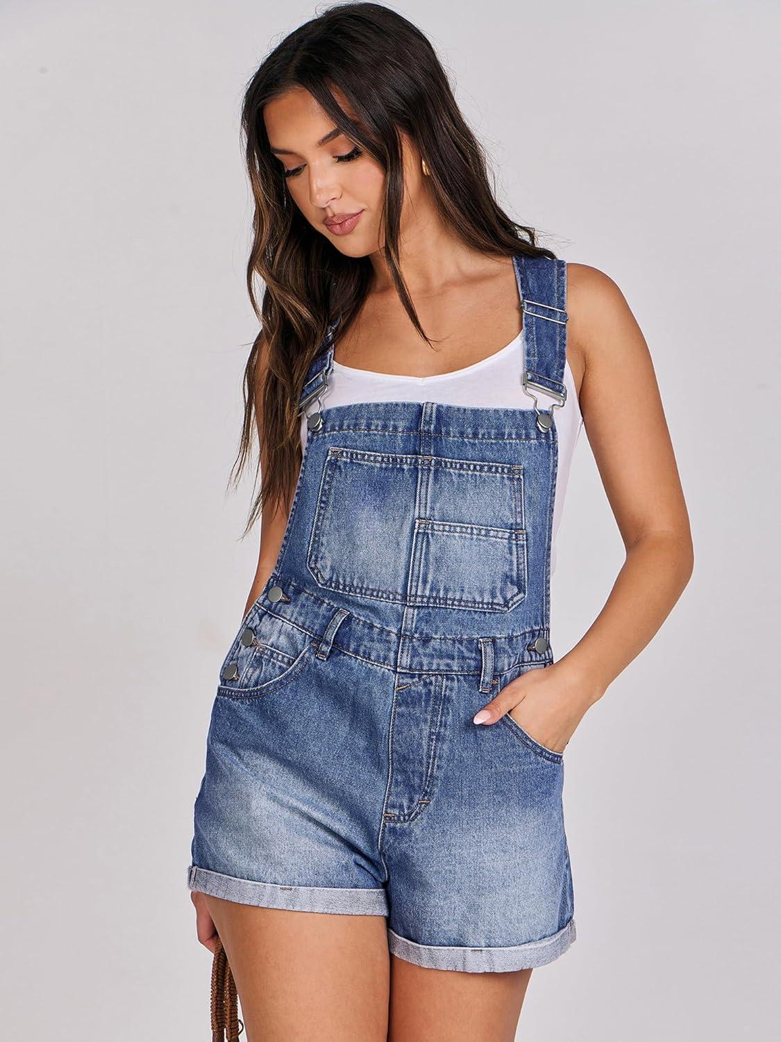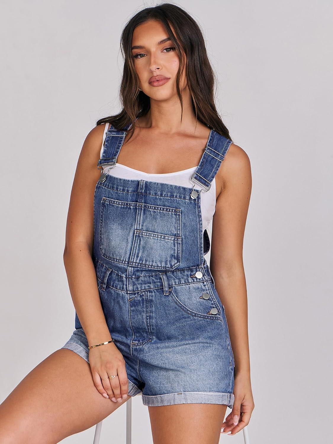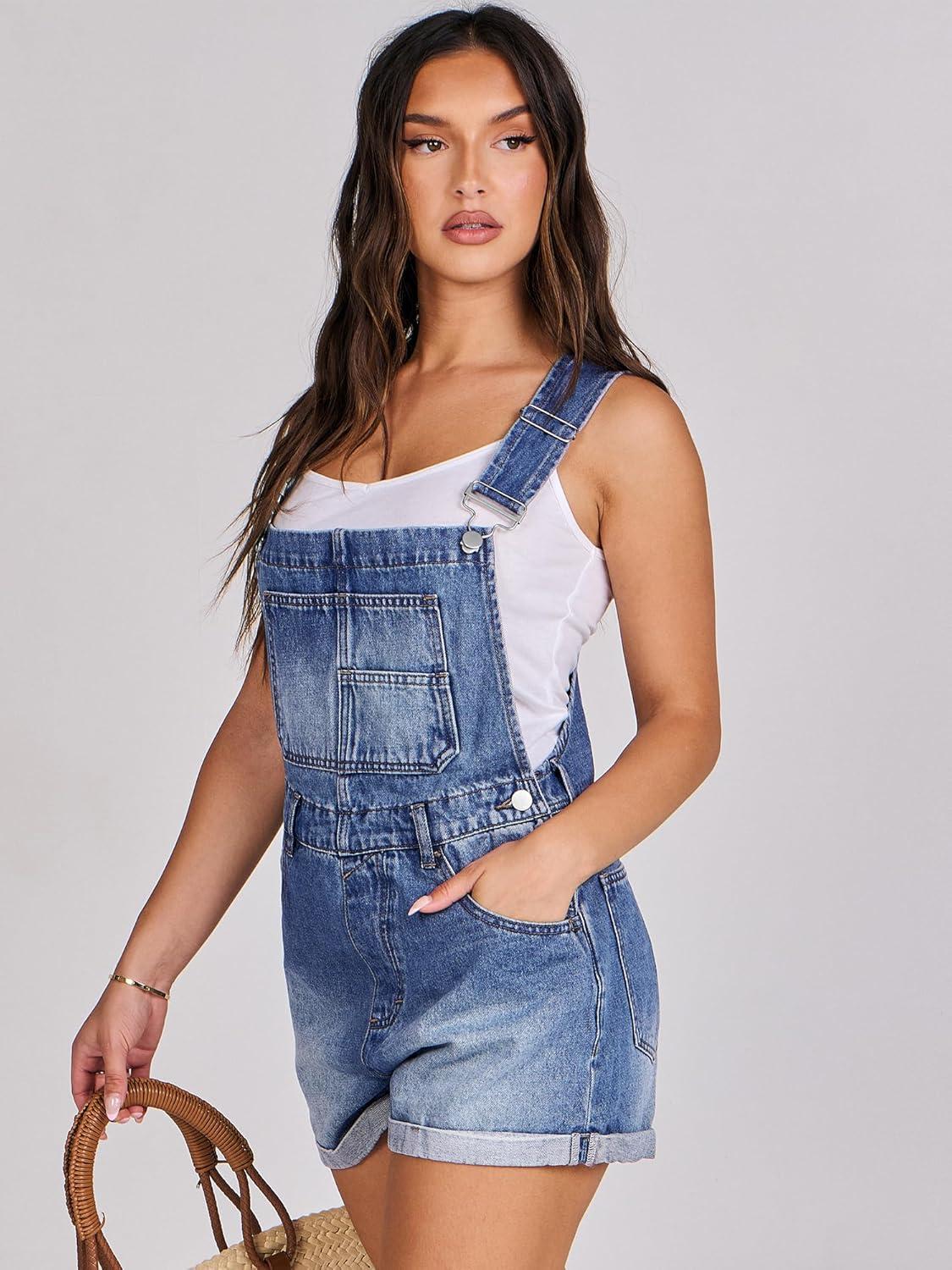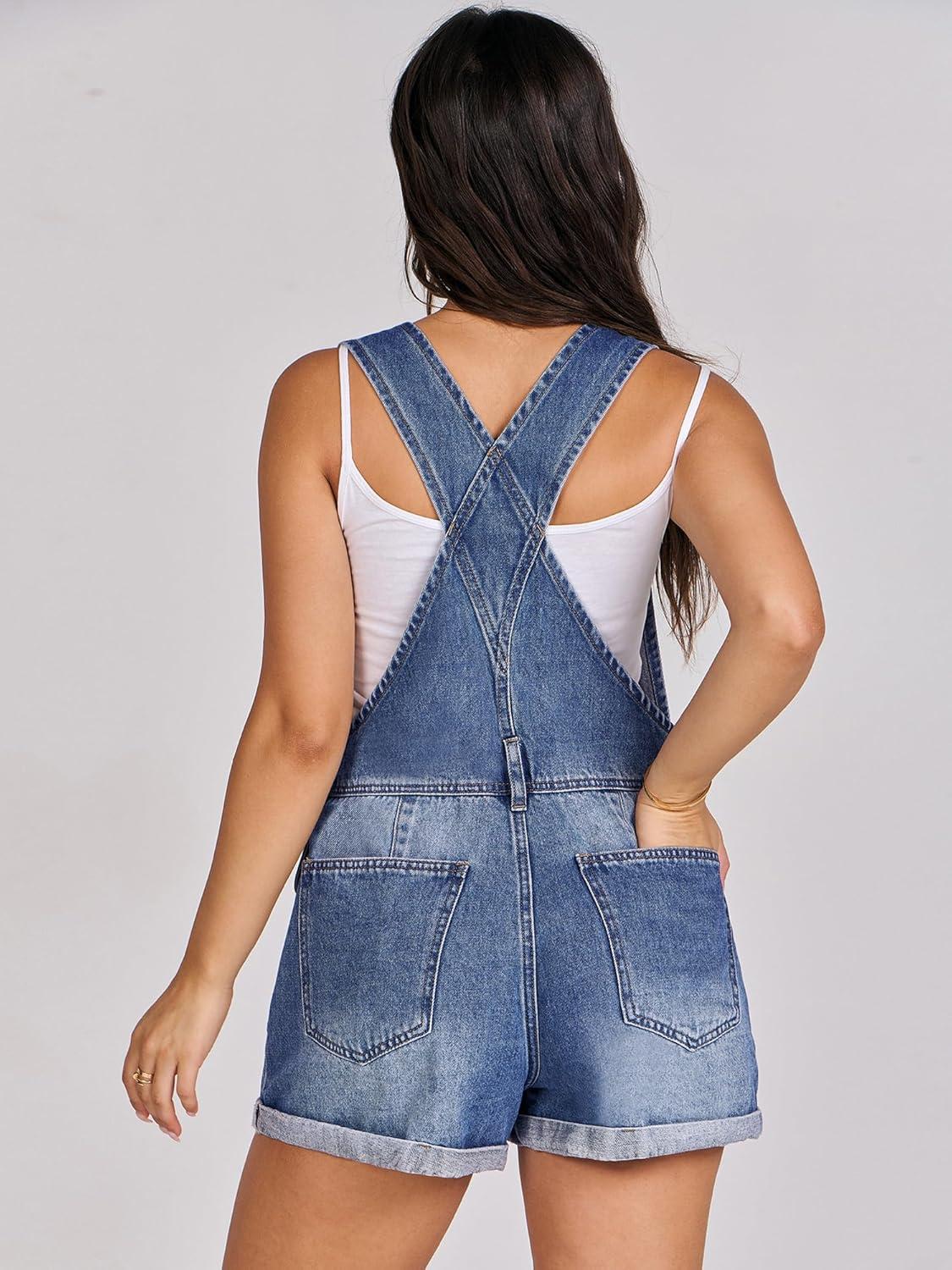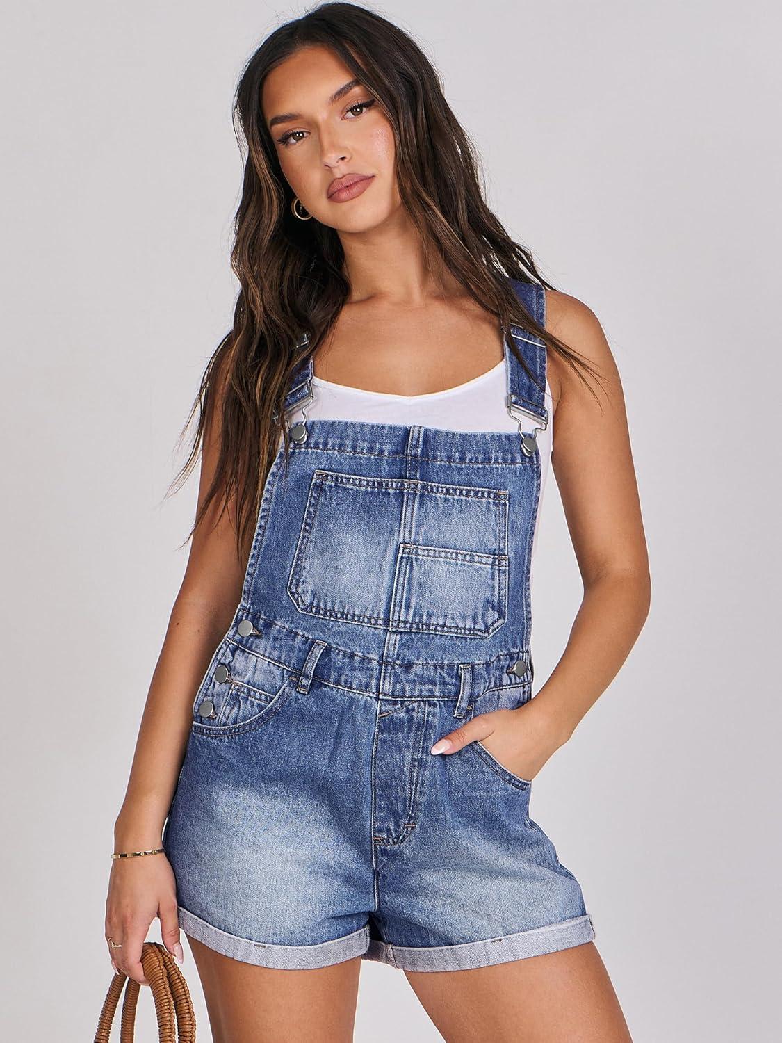 ANRABESS Overalls for Women Denim Shorts Overalls 2025 Summer Casual Loose Fit Adjustable Rompers Jean jumpsuit Bib Shortalls(A Washed Blue)