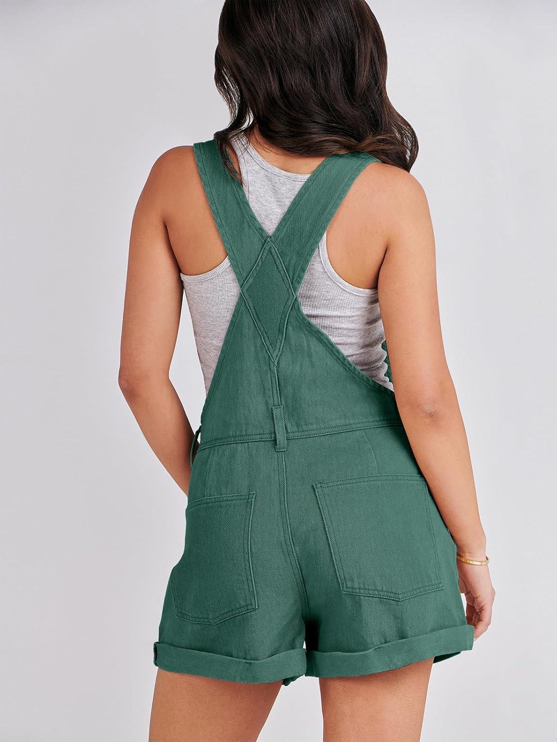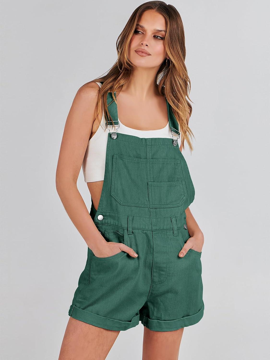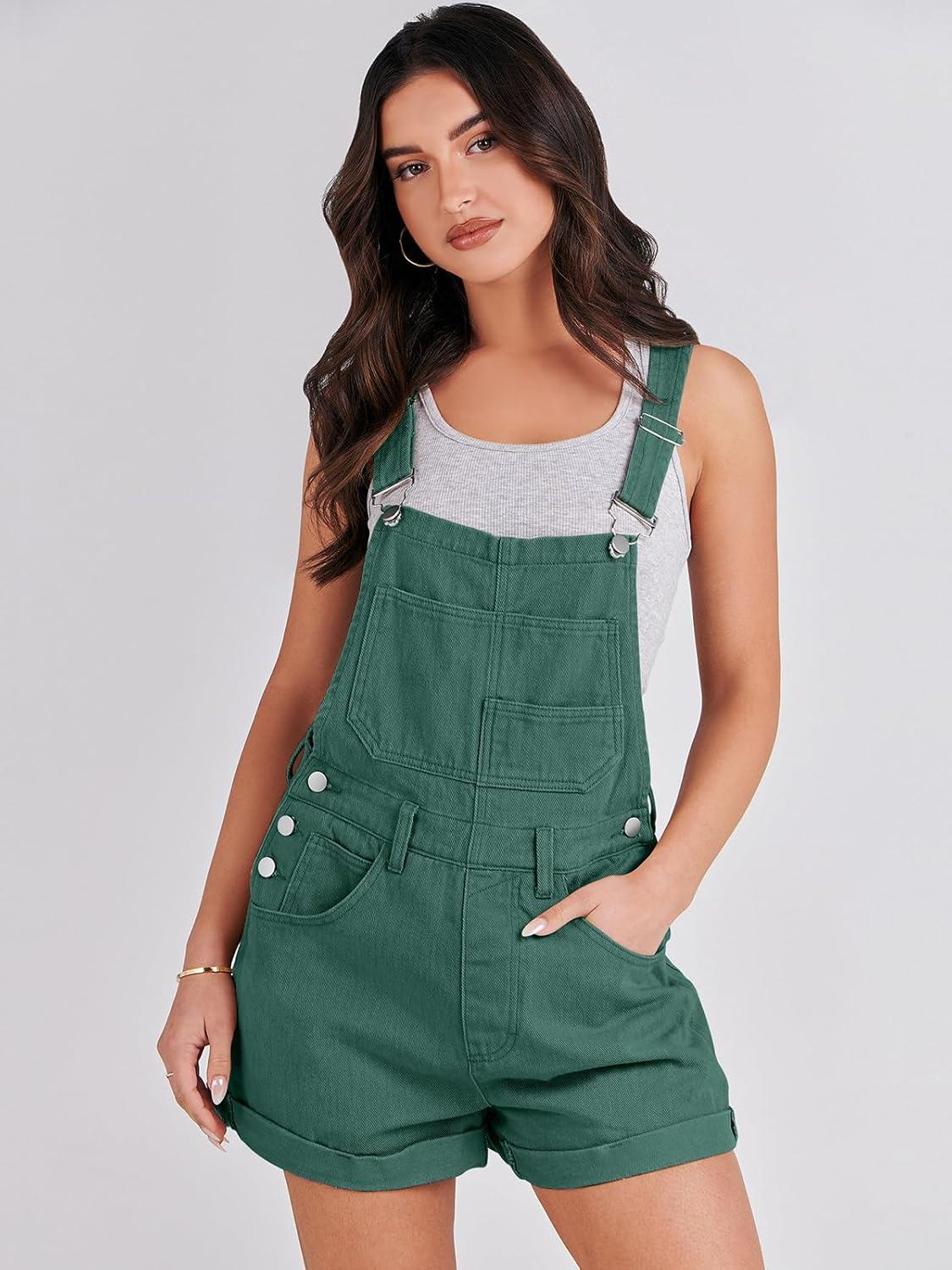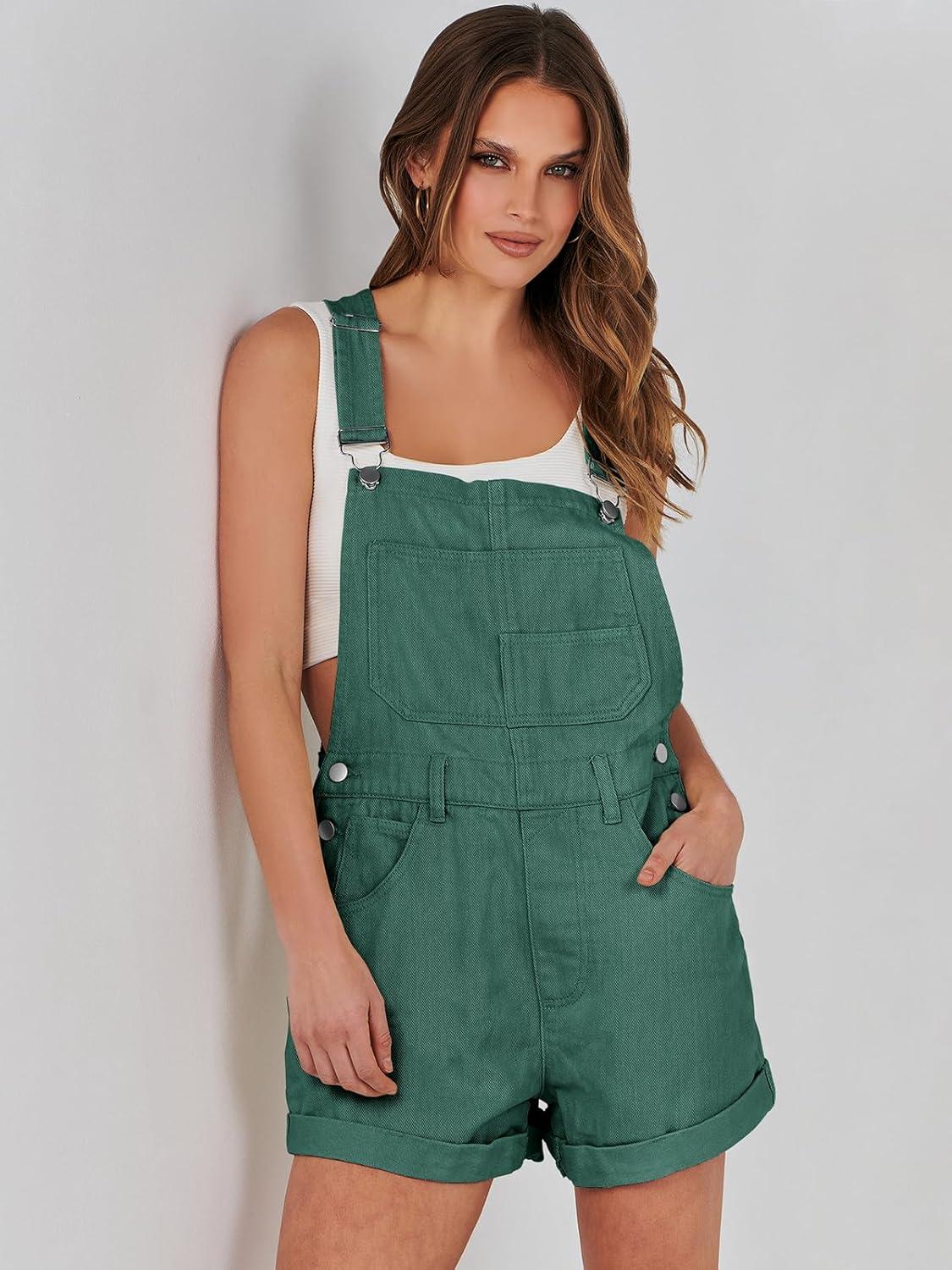 ANRABESS Overalls for Women Denim Shorts Overalls 2025 Summer Casual Loose Fit Adjustable Rompers Jean jumpsuit Bib Shortalls(Deep Green)