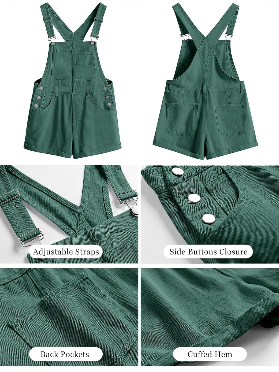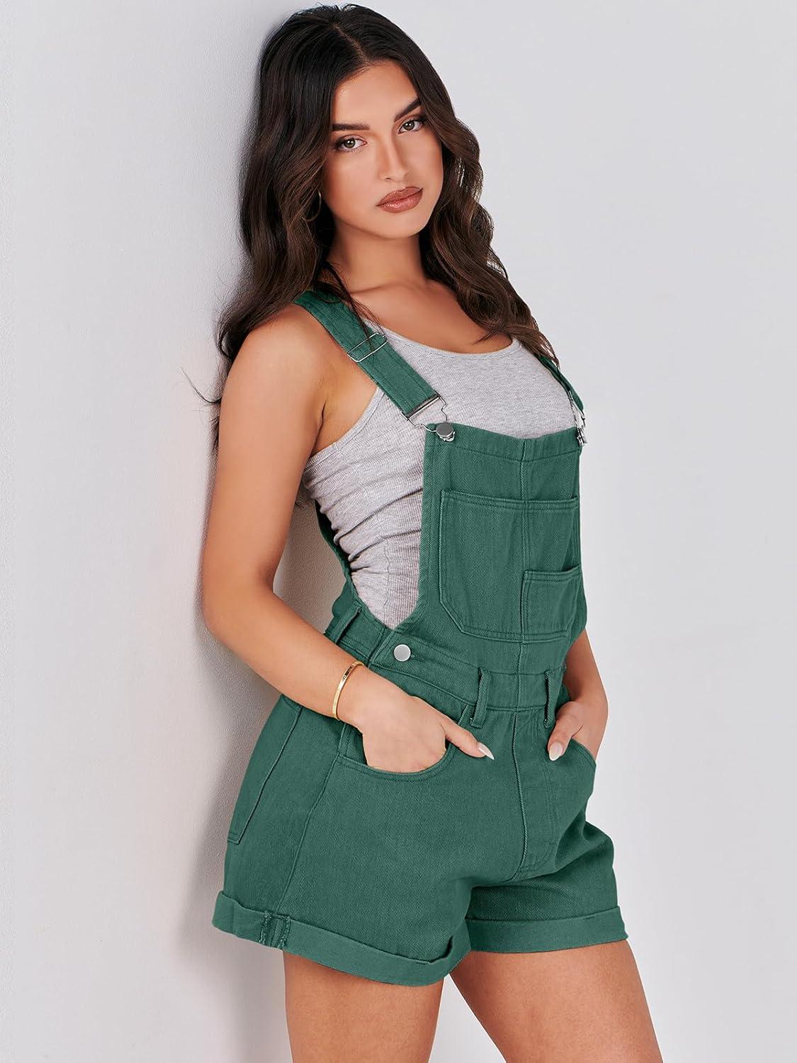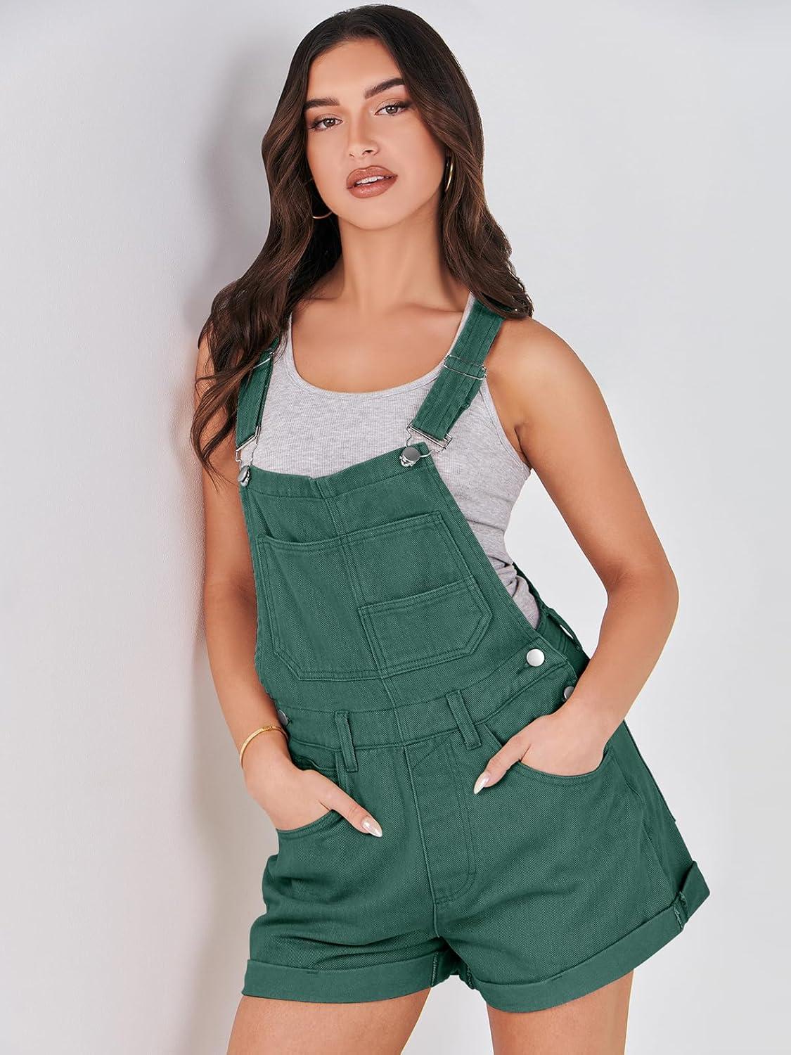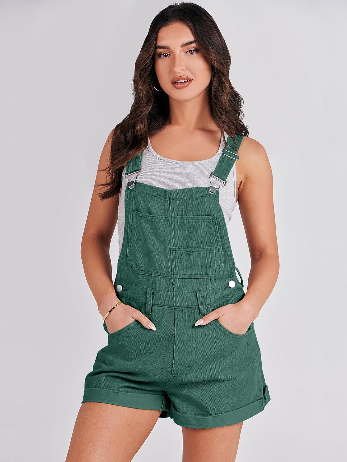 ANRABESS Overalls for Women Denim Shorts Overalls 2025 Summer Casual Loose Fit Adjustable Rompers Jean jumpsuit Bib Shortalls(Deep Green)