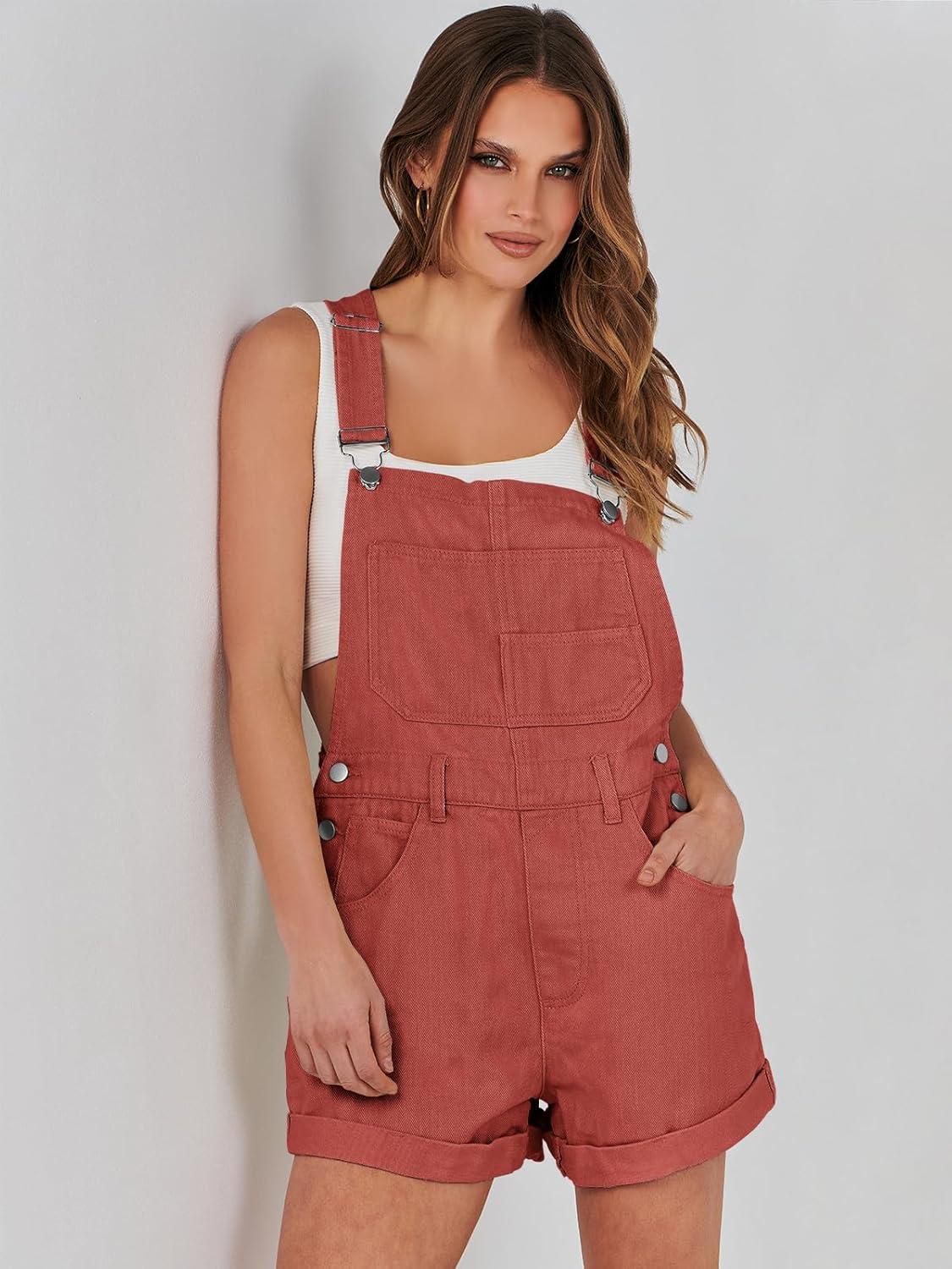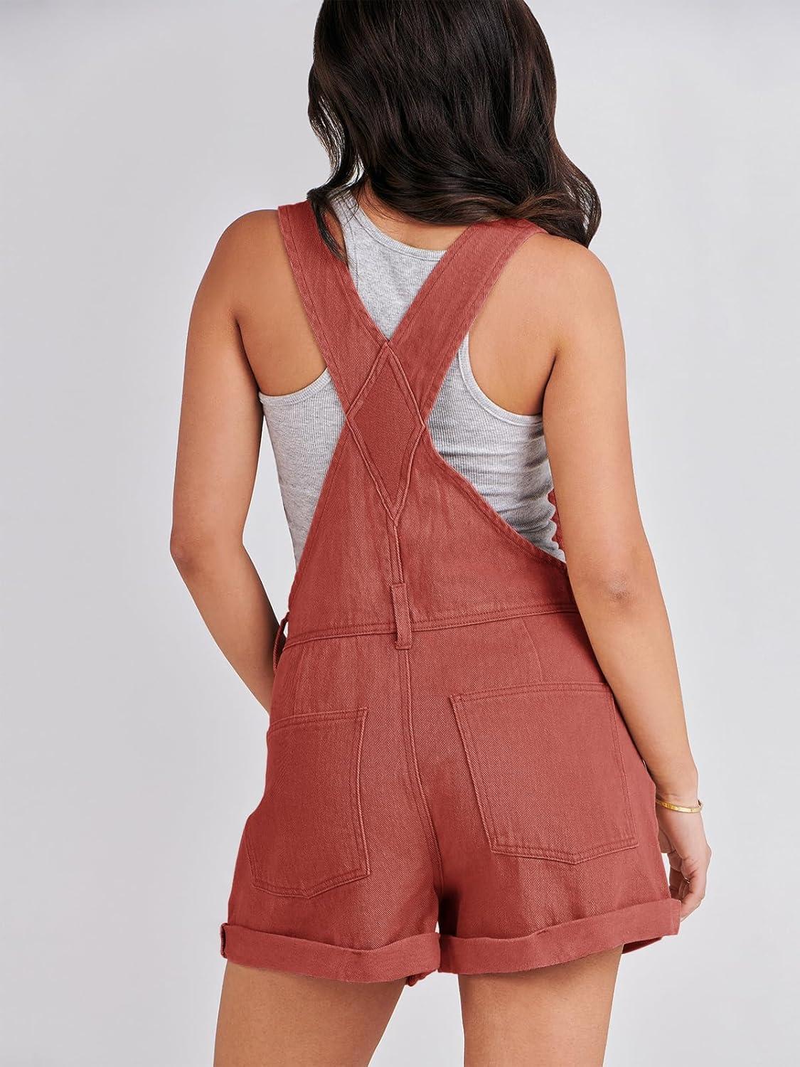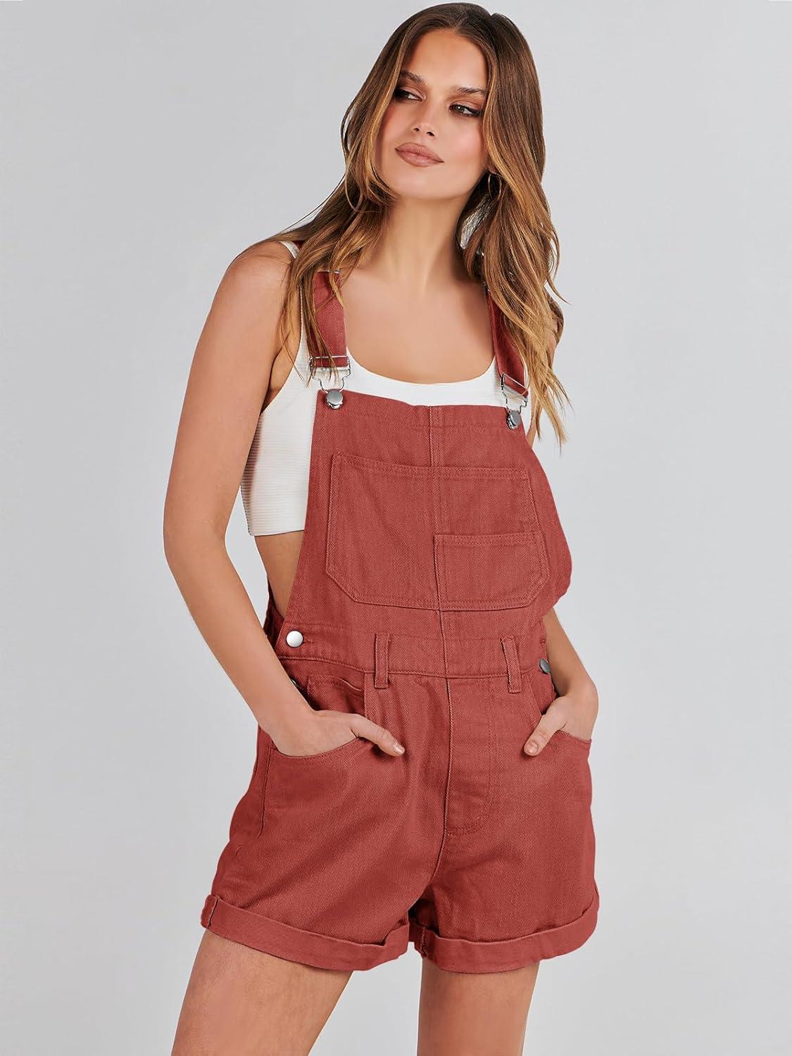ANRABESS Overalls for Women Denim Shorts Overalls 2025 Summer Casual Loose Fit Adjustable Rompers Jean jumpsuit Bib Shortalls(Rust Red)