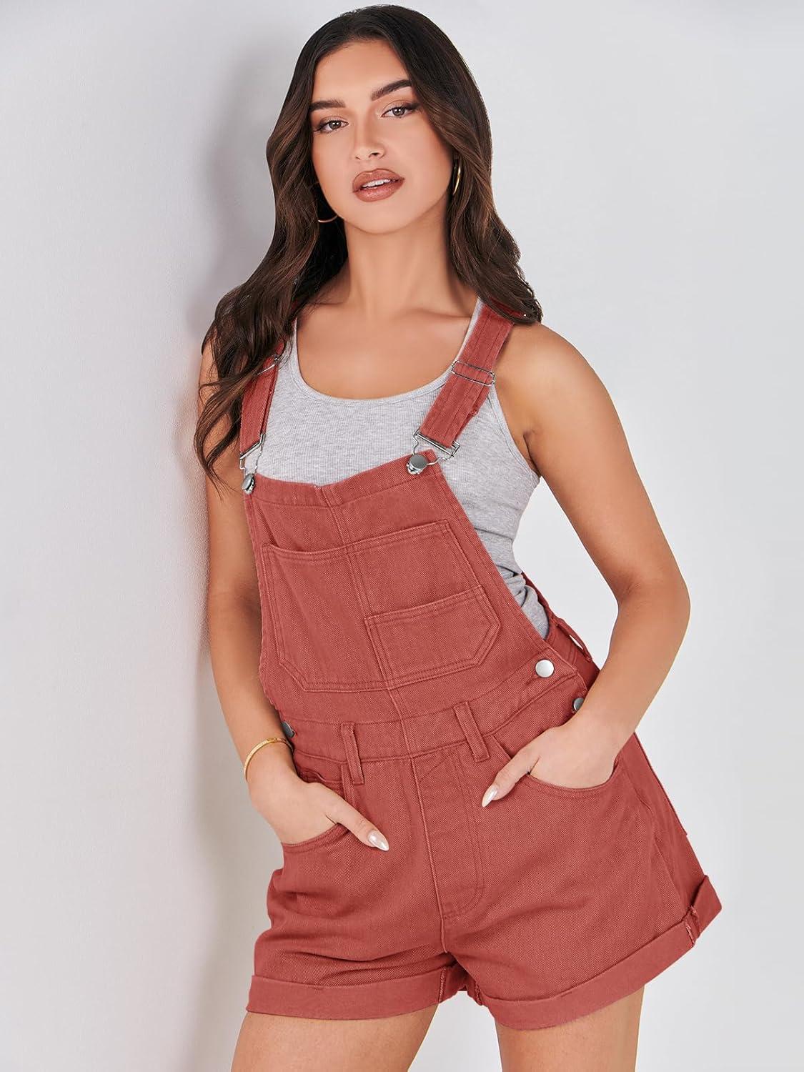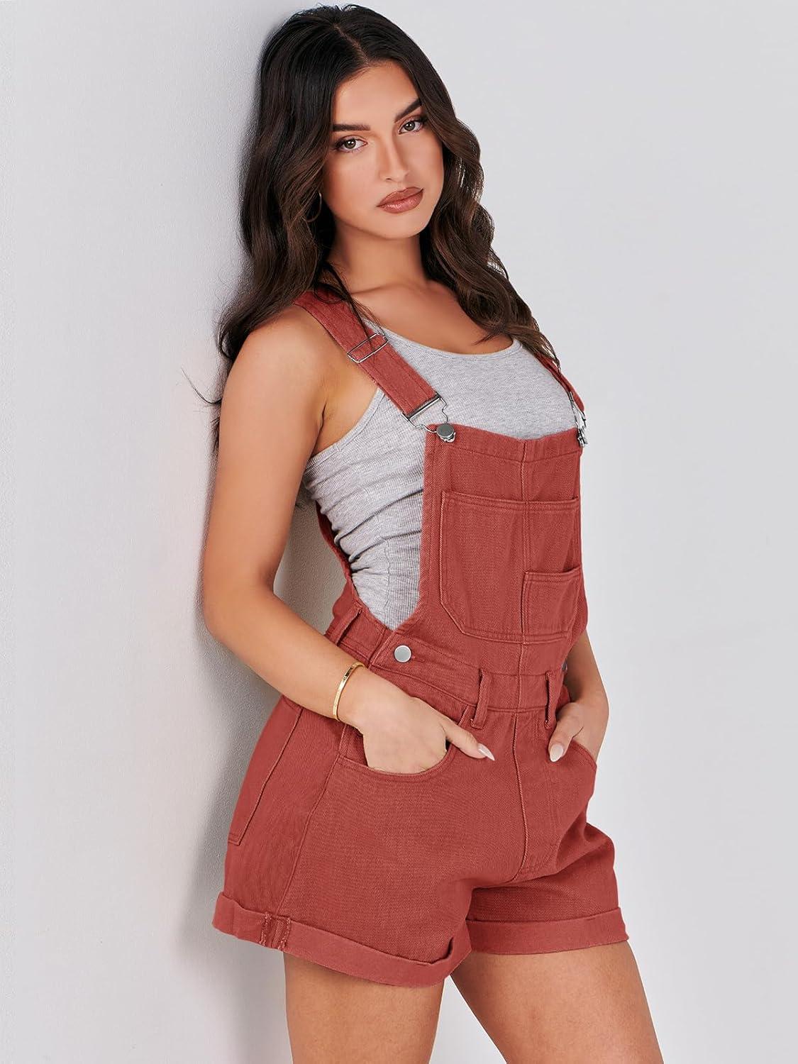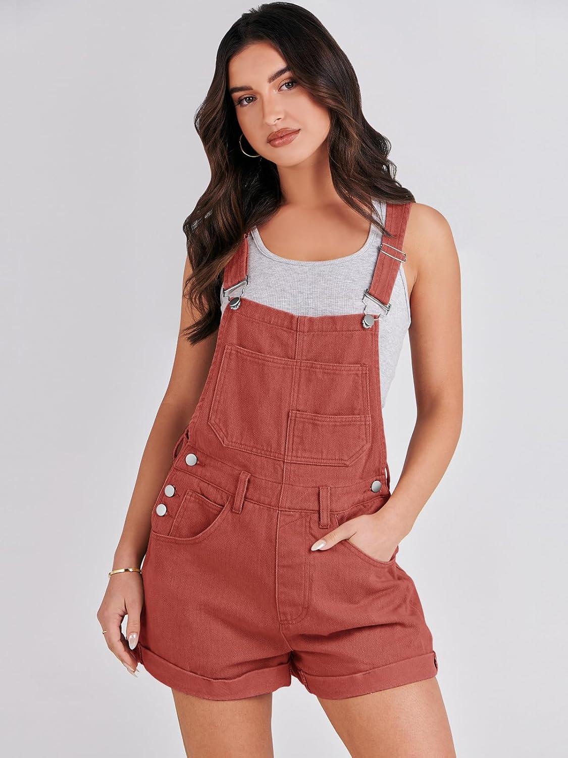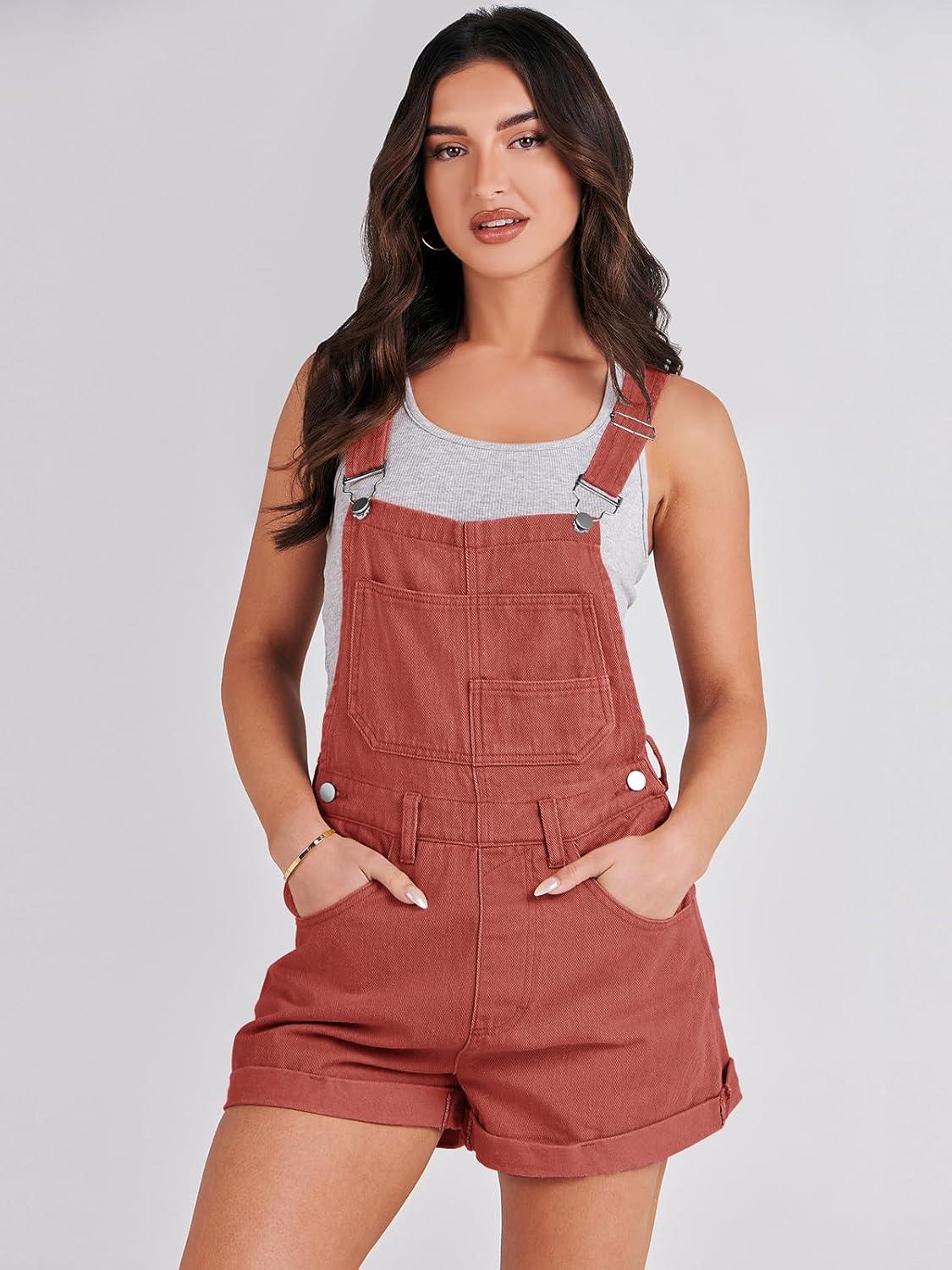 ANRABESS Overalls for Women Denim Shorts Overalls 2025 Summer Casual Loose Fit Adjustable Rompers Jean jumpsuit Bib Shortalls(Rust Red)