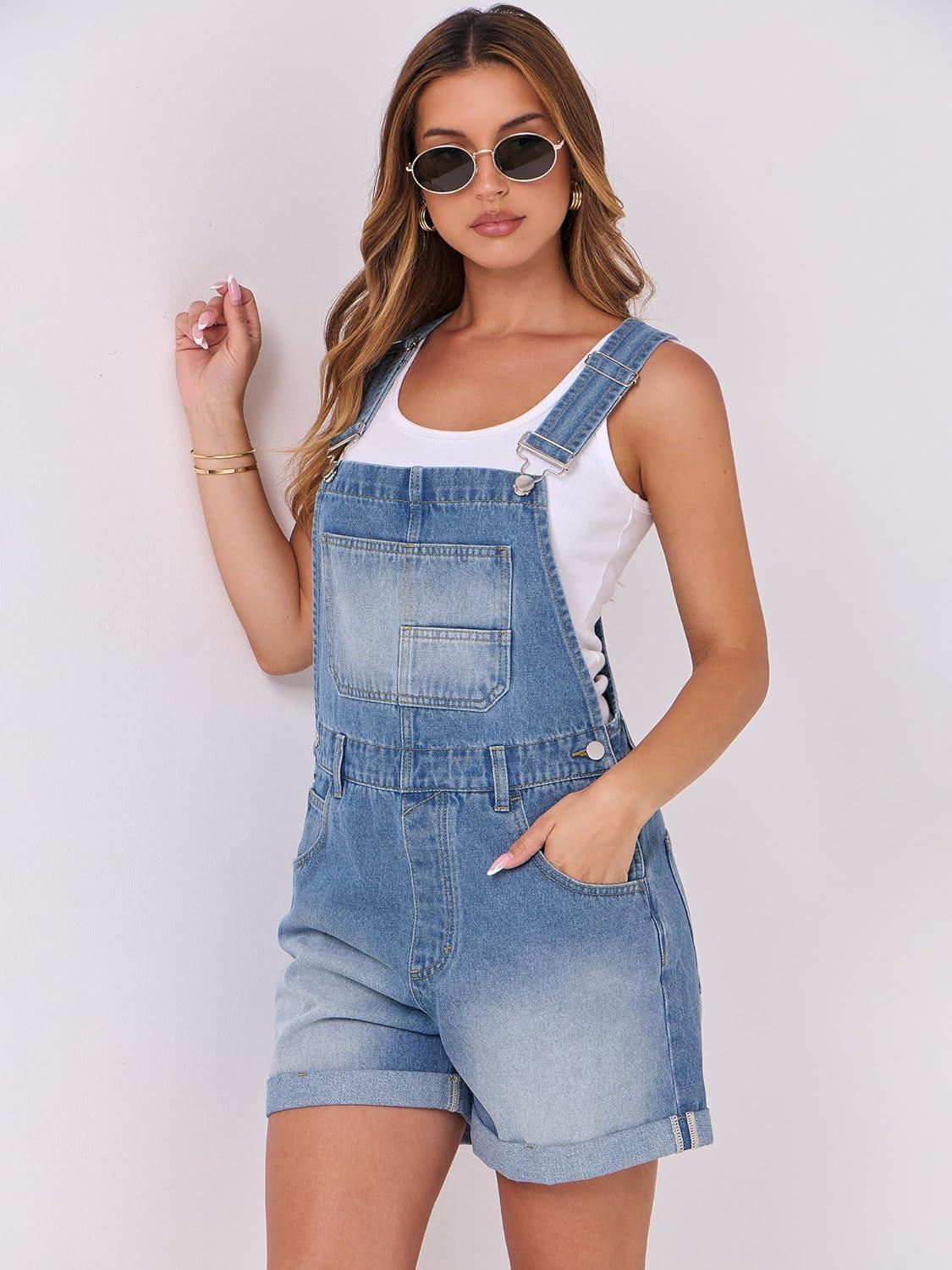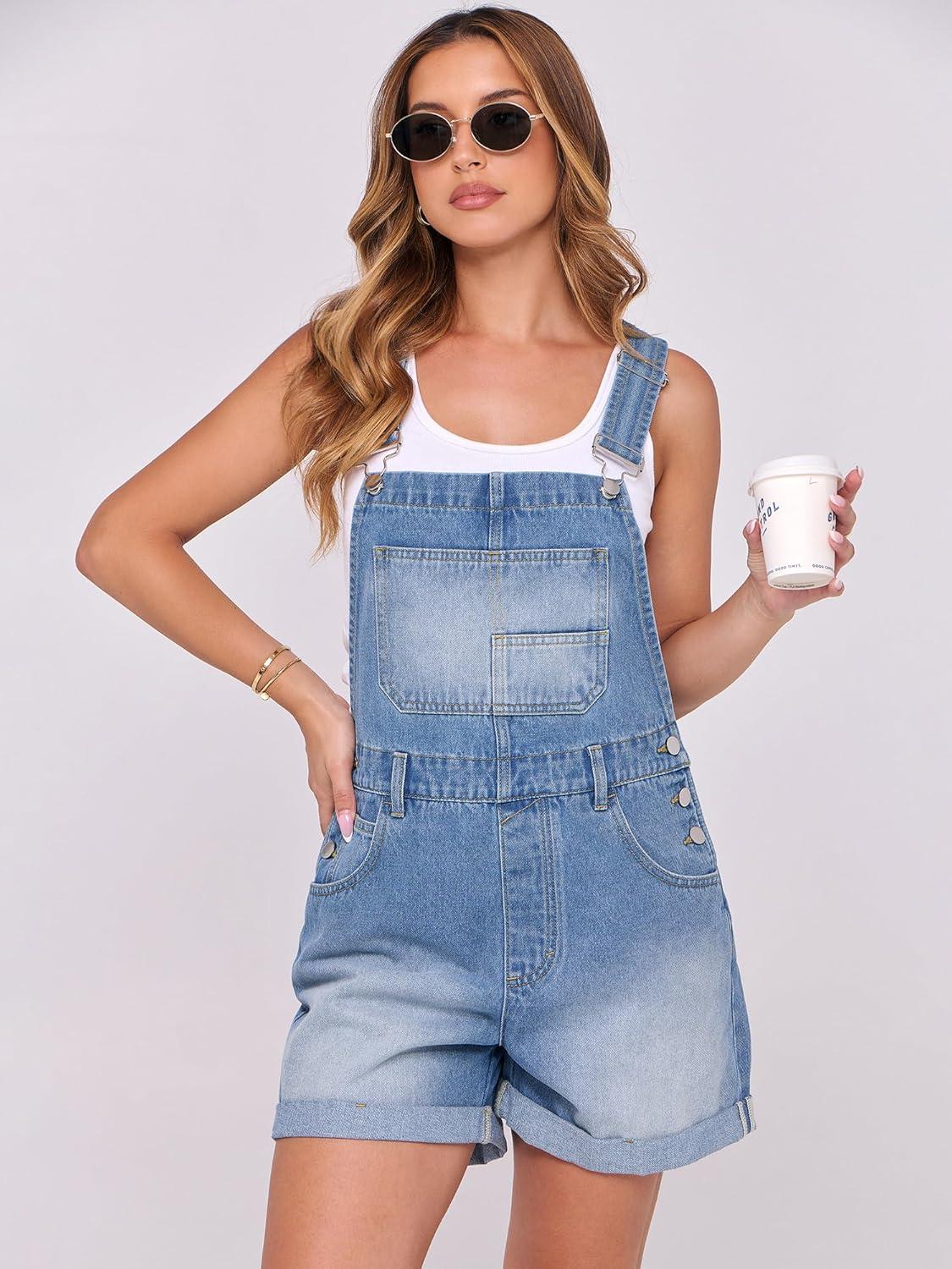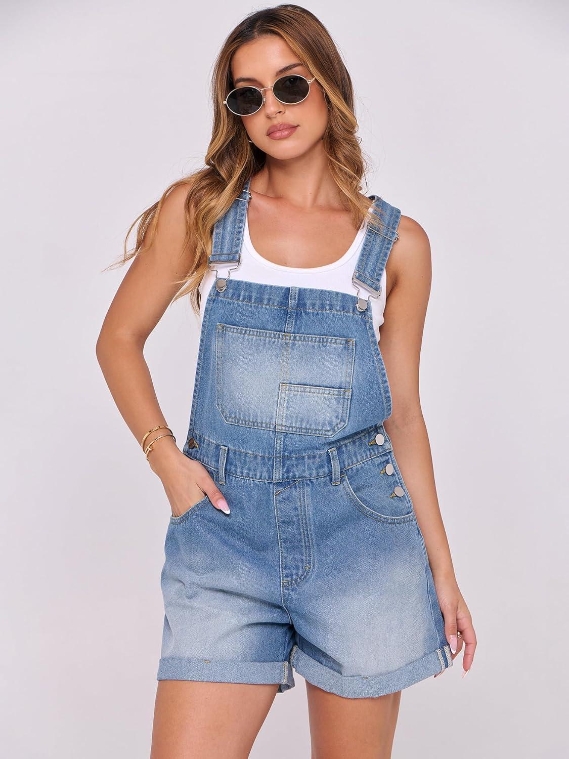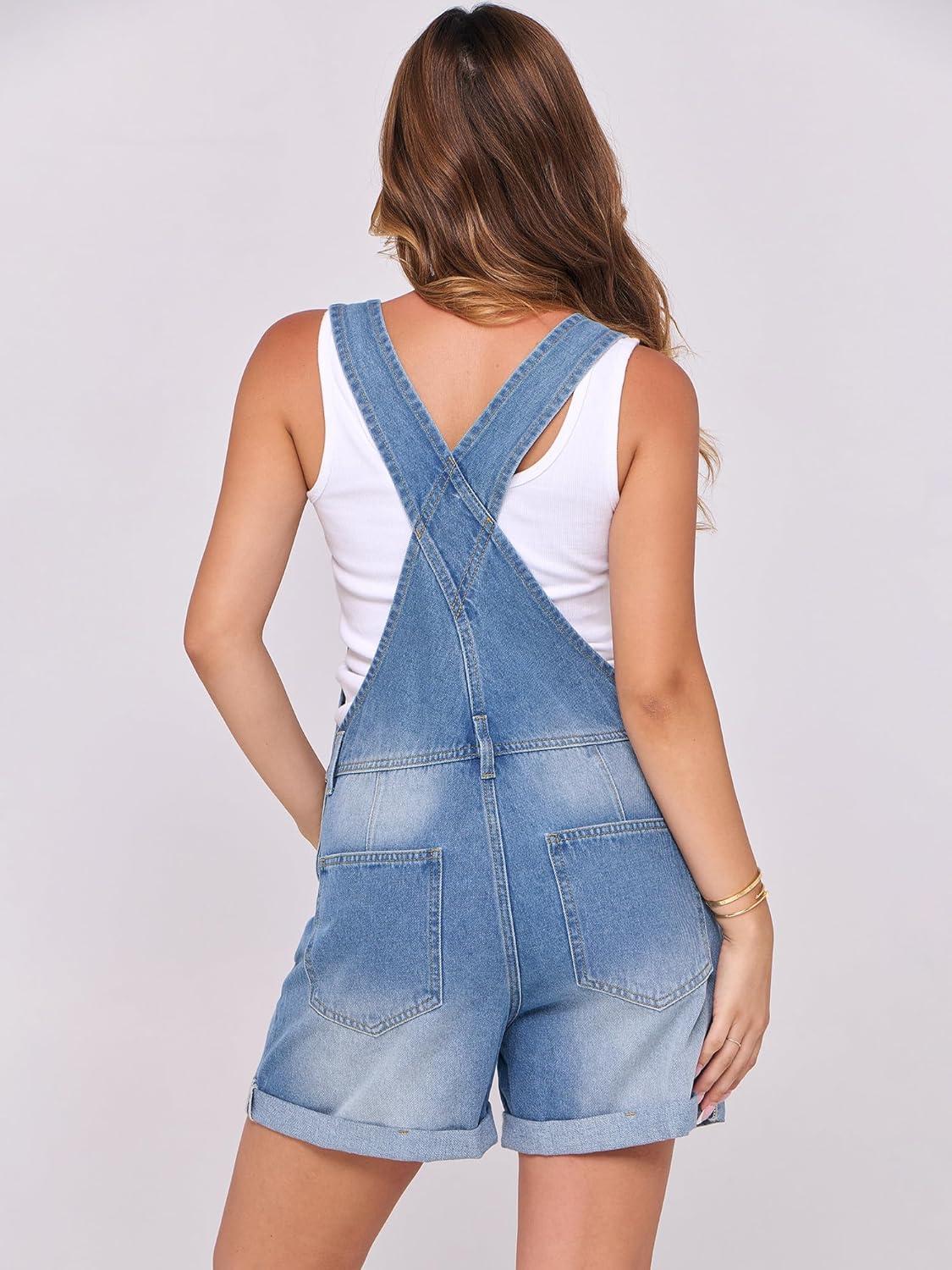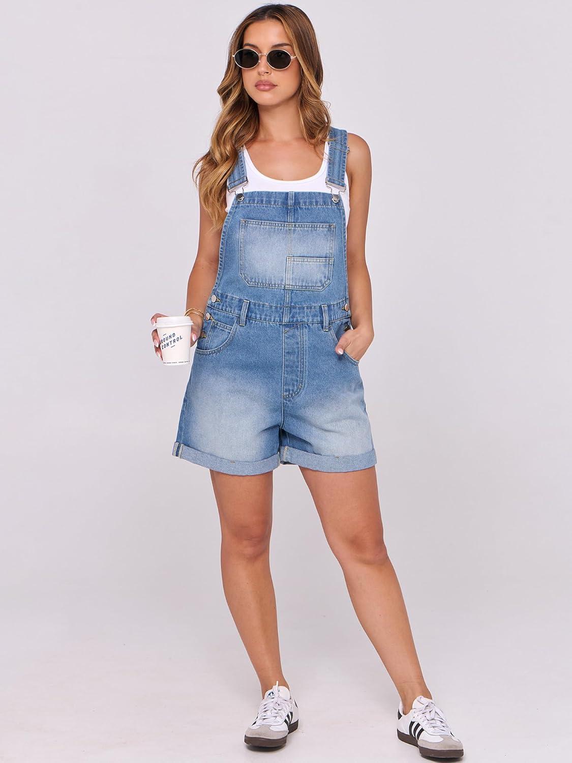 ANRABESS Overalls for Women Denim Shorts Overalls 2025 Summer Casual Loose Fit Adjustable Rompers Jean jumpsuit Bib Shortalls(Washed Barnyard Blue)