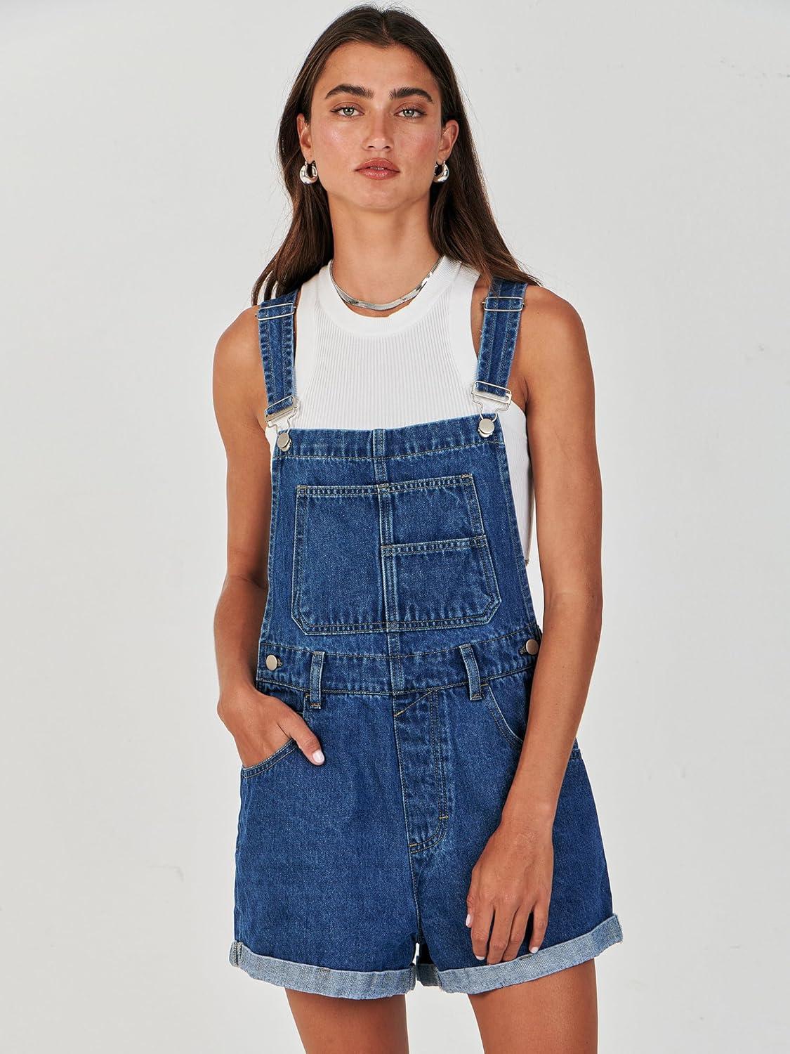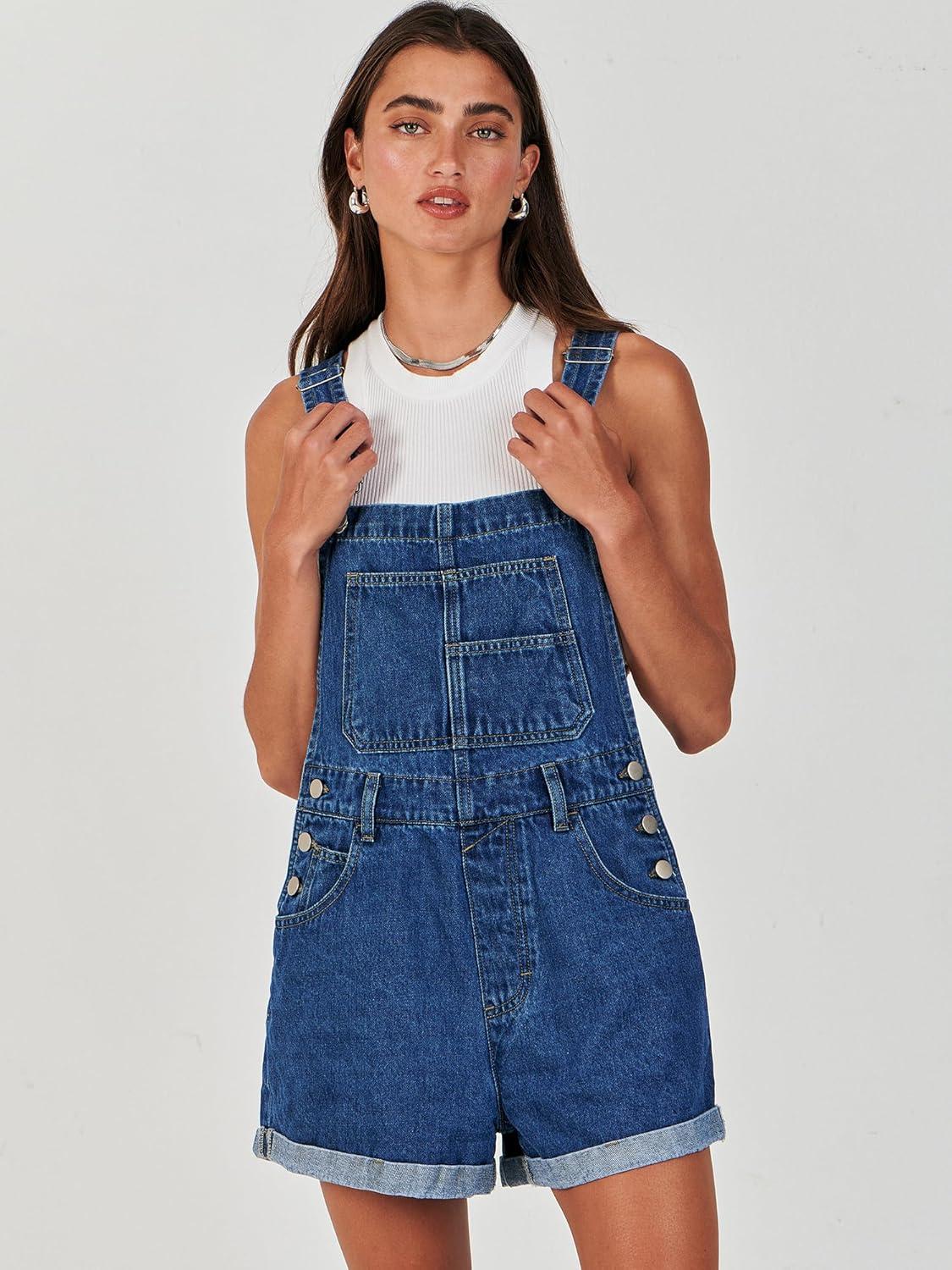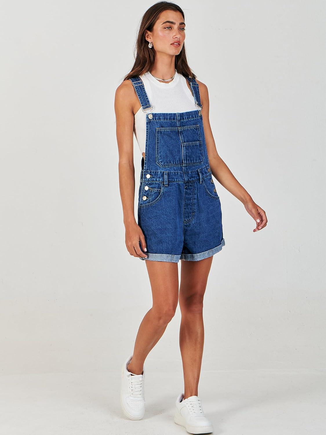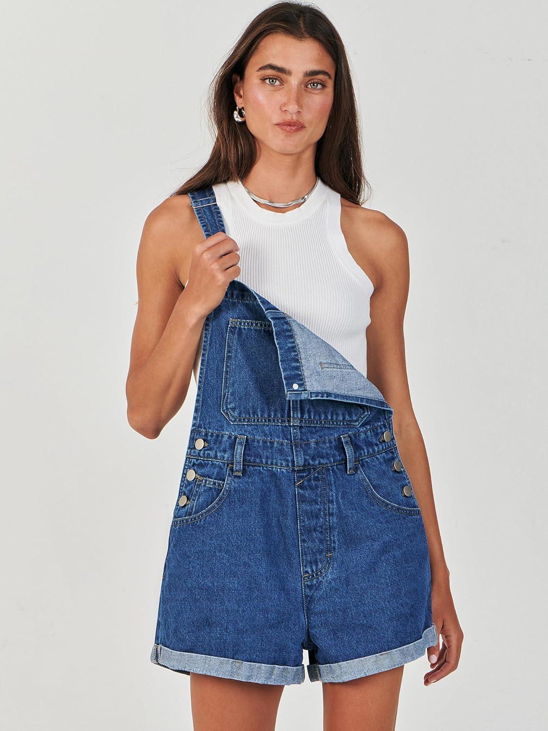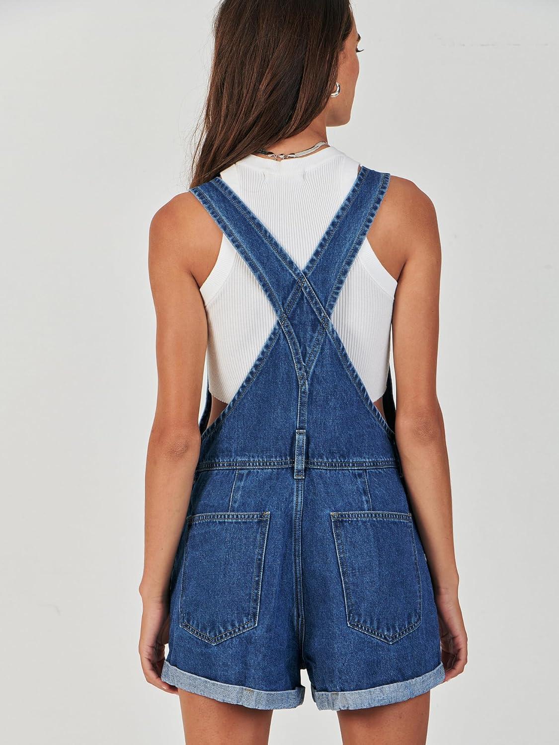 ANRABESS Overalls for Women Denim Shorts Overalls 2025 Summer Casual Loose Fit Adjustable Rompers Jean jumpsuit Bib Shortalls(Washed Deep Indigo)