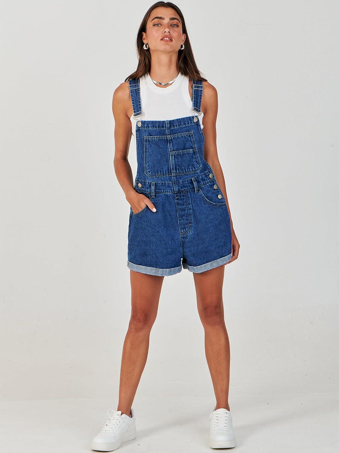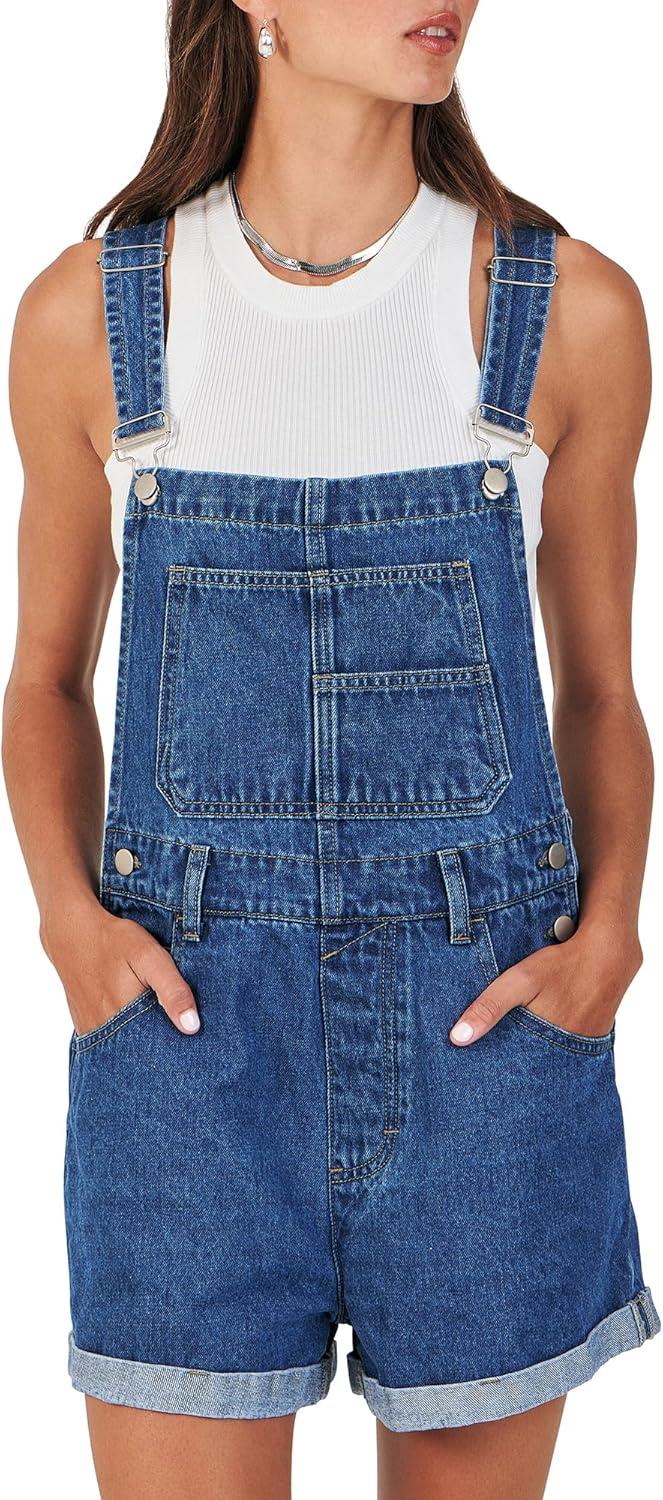 ANRABESS Overalls for Women Denim Shorts Overalls 2025 Summer Casual Loose Fit Adjustable Rompers Jean jumpsuit Bib Shortalls(Washed Deep Blue)
