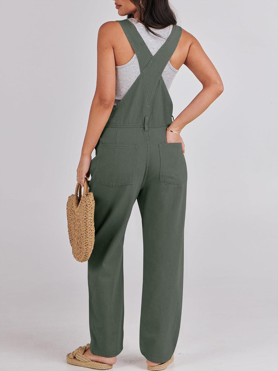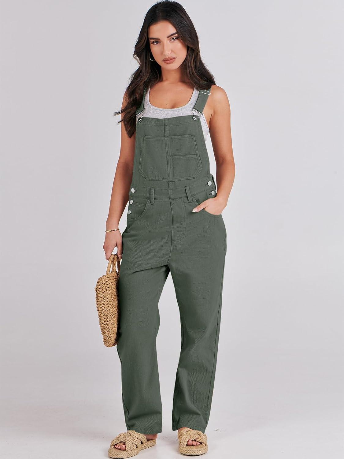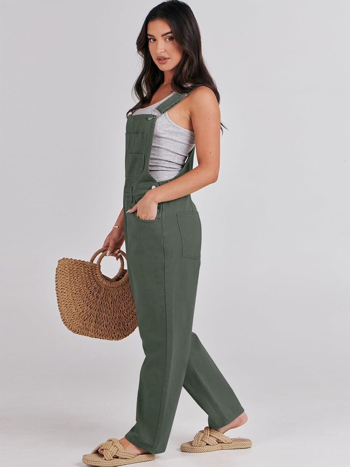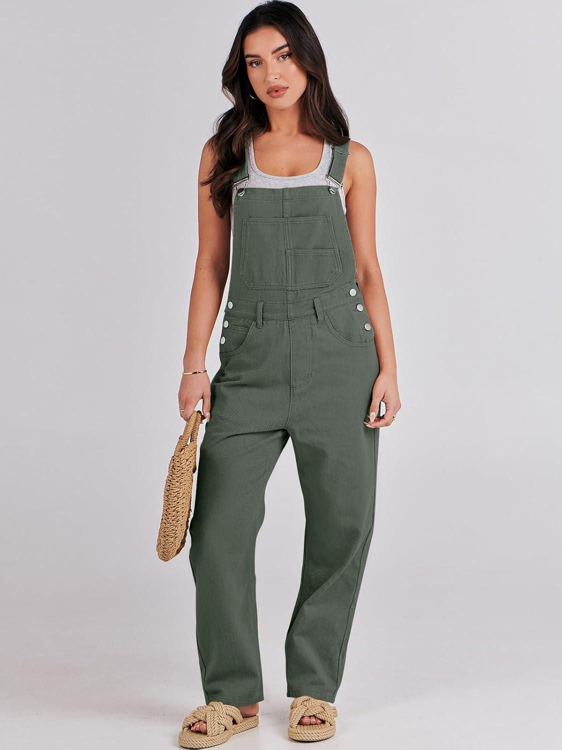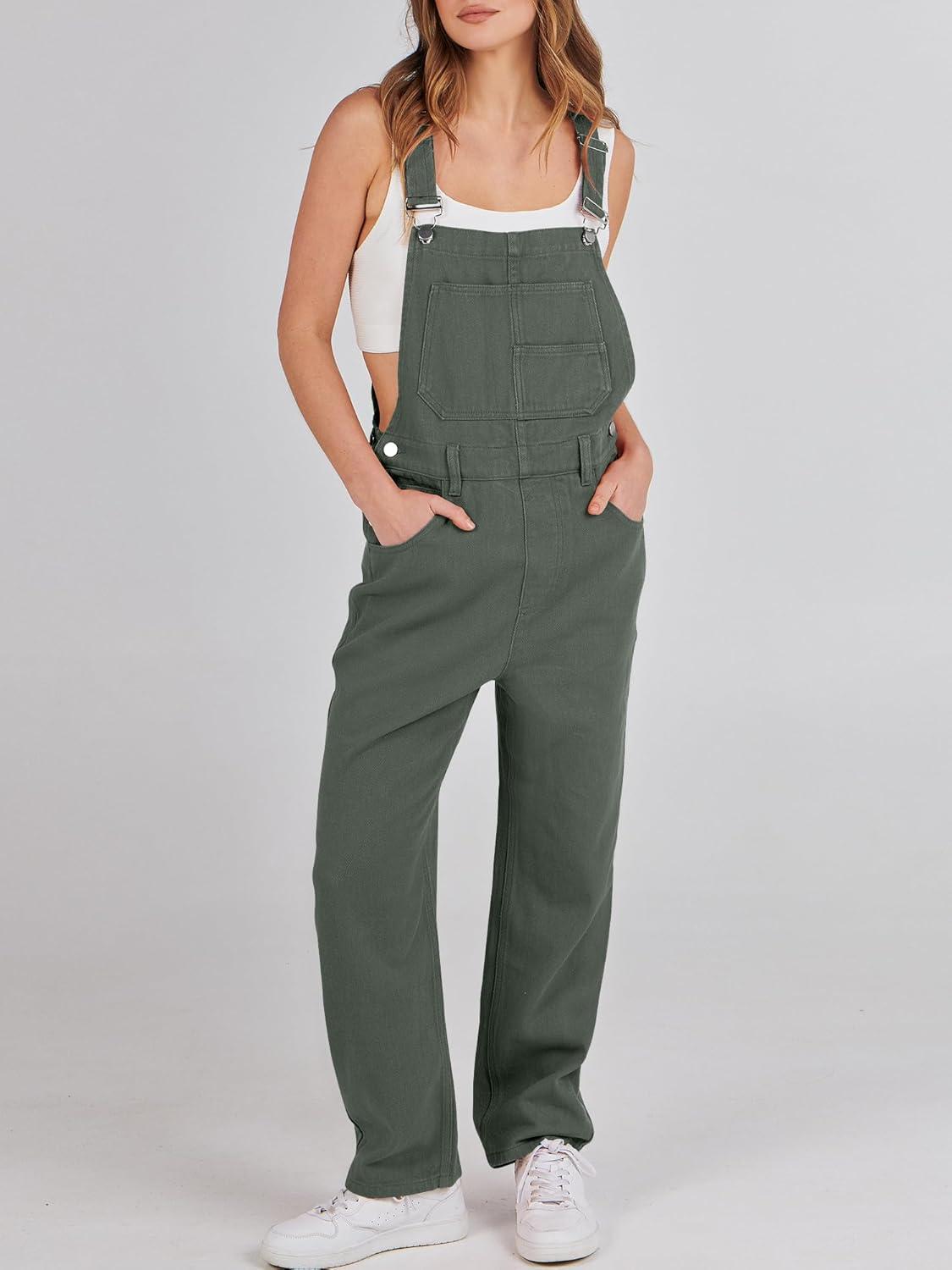 ANRABESS Overalls for Women Loose Fit Denim Overalls Adjustable Strap Jean Jumpsuit Bib Romper 2025 Fall Casual Work Outfits(Army Green)