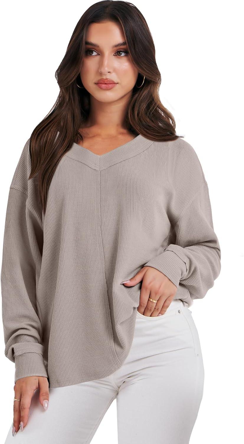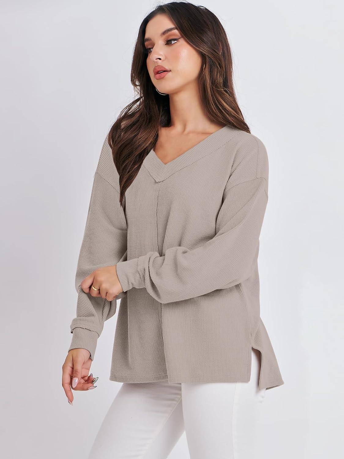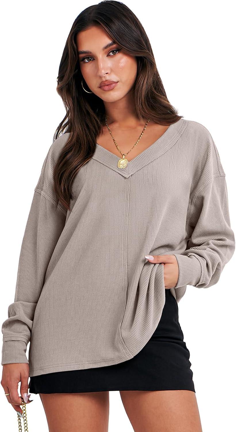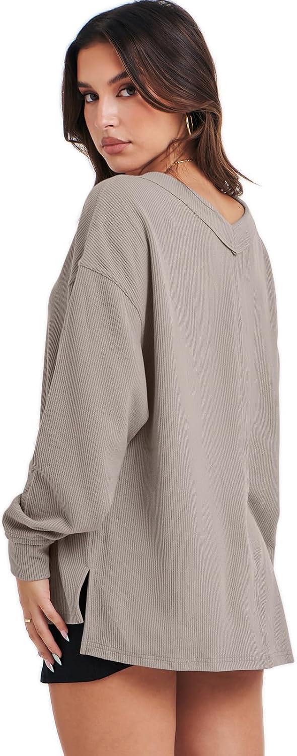 Be the first to review “ANRABESS Oversized Long Sleeve Shirts for Women Off the Shoulder Sweatshirt Loose V Neck Tunic Tops High Low Sweater 2025(Grey Apricot)”