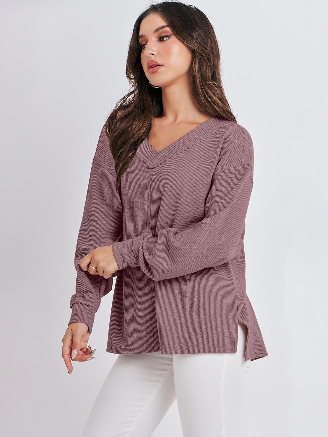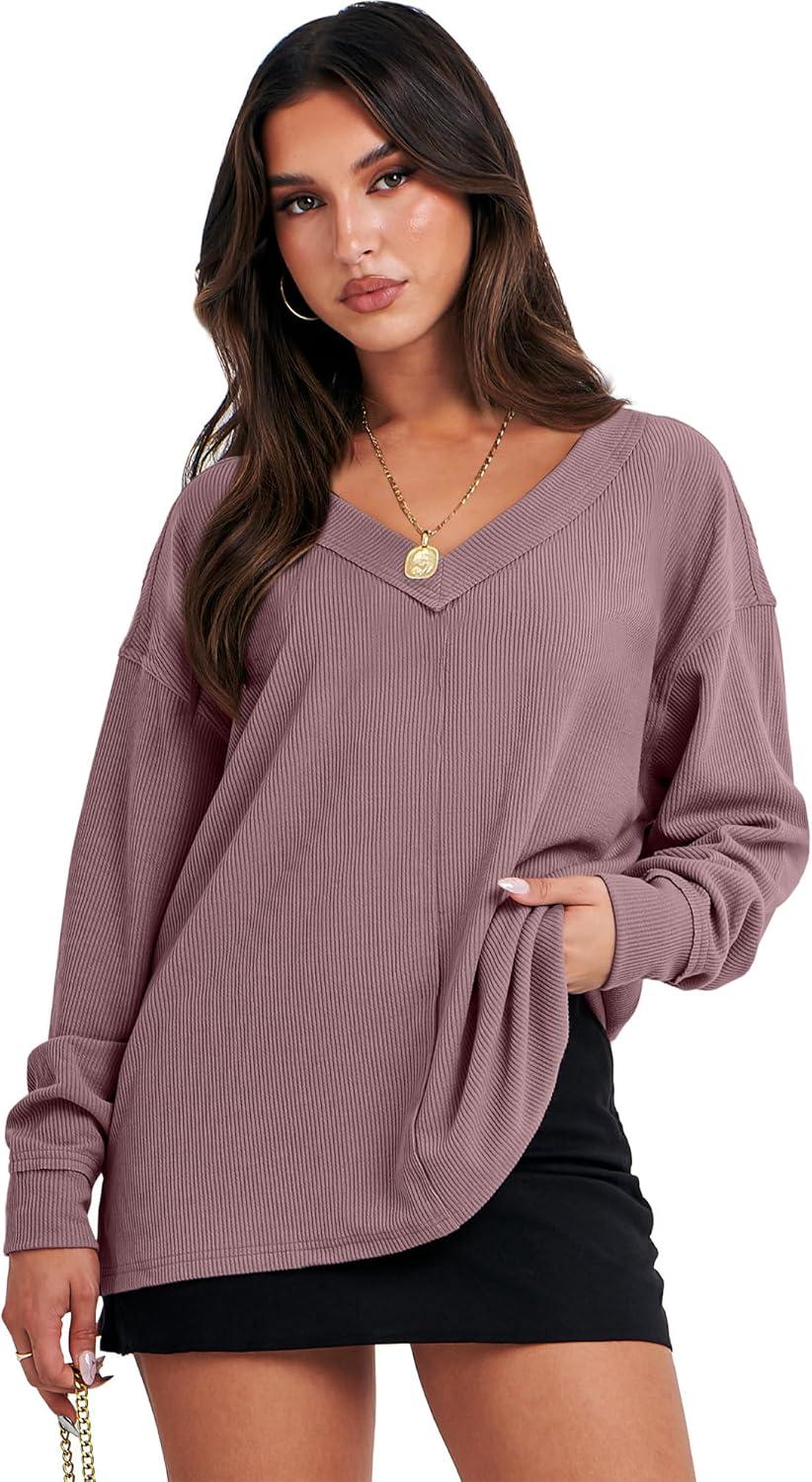 Be the first to review “ANRABESS Oversized Long Sleeve Shirts for Women Off the Shoulder Sweatshirt Loose V Neck Tunic Tops High Low Sweater 2025(Light Purple)”