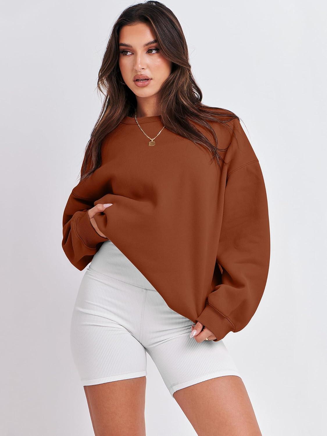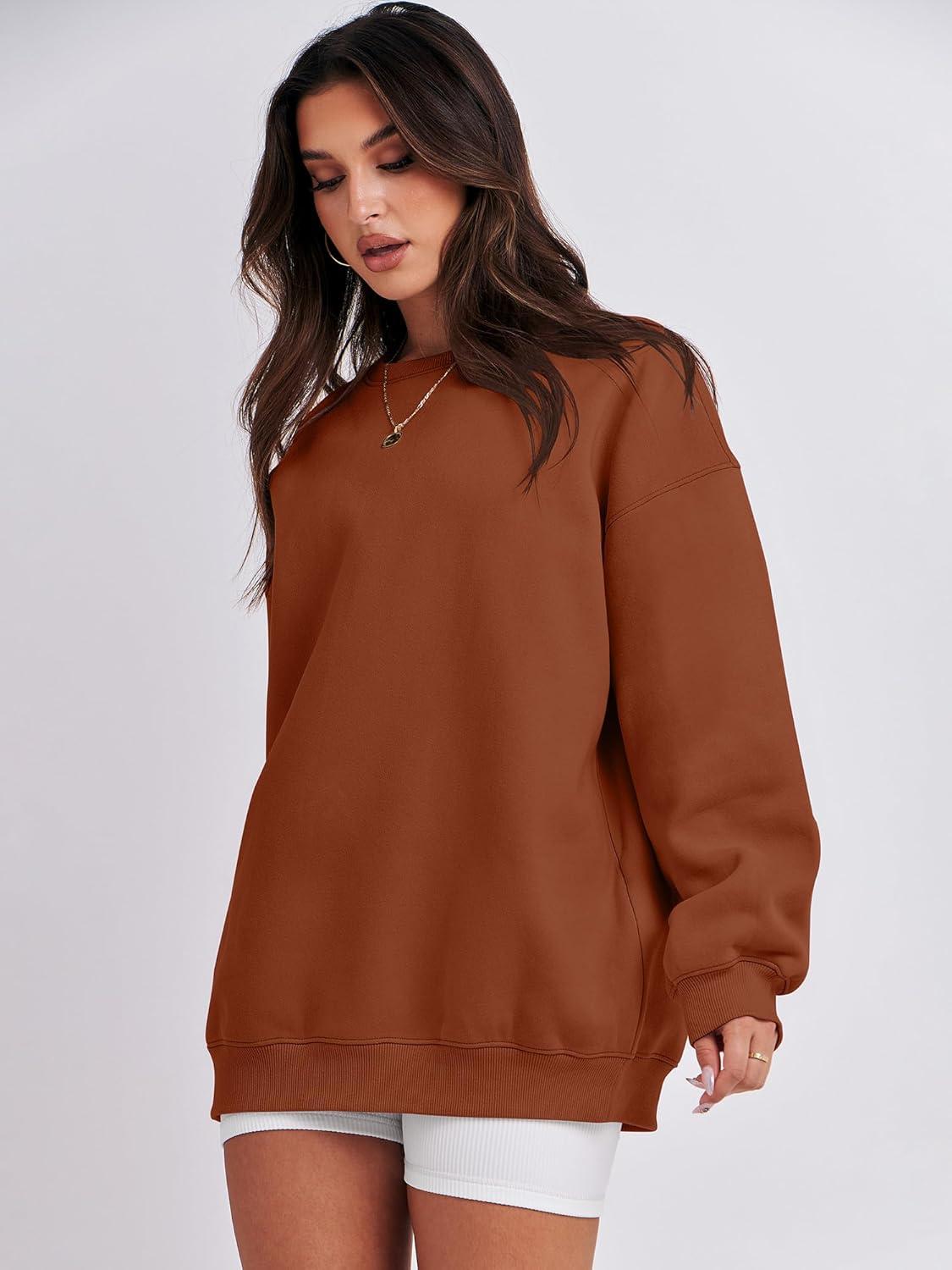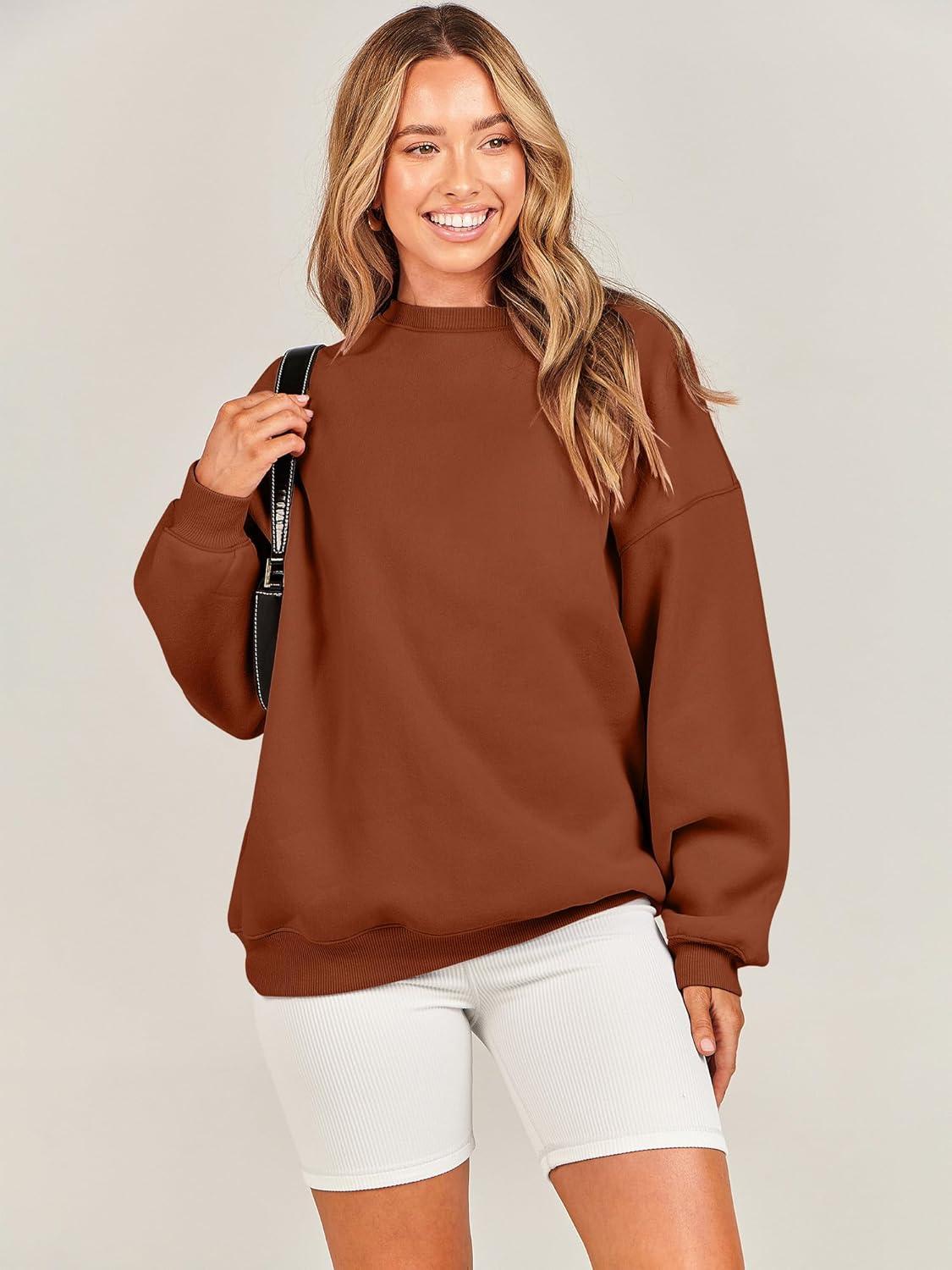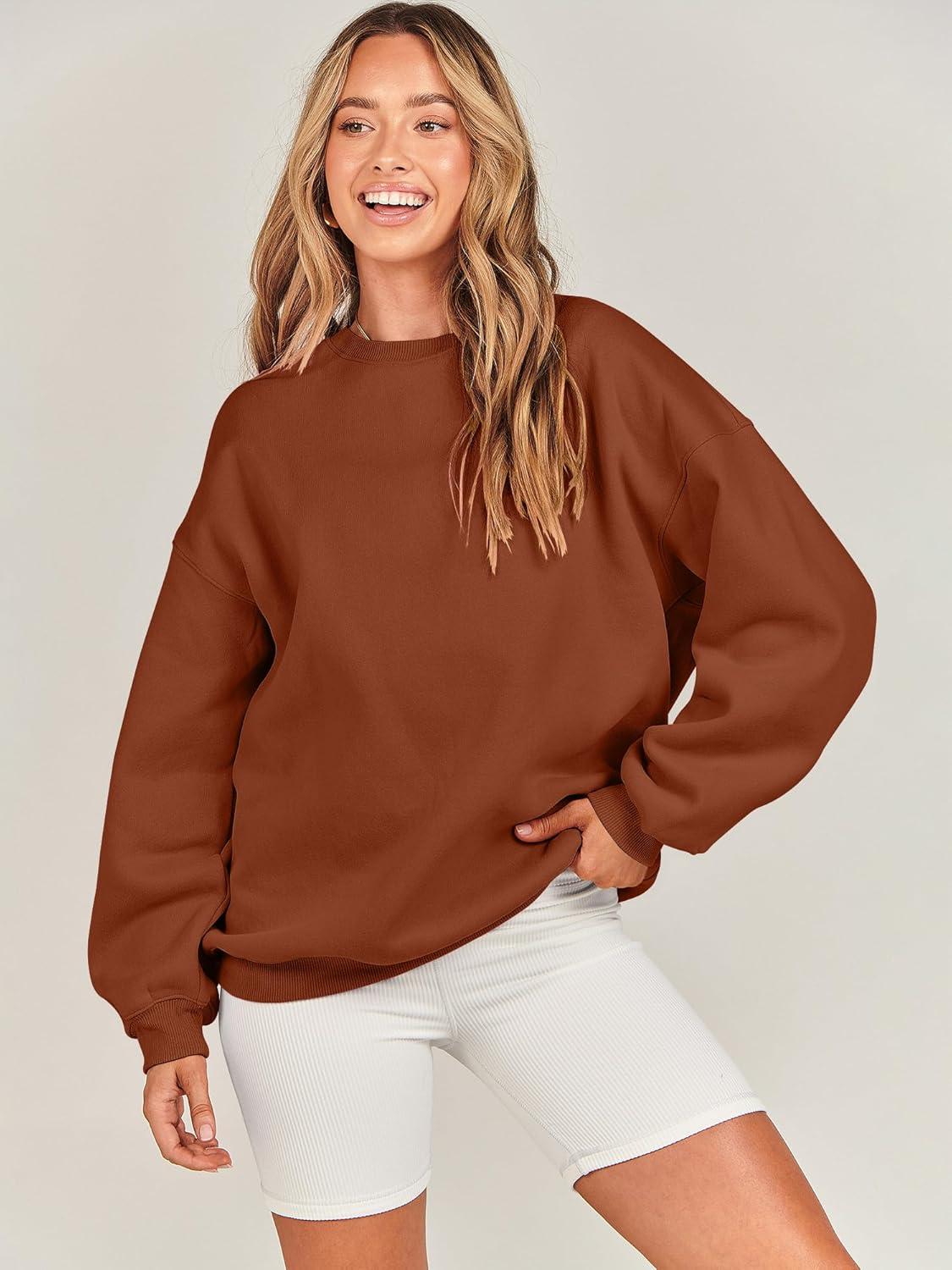 ANRABESS Oversized Sweatshirt for Women Crewneck Y2K Hoodies Fleece Casual Comfy Pullover Top Fall Outfits Clothes 2025(Caramel)