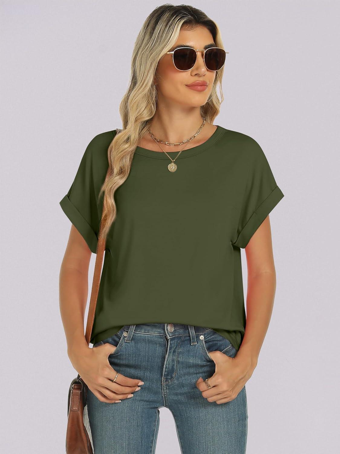 imageANRABESS Oversized Tshirts for Women Summer Tops Short Sleeve Casual Loose Basic Tee Shirt Cute Outfits 2025 Trendy ClothesArmy Green
