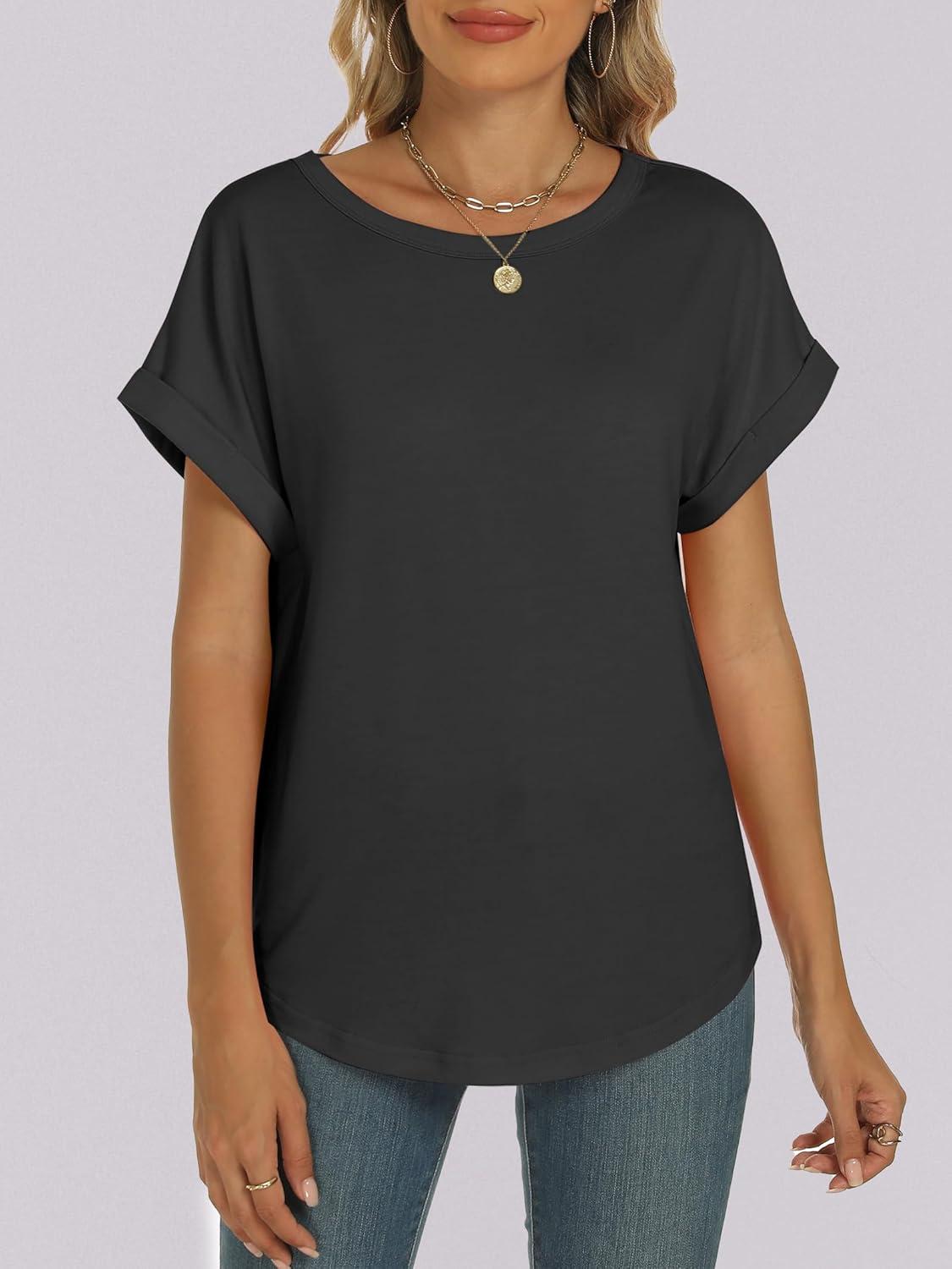 ANRABESS Oversized Tshirts for Women Summer Tops Short Sleeve Casual Loose Basic Tee Shirt Cute Outfits 2025 Trendy Clothes(Black)