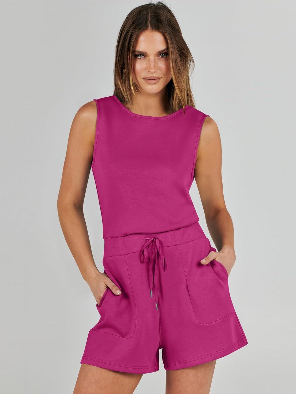 imageANRABESS Romper for Women Short Jumpsuit Summer Casual Dressy Sleeveless Outfits Beach Vacation 2025 Trendy One Piece ClothesHot Pink