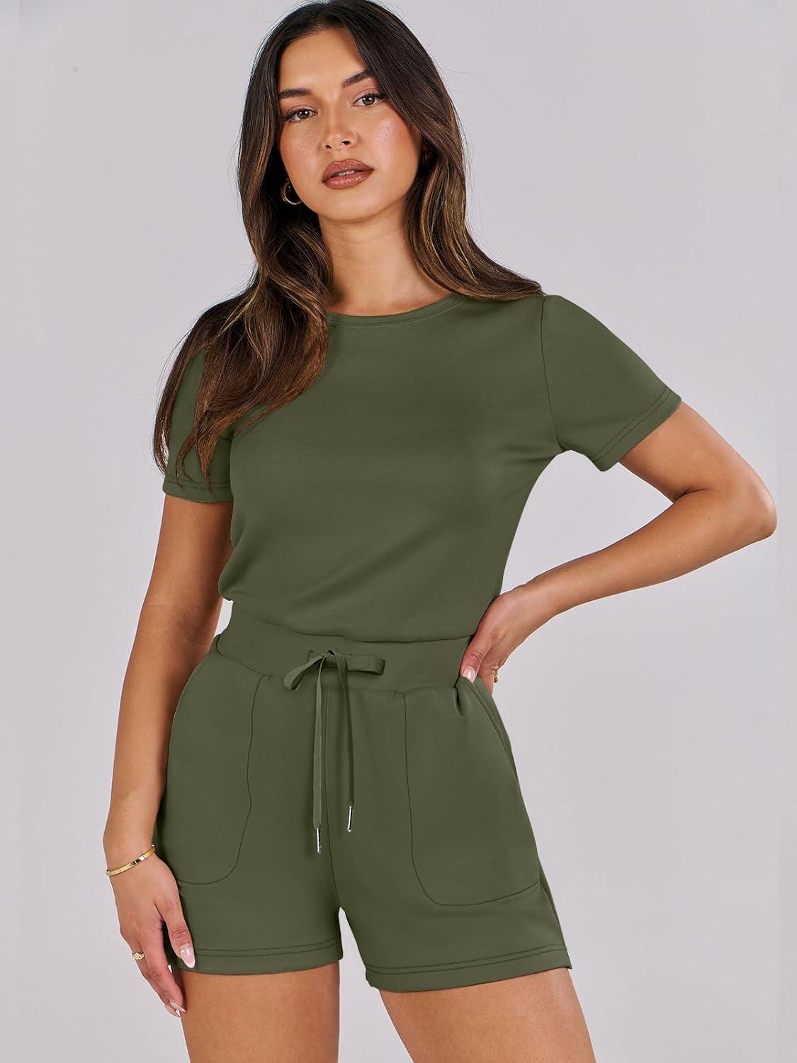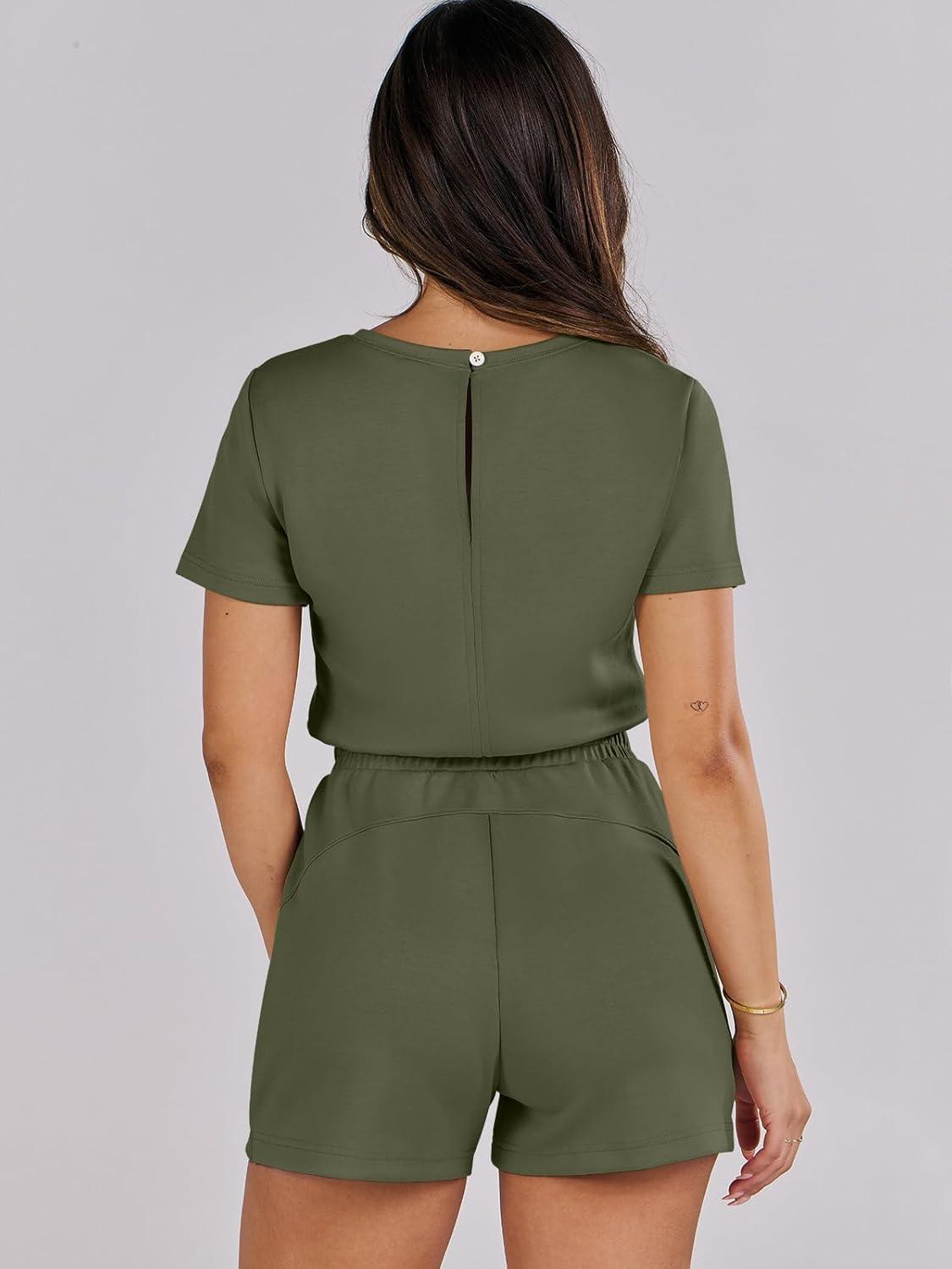 imageANRABESS Romper for Women Short Sleeve Summer Tshirt One Piece Jumpsuit Beach Vacation Travel Outfits 2025 Dressy ClothesOlive