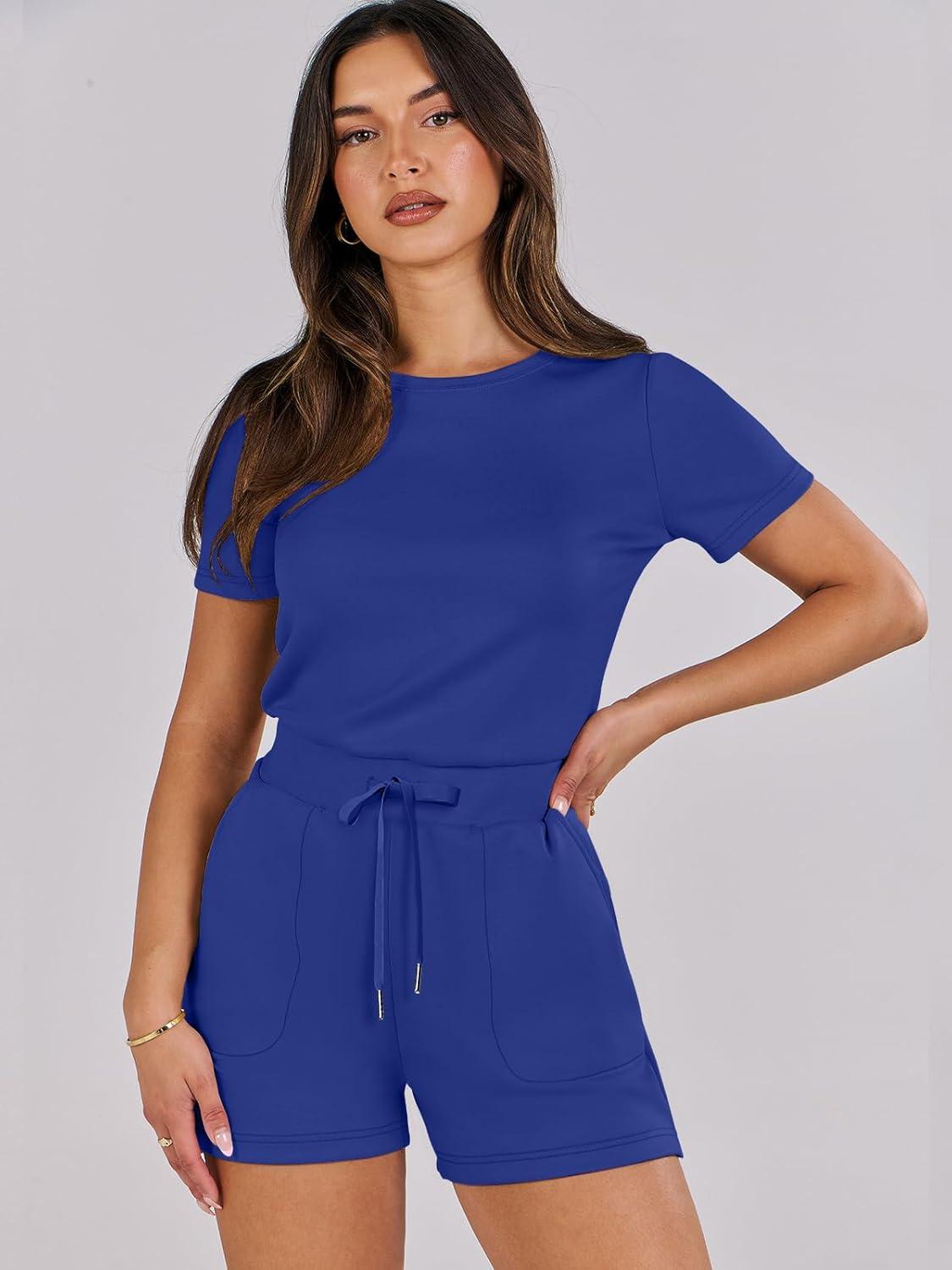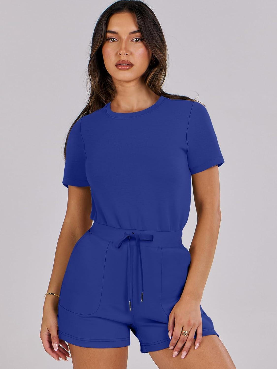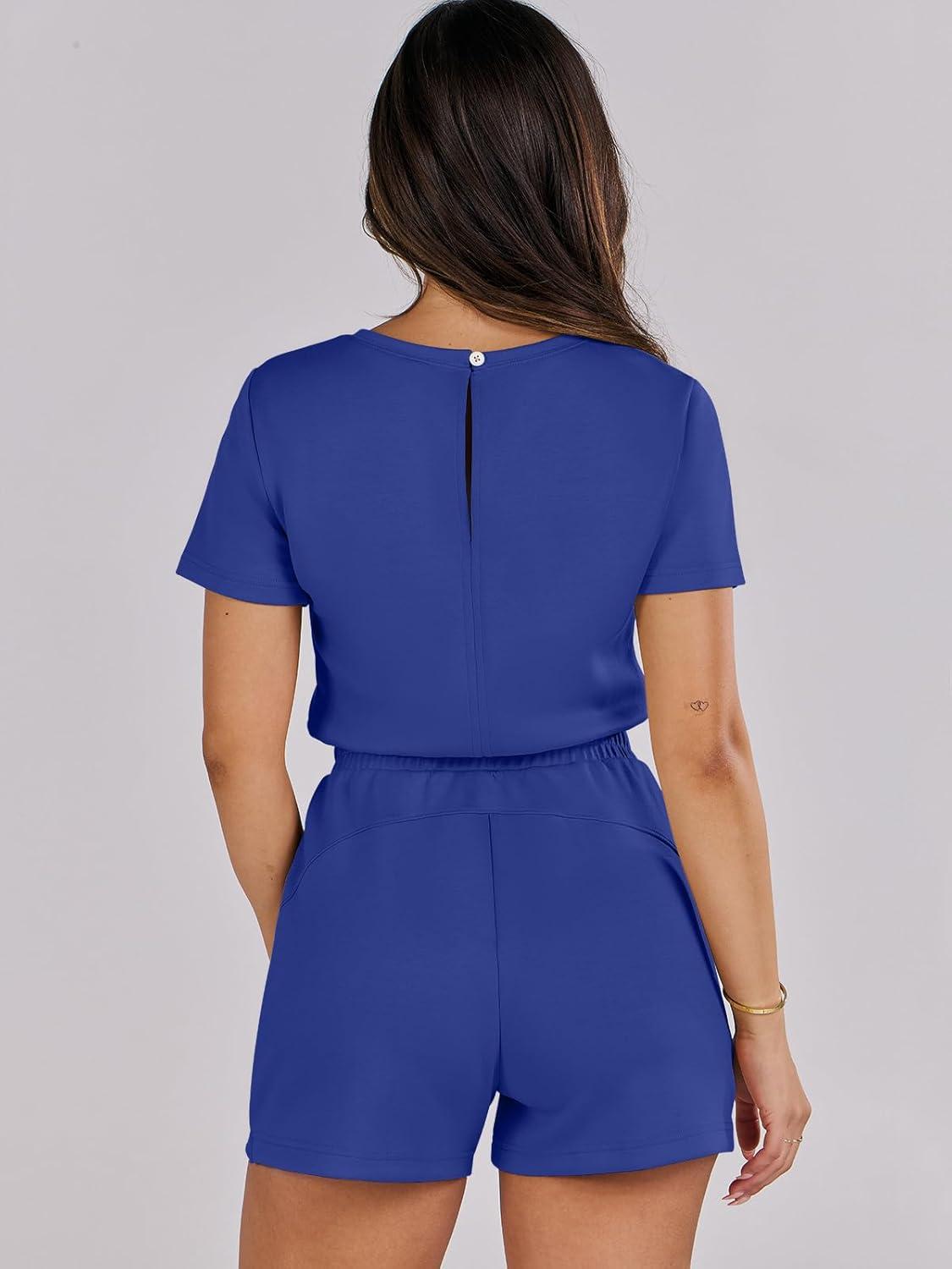 imageANRABESS Romper for Women Short Sleeve Summer Tshirt One Piece Jumpsuit Beach Vacation Travel Outfits 2025 Dressy ClothesRoyal Blue