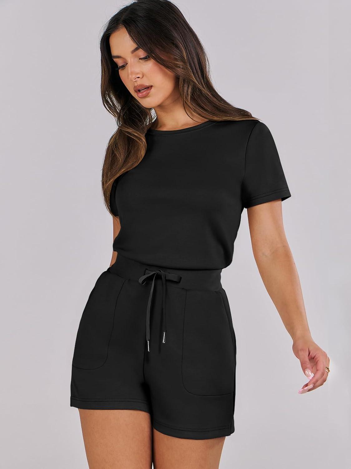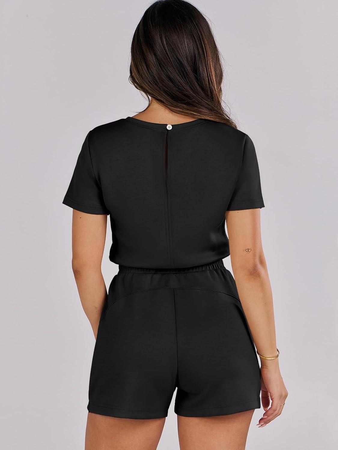 ANRABESS Romper for Women Short Sleeve Summer Tshirt One Piece Jumpsuit Beach Vacation Travel Outfits 2026 Dressy Clothes(Black)