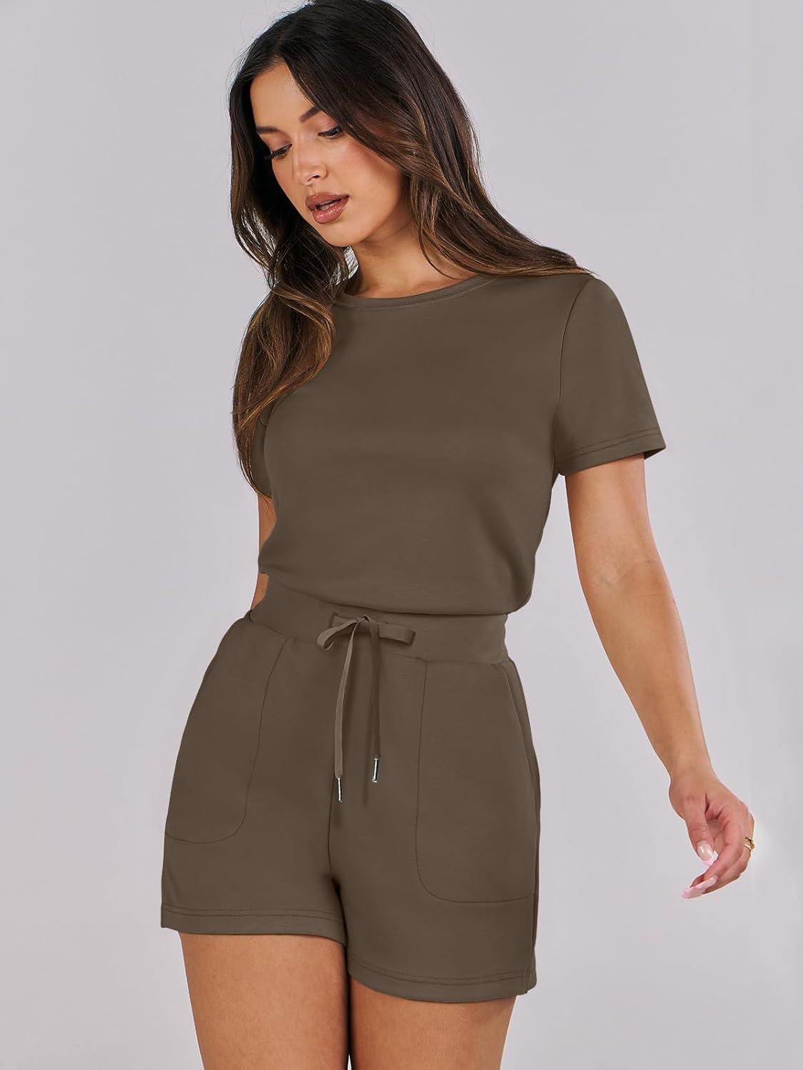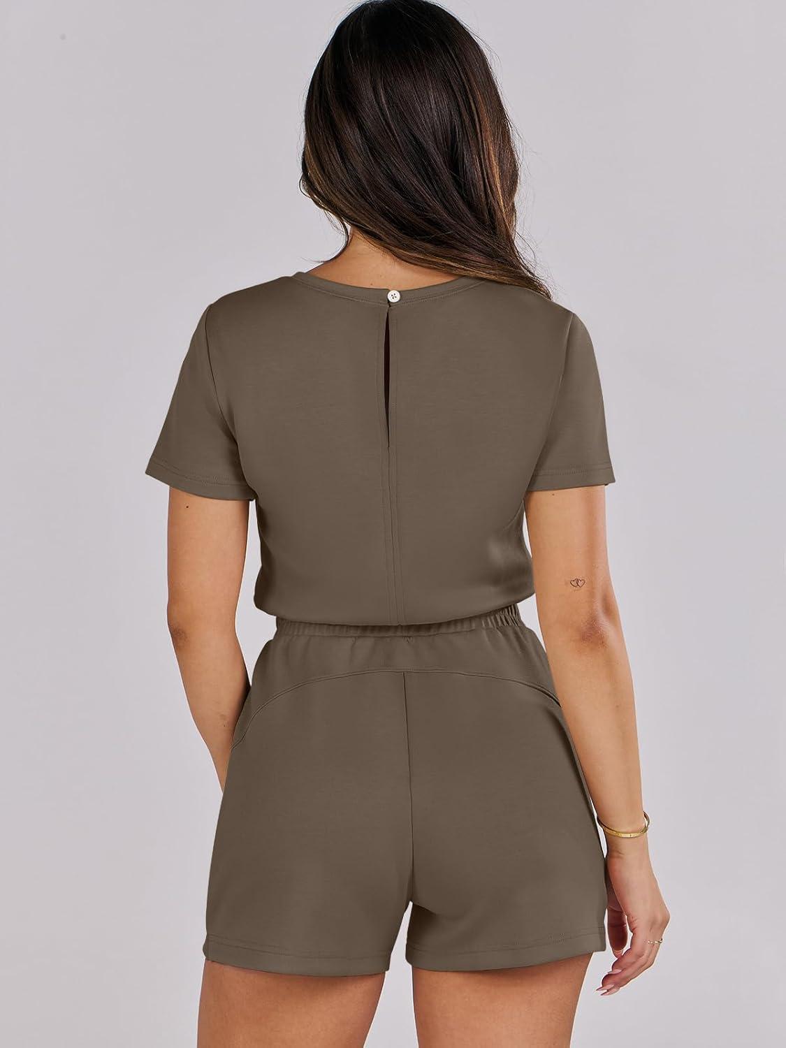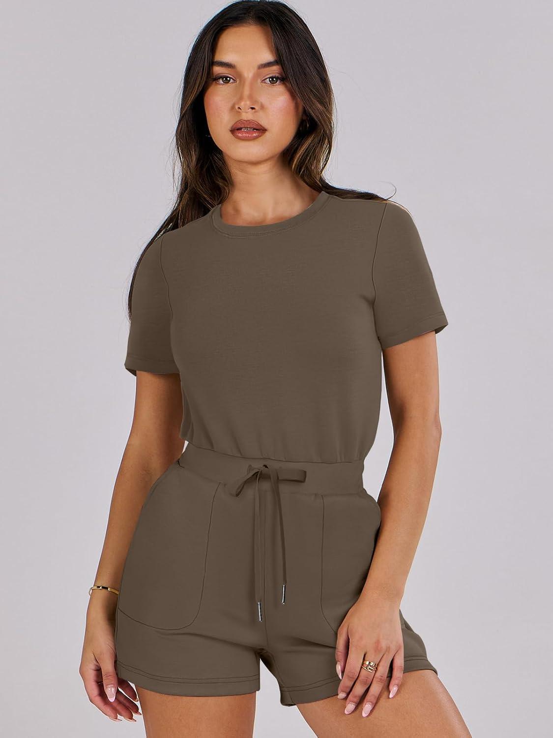ANRABESS Romper for Women Short Sleeve Summer Tshirt One Piece Jumpsuit Beach Vacation Travel Outfits 2026 Dressy Clothes(Brown)