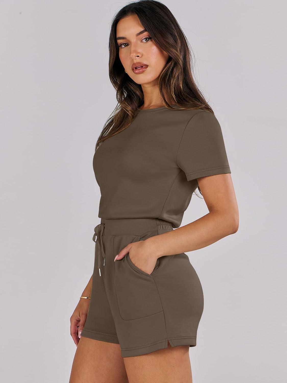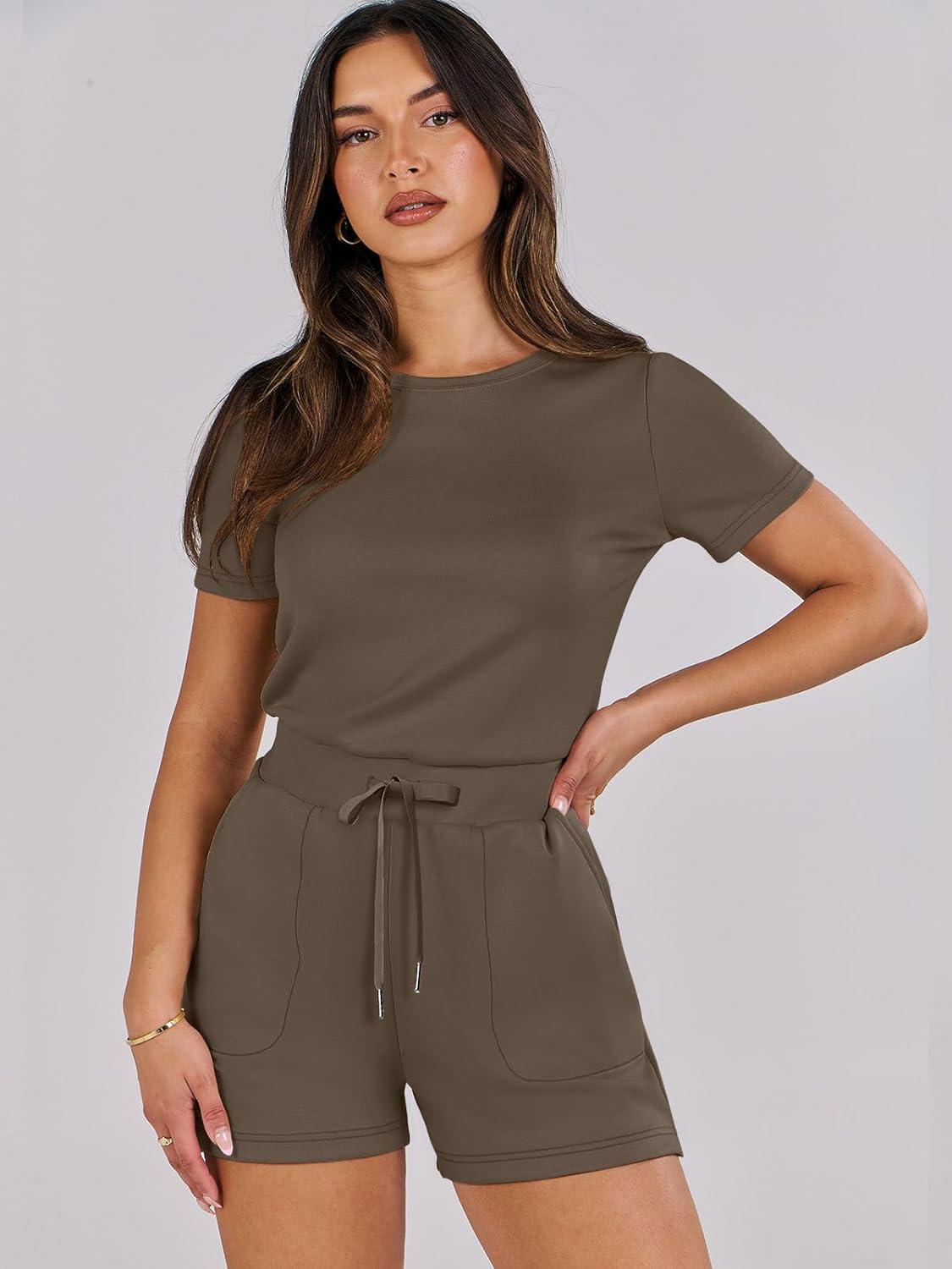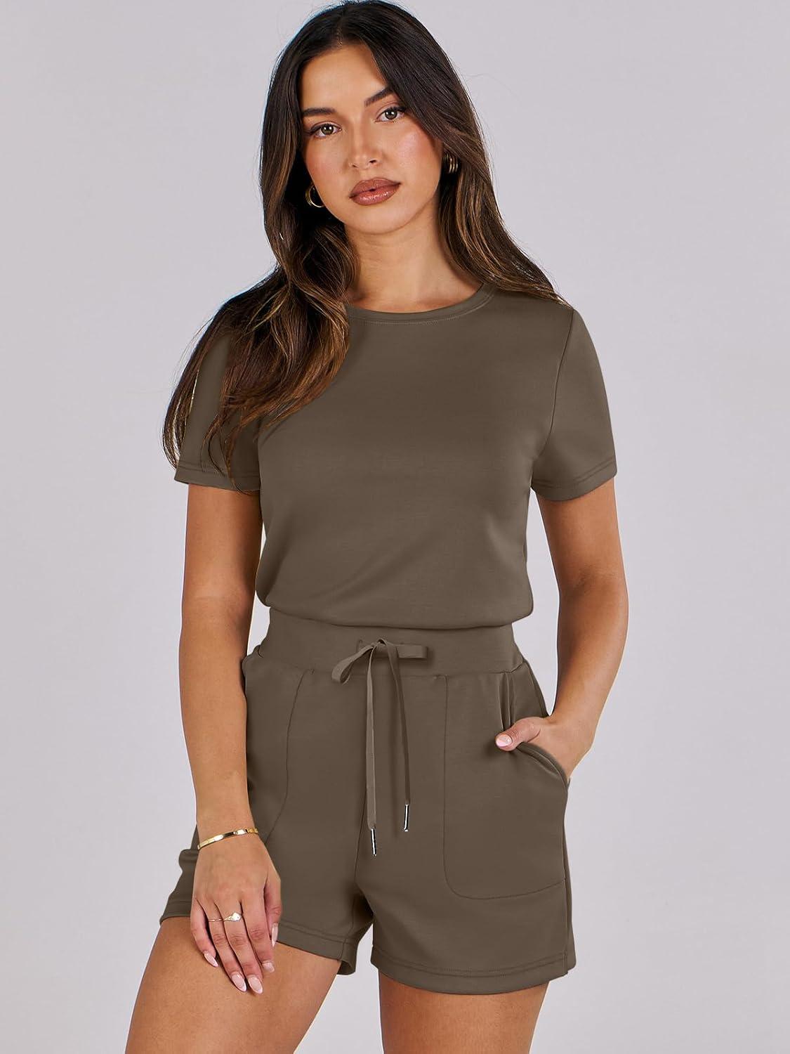 ANRABESS Romper for Women Short Sleeve Summer Tshirt One Piece Jumpsuit Beach Vacation Travel Outfits 2026 Dressy Clothes(Brown)