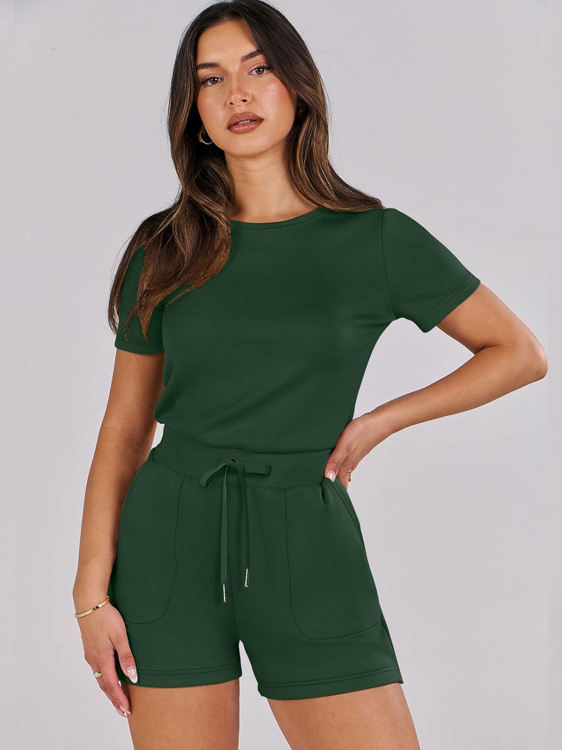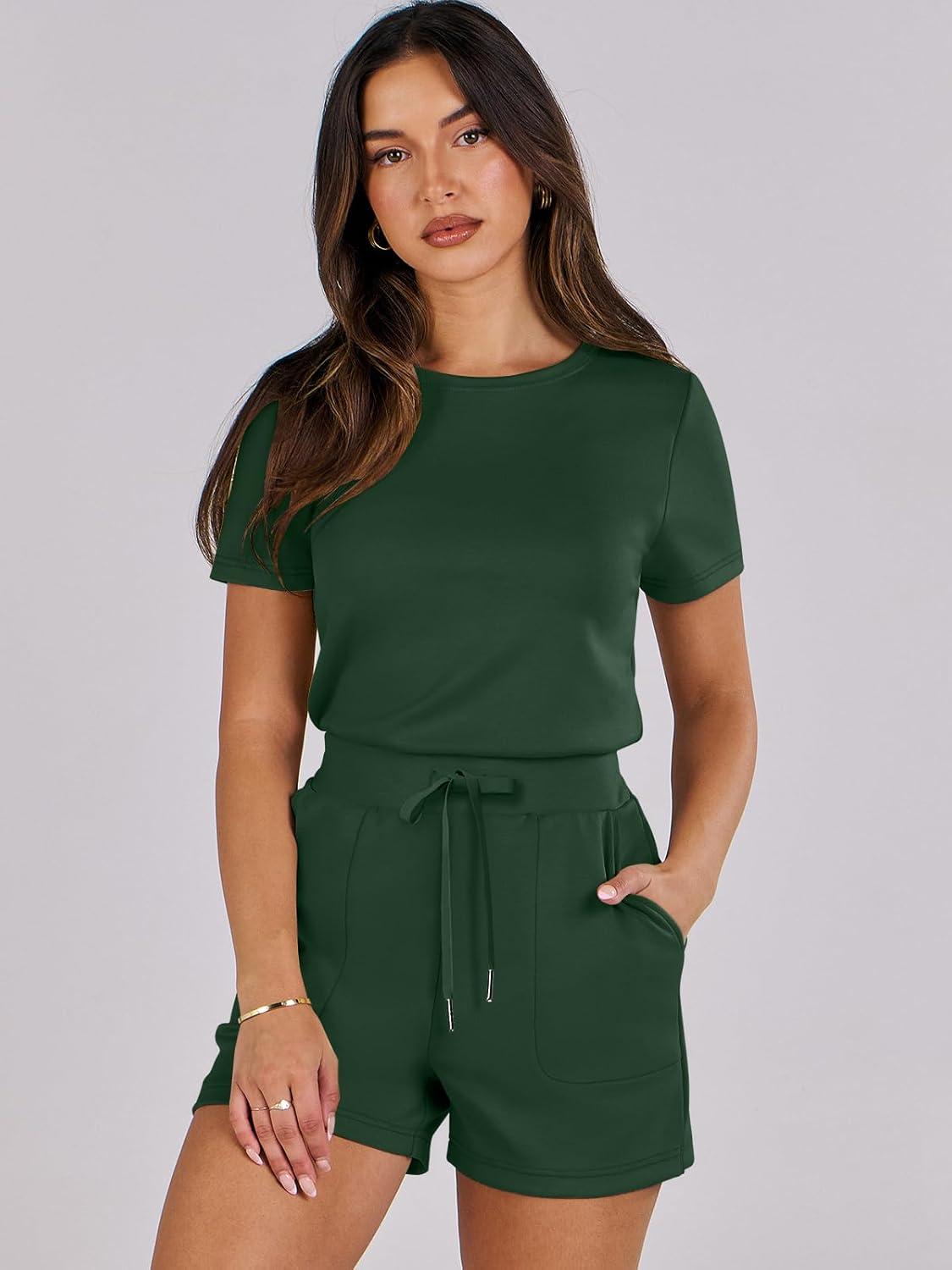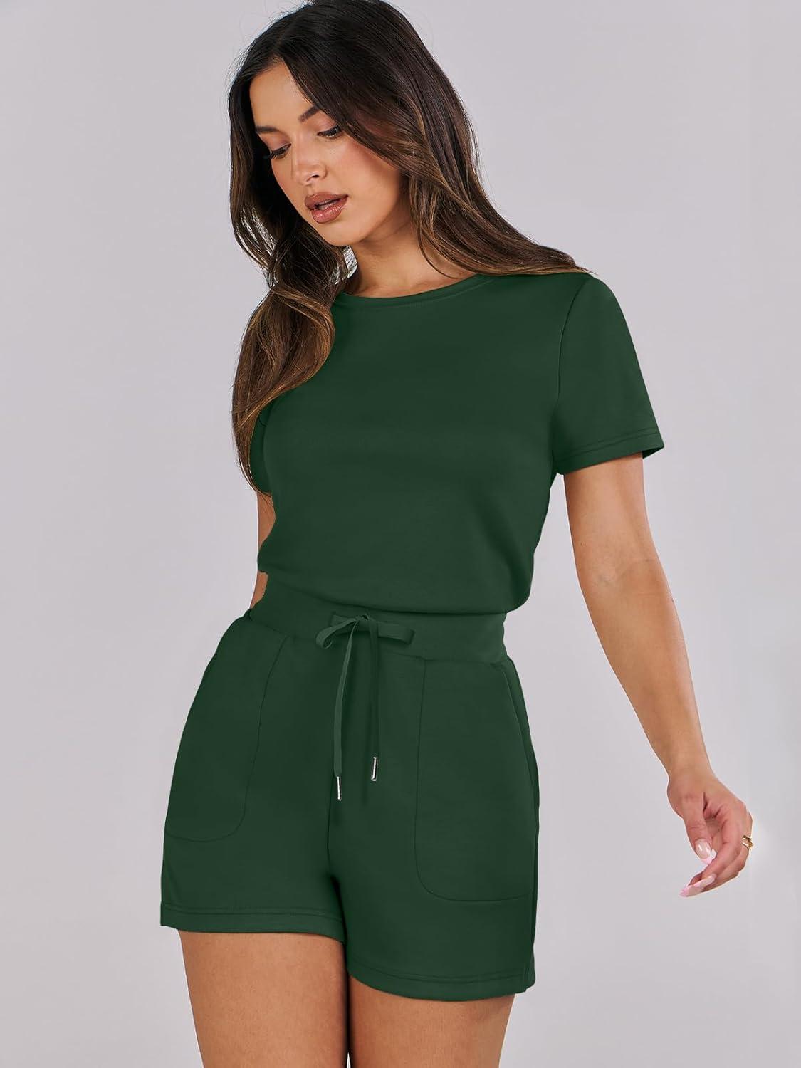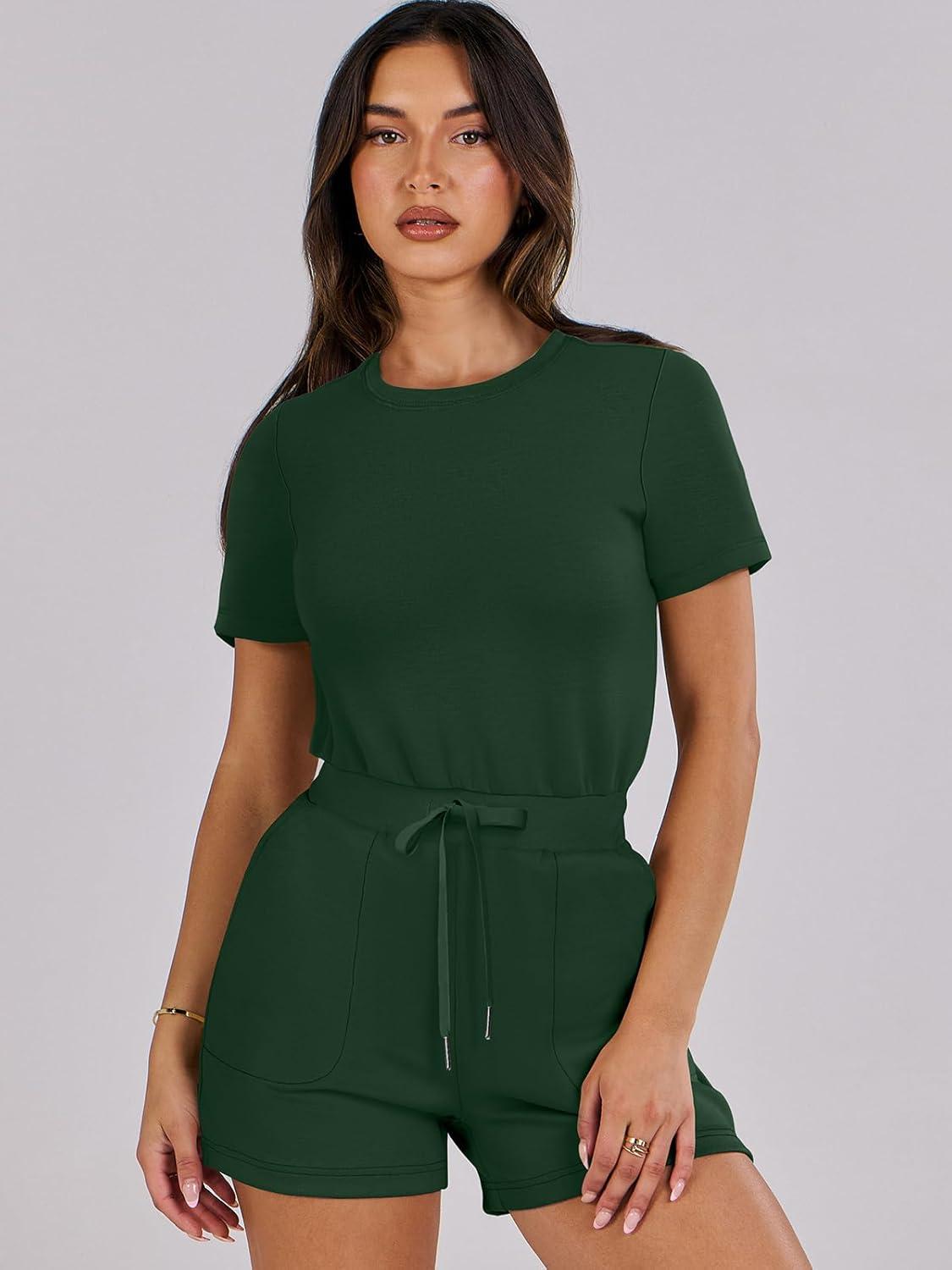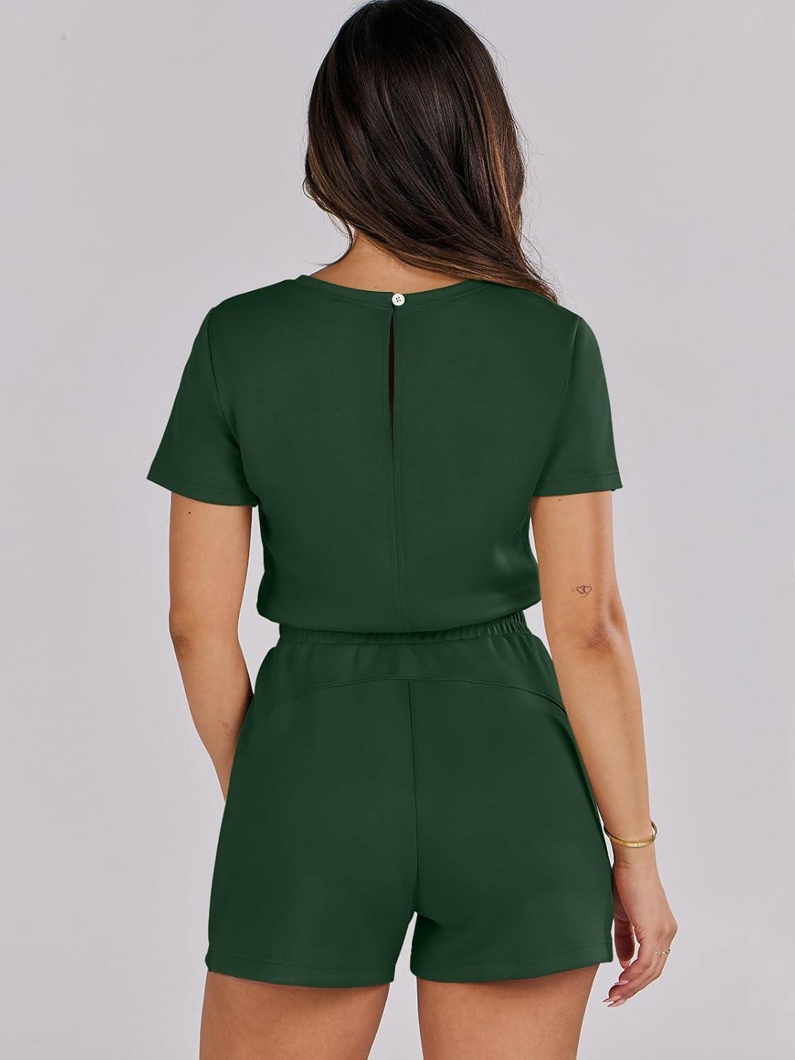 ANRABESS Romper for Women Short Sleeve Summer Tshirt One Piece Jumpsuit Beach Vacation Travel Outfits 2026 Dressy Clothes(Deep Green)
