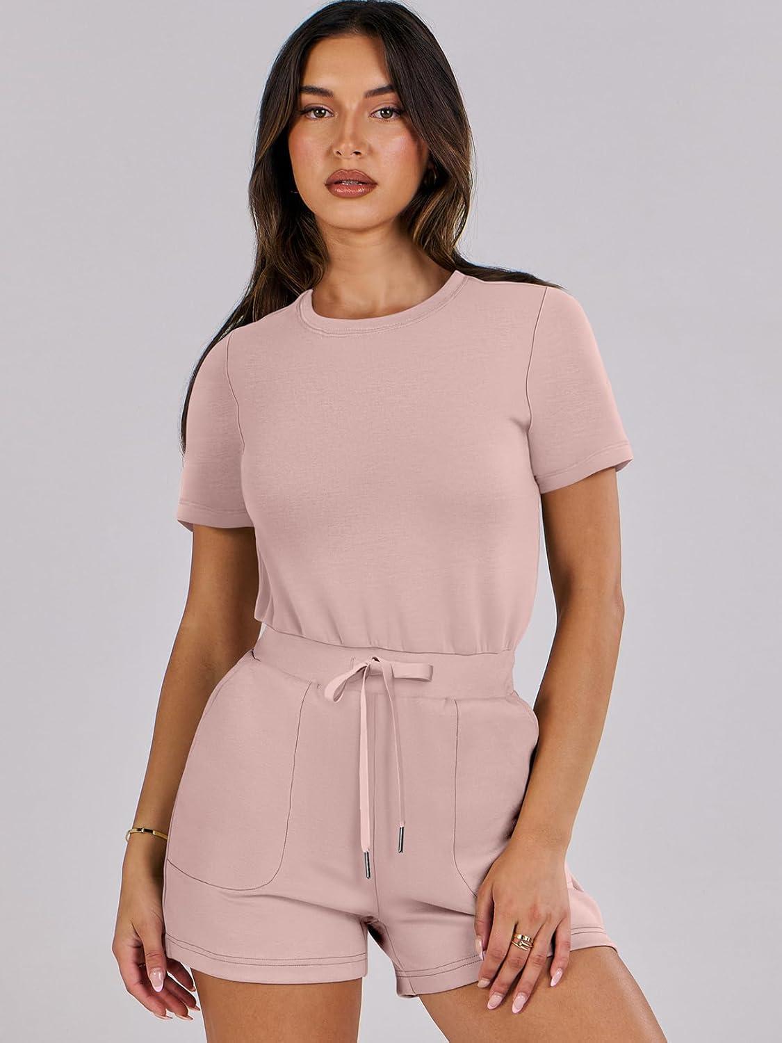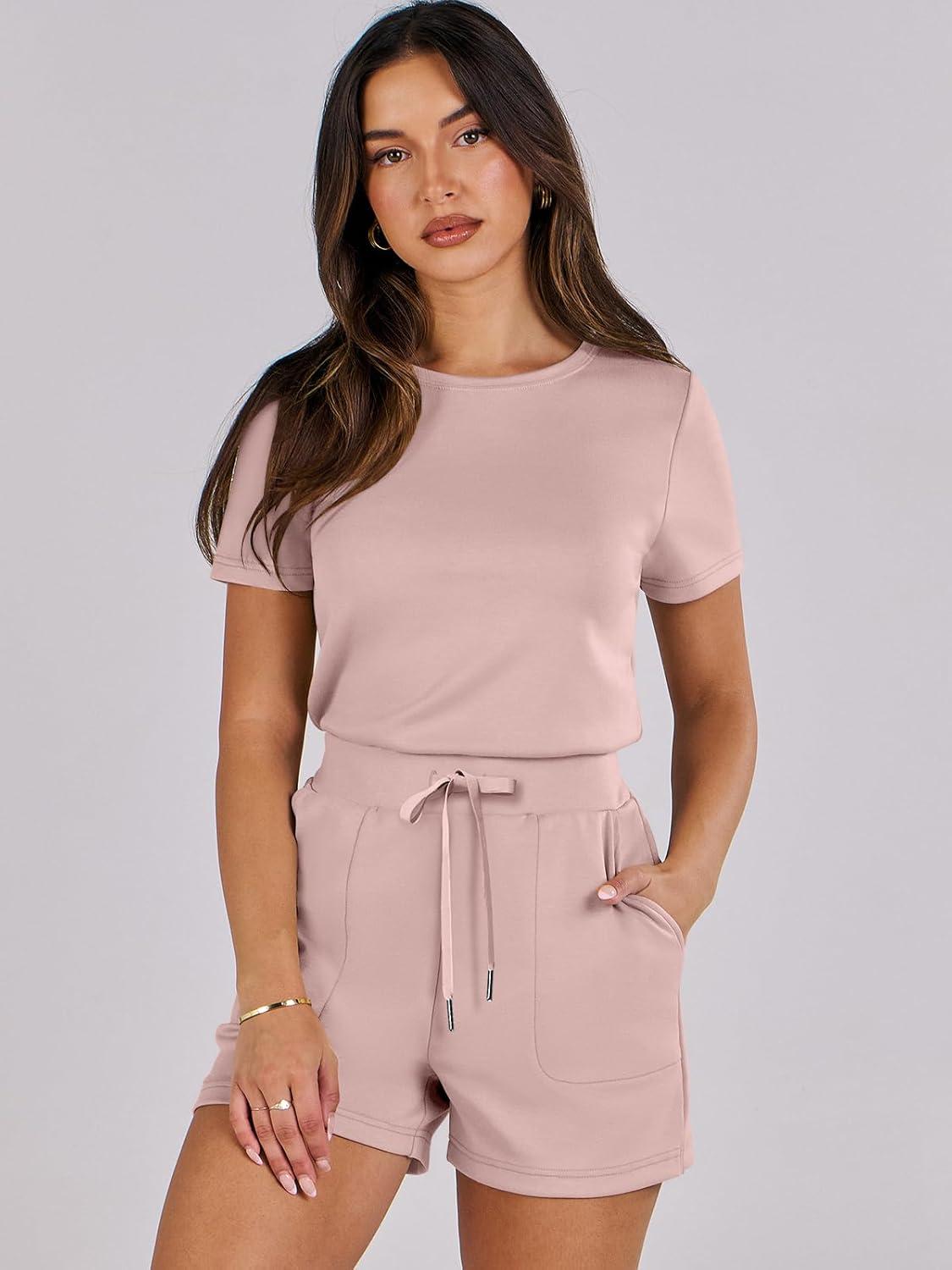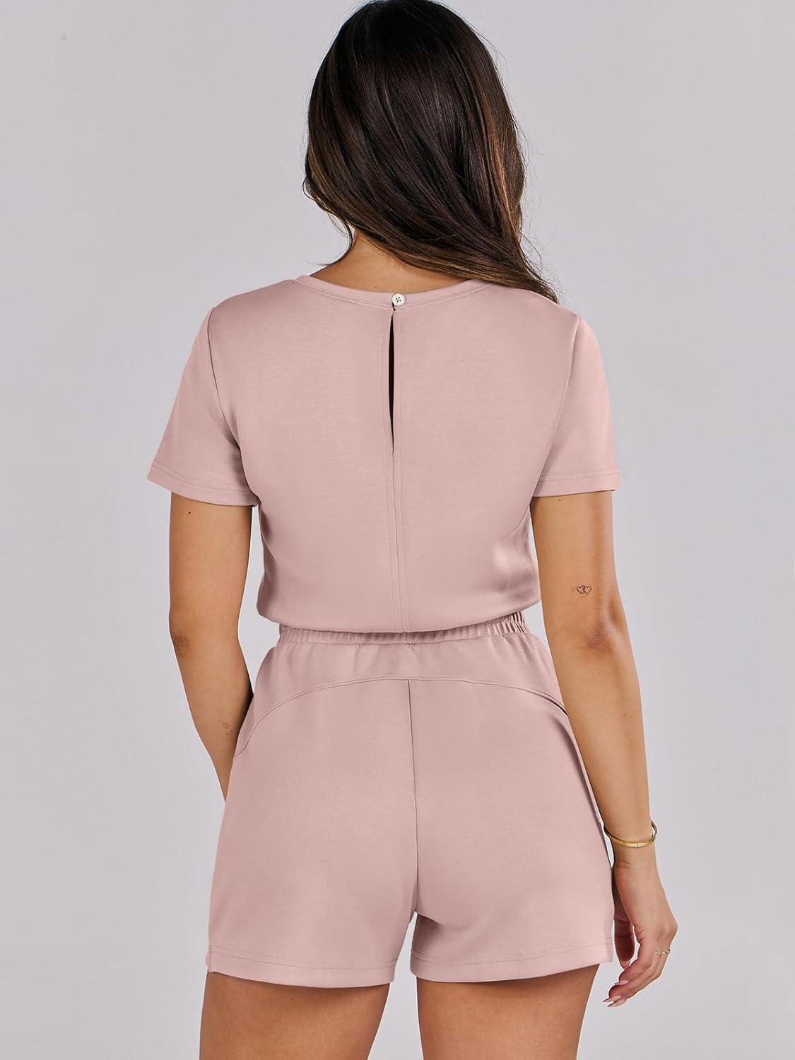 ANRABESS Romper for Women Short Sleeve Summer Tshirt One Piece Jumpsuit Beach Vacation Travel Outfits 2026 Dressy Clothes(Pink)