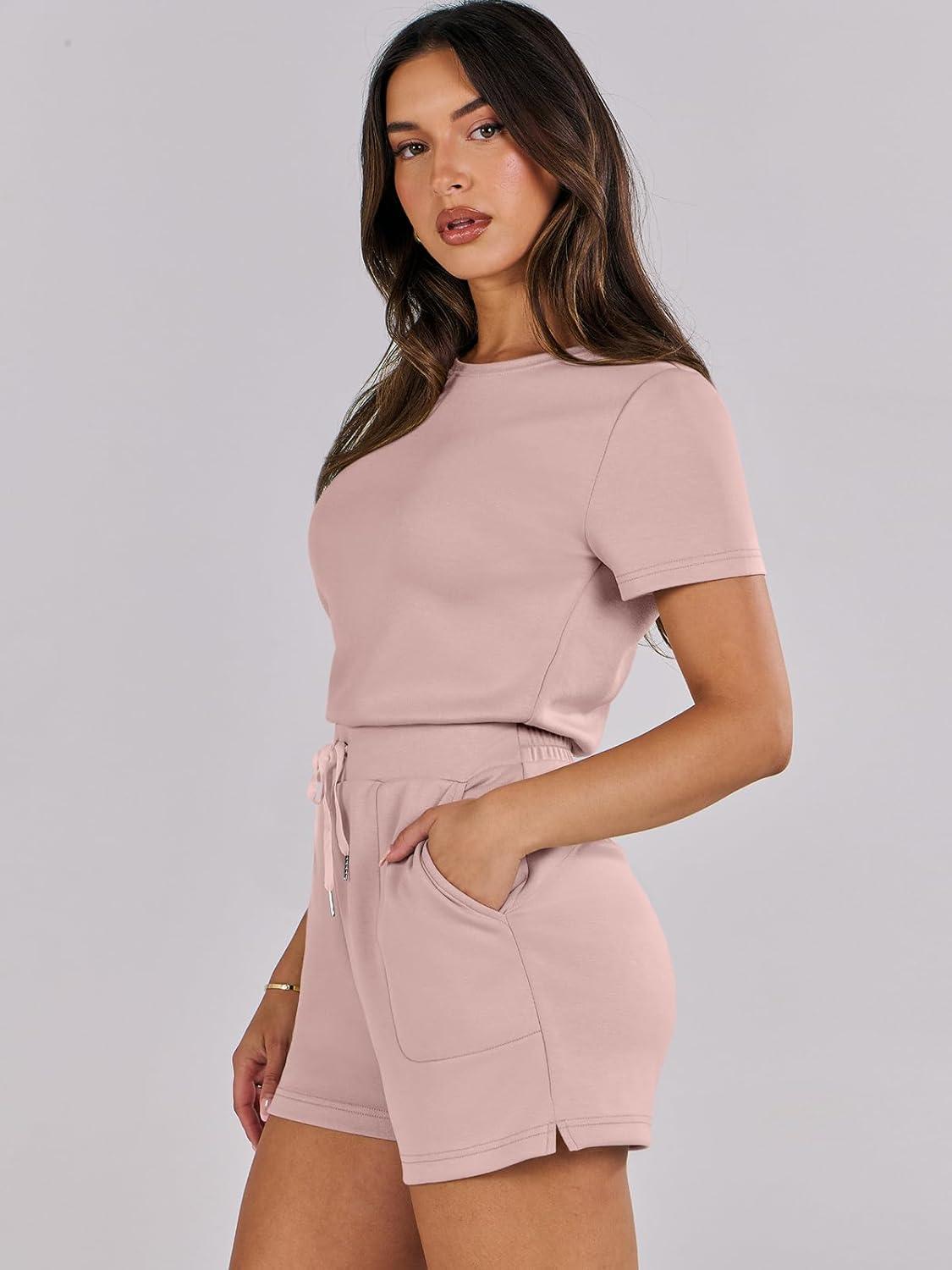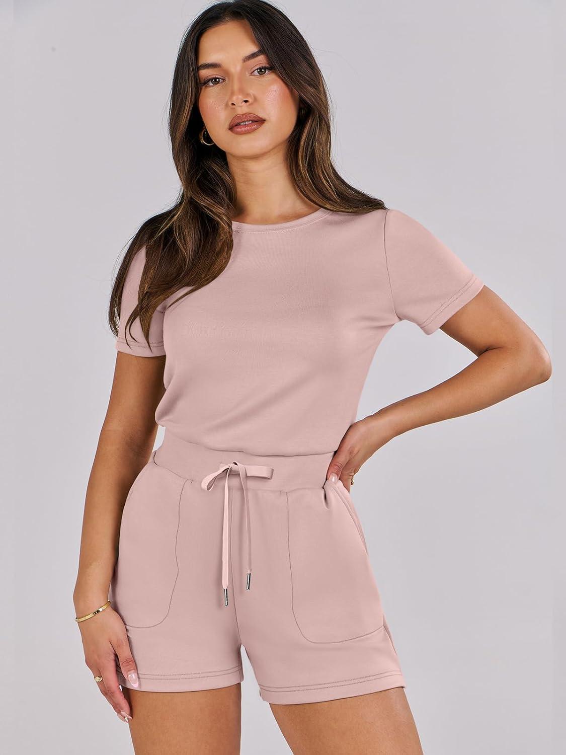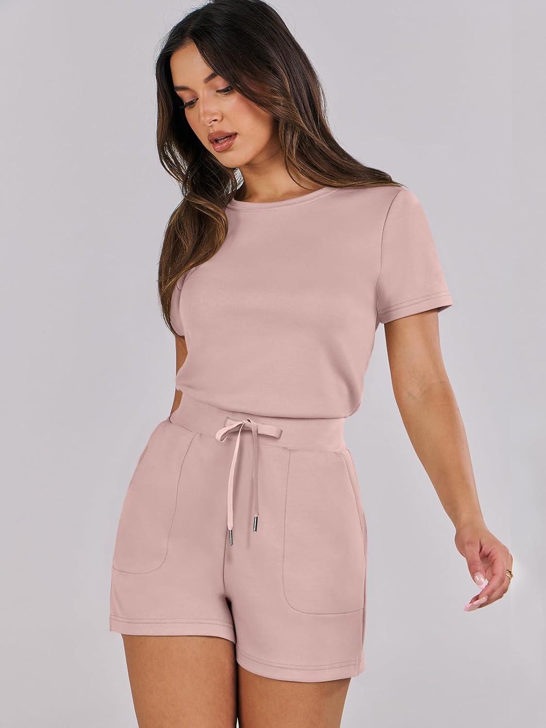 ANRABESS Romper for Women Short Sleeve Summer Tshirt One Piece Jumpsuit Beach Vacation Travel Outfits 2026 Dressy Clothes(Pink)
