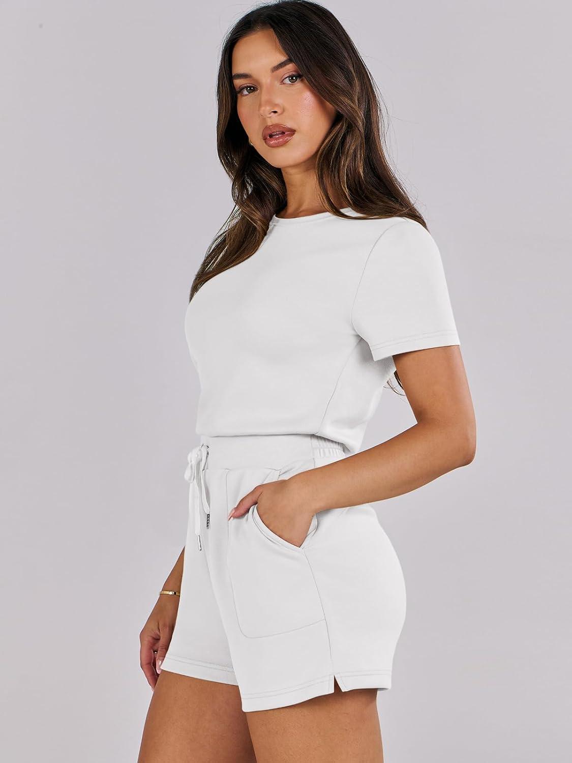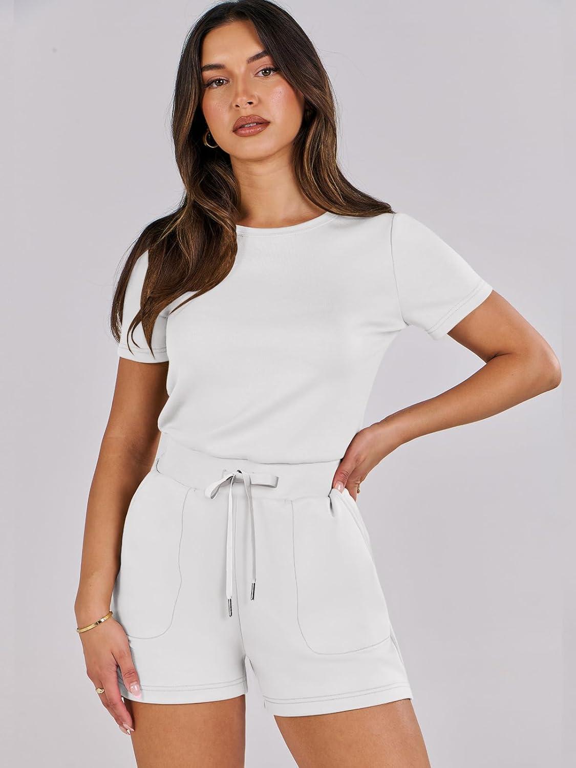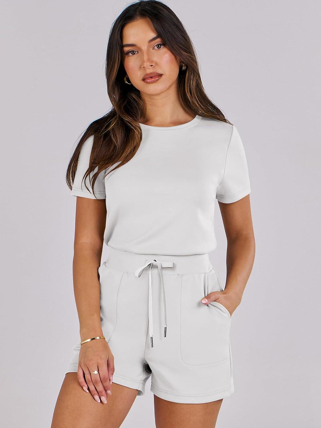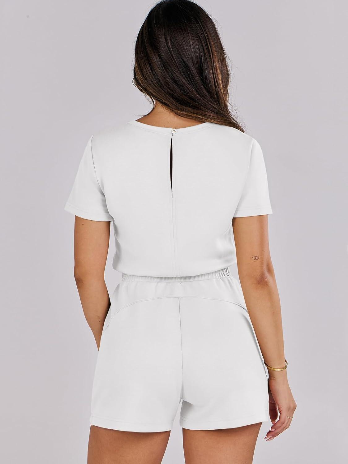 ANRABESS Romper for Women Short Sleeve Summer Tshirt One Piece Jumpsuit Beach Vacation Travel Outfits 2026 Dressy Clothes(White)