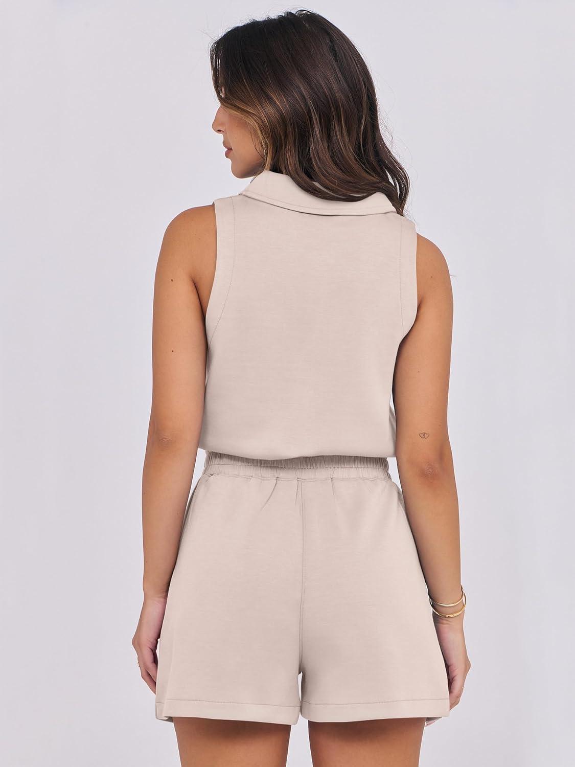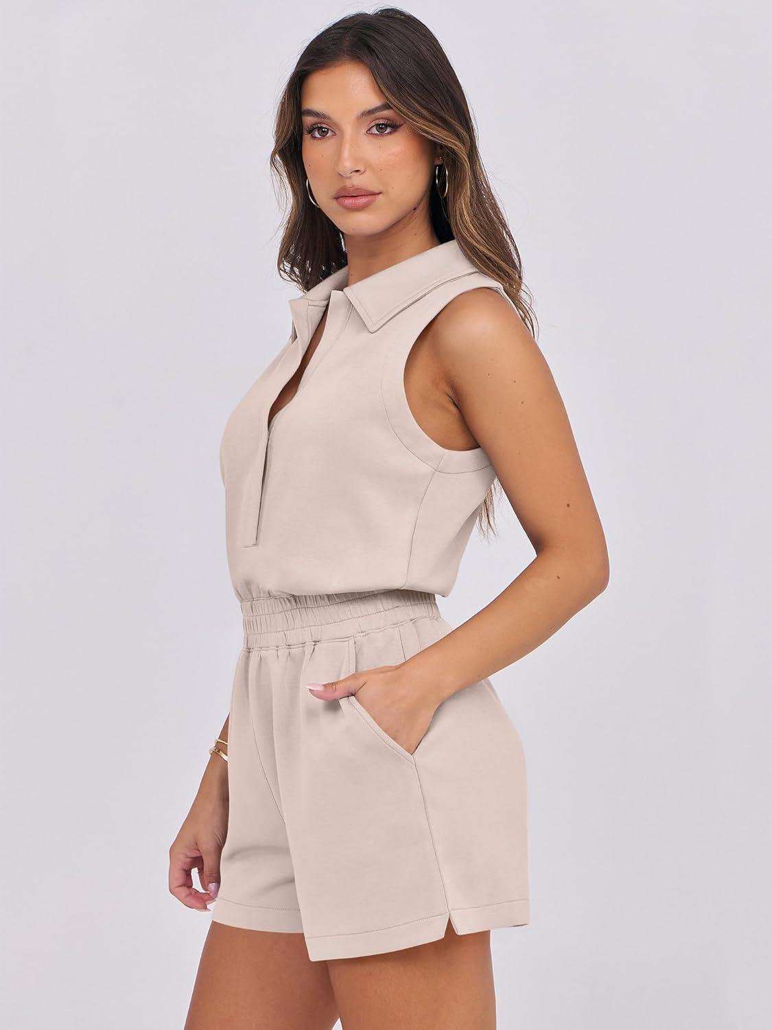 ANRABESS Romper for Womens 2025 Summer Dressy Casual Sleeveless V Neck One Piece Short Jumpsuit Lounge Travel Outfits Clothes(Beige)