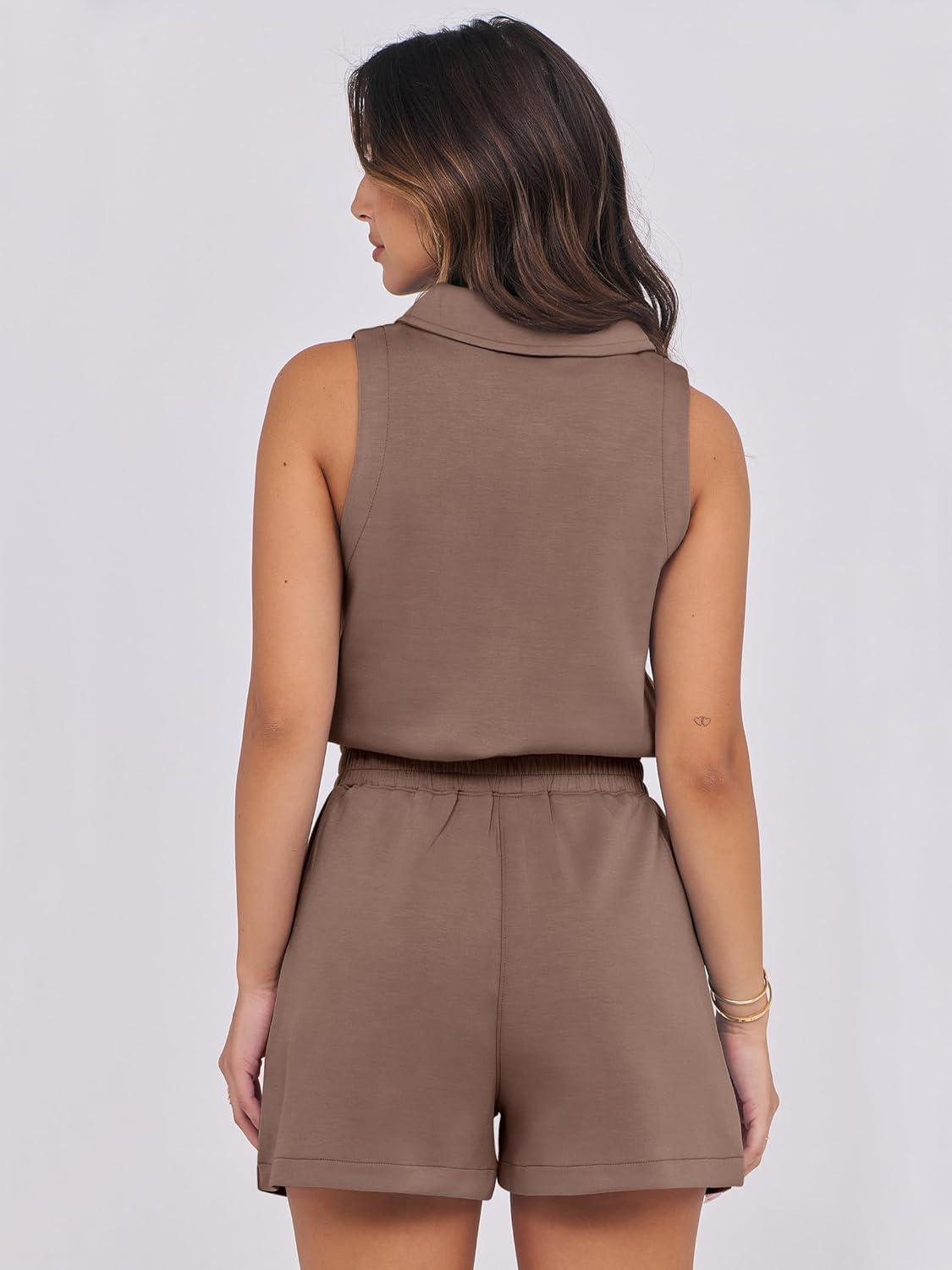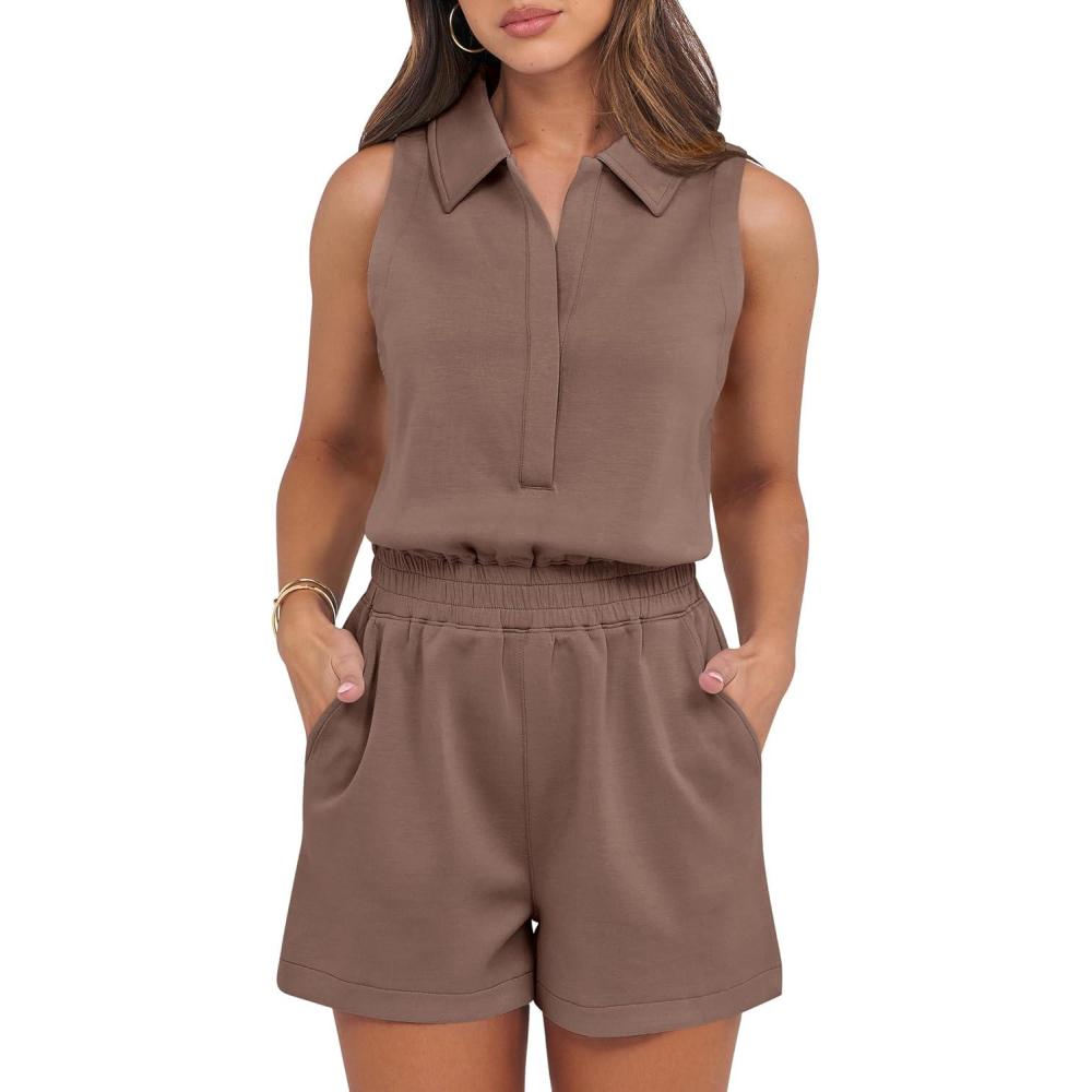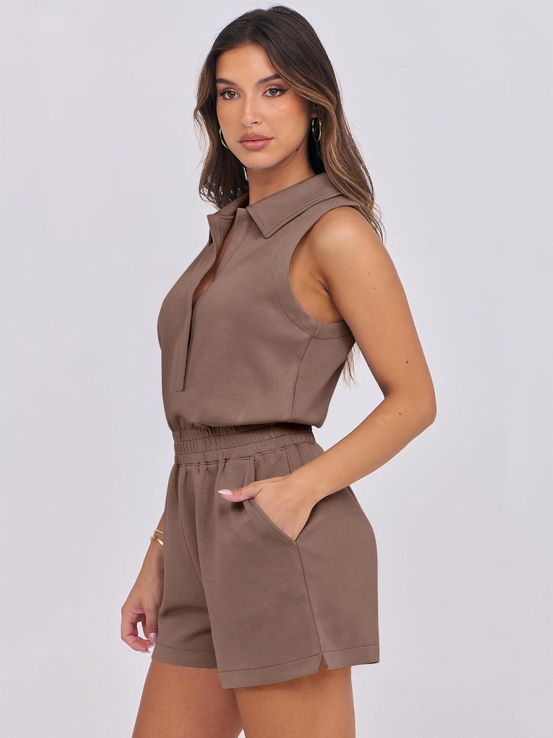 imageANRABESS Romper for Womens 2025 Summer Dressy Casual Sleeveless V Neck One Piece Short Jumpsuit Lounge Travel Outfits ClothesLight Brown