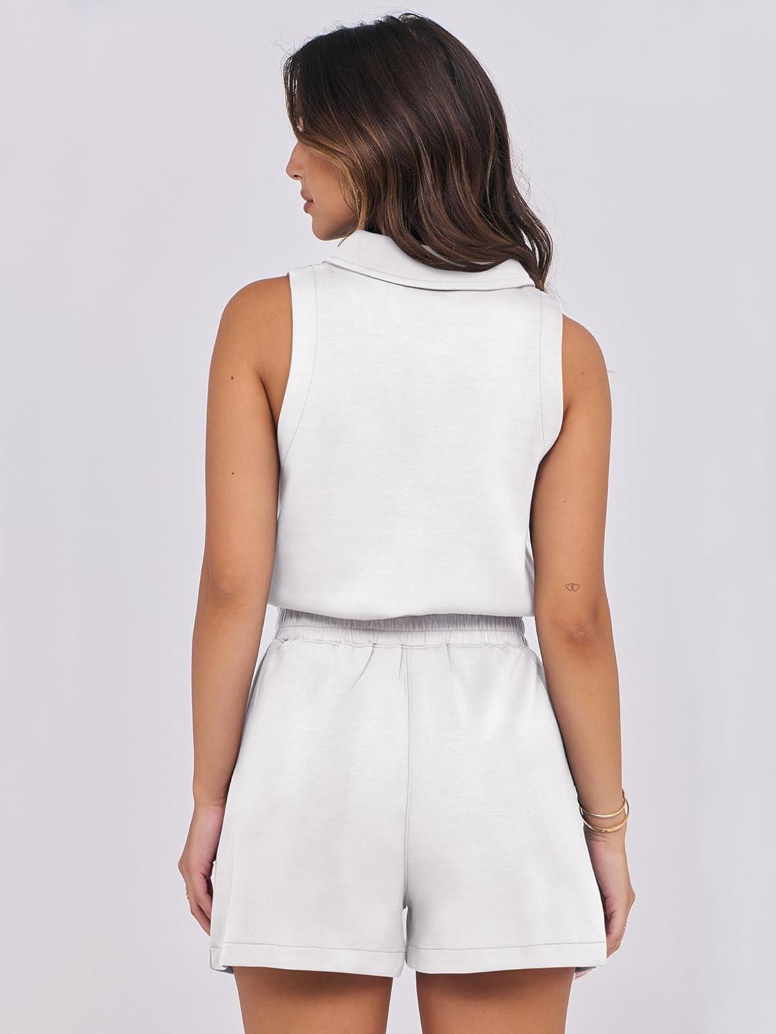 ANRABESS Romper for Womens 2025 Summer Dressy Casual Sleeveless V Neck One Piece Short Jumpsuit Lounge Travel Outfits Clothes(White)