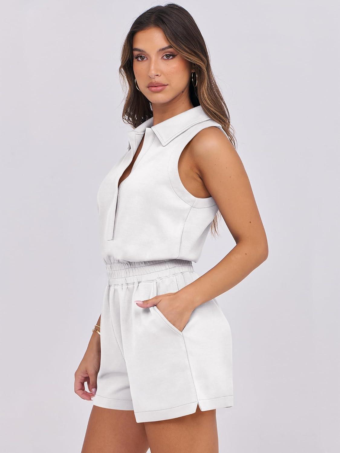 imageANRABESS Romper for Womens 2025 Summer Dressy Casual Sleeveless V Neck One Piece Short Jumpsuit Lounge Travel Outfits ClothesWhite
