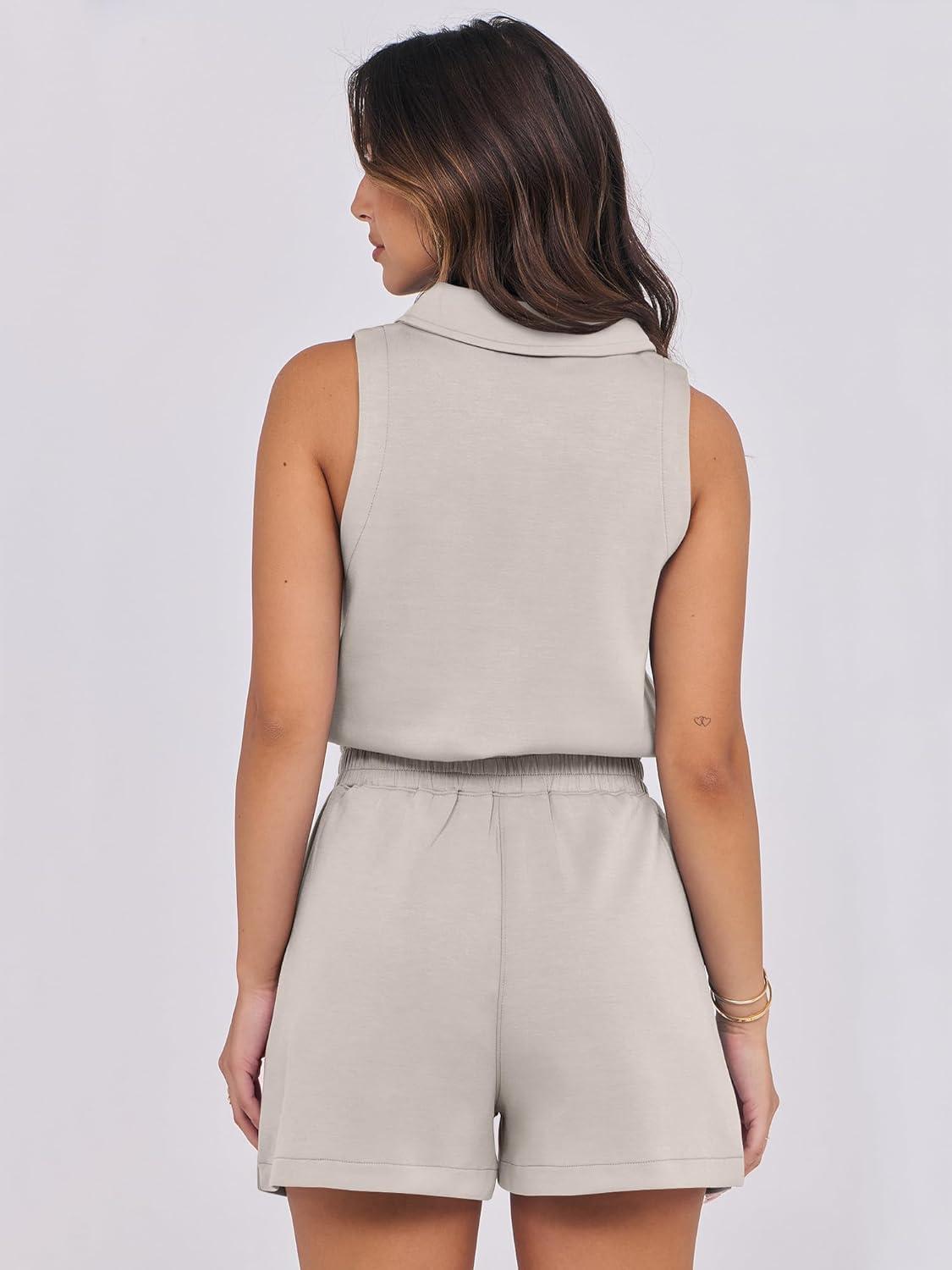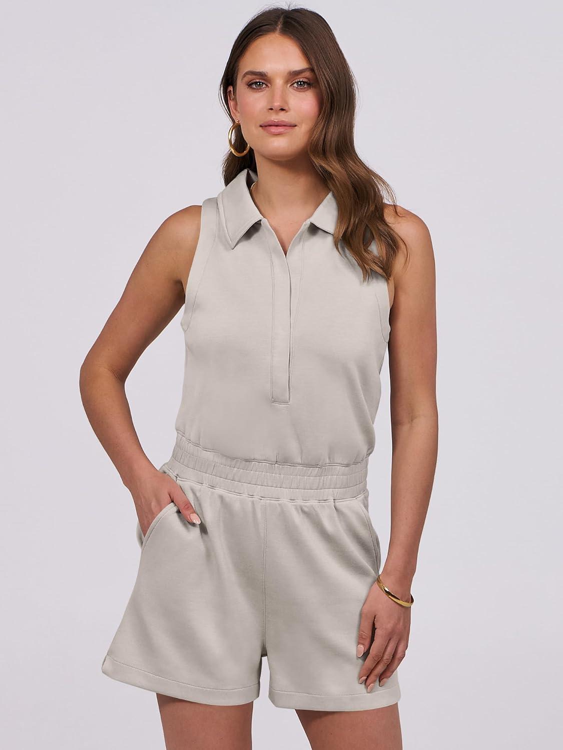 ANRABESS Romper for Womens 2026 Summer Dressy Casual Sleeveless V Neck One Piece Short Jumpsuit Lounge Travel Outfits Clothes(Light Grey)