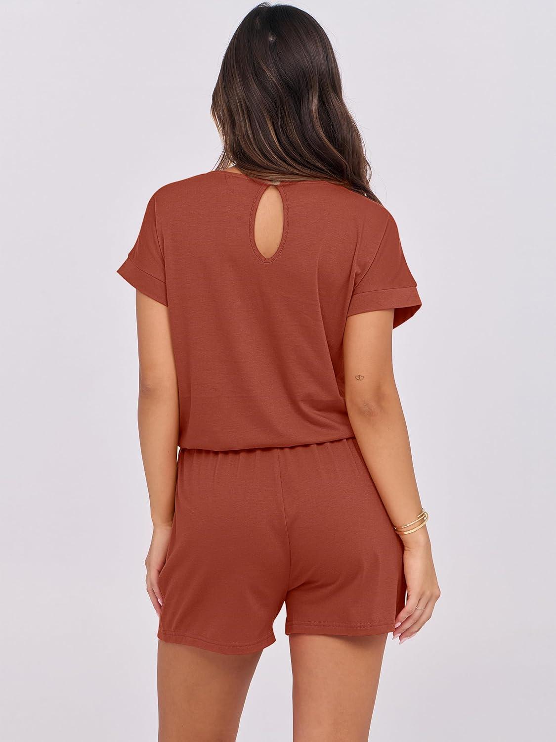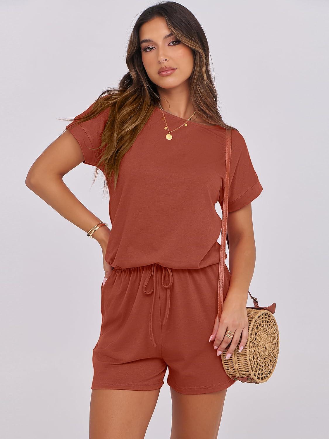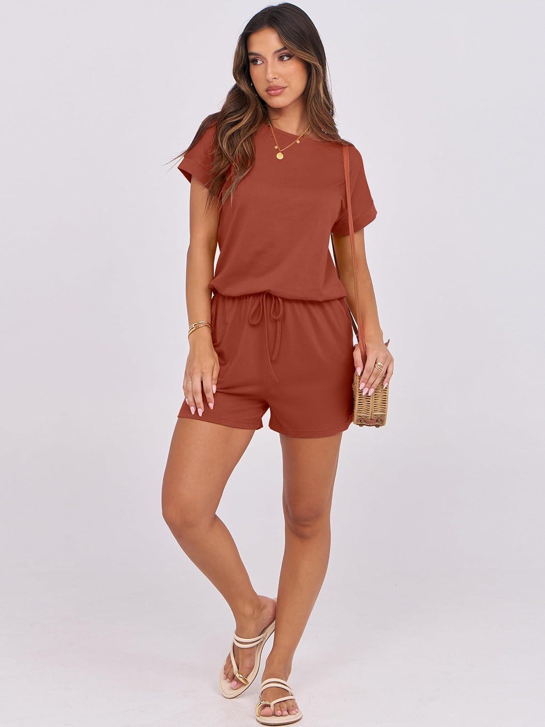 ANRABESS Rompers for Women Summer 2025 Casual Dressy One Piece Tshirt Short Pants Jumpsuit Beach Vacation Outfit Clothes(Orange Red)