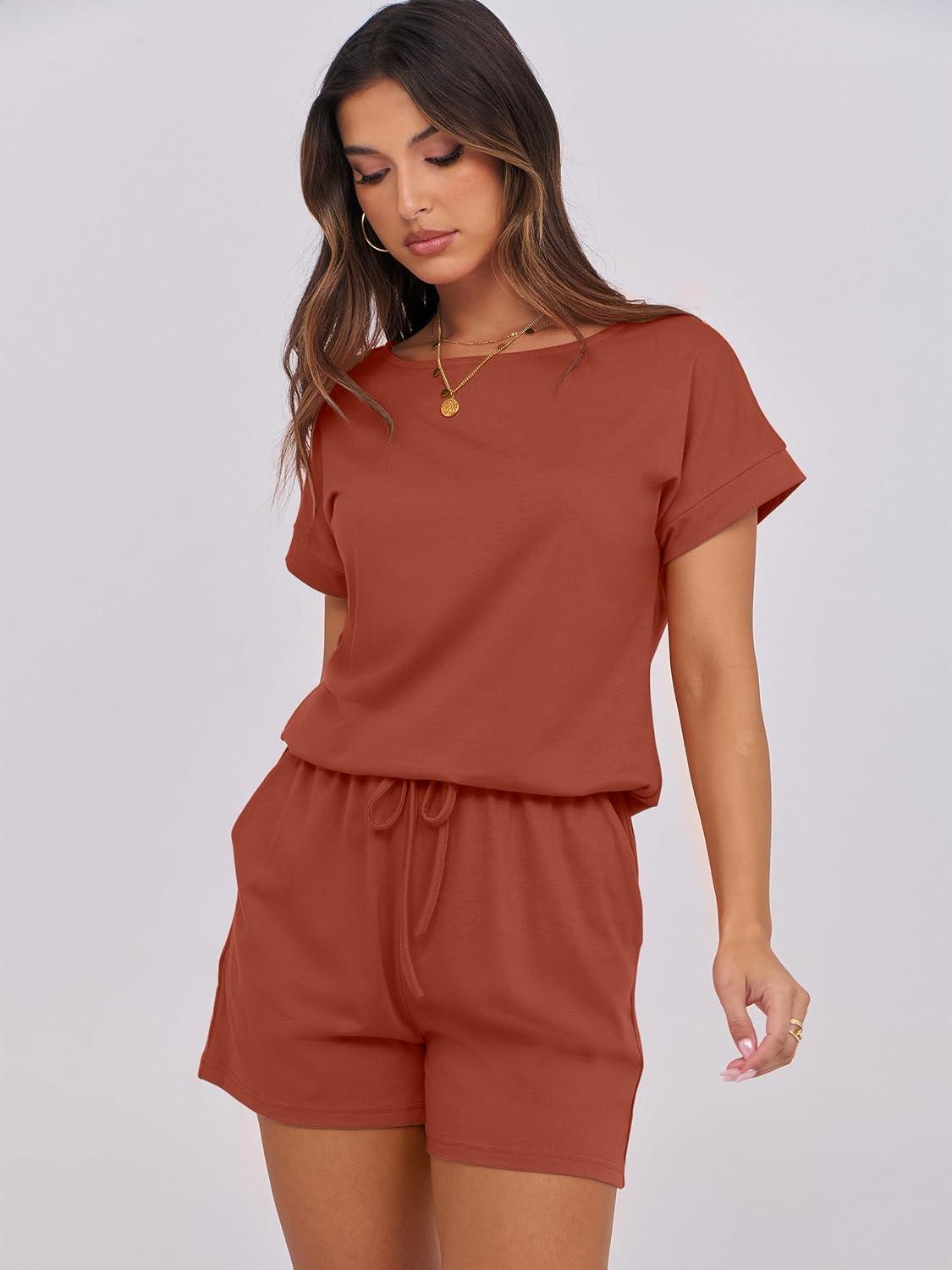imageANRABESS Rompers for Women Summer 2025 Casual Dressy One Piece Tshirt Short Pants Jumpsuit Beach Vacation Outfit ClothesOrange Red
